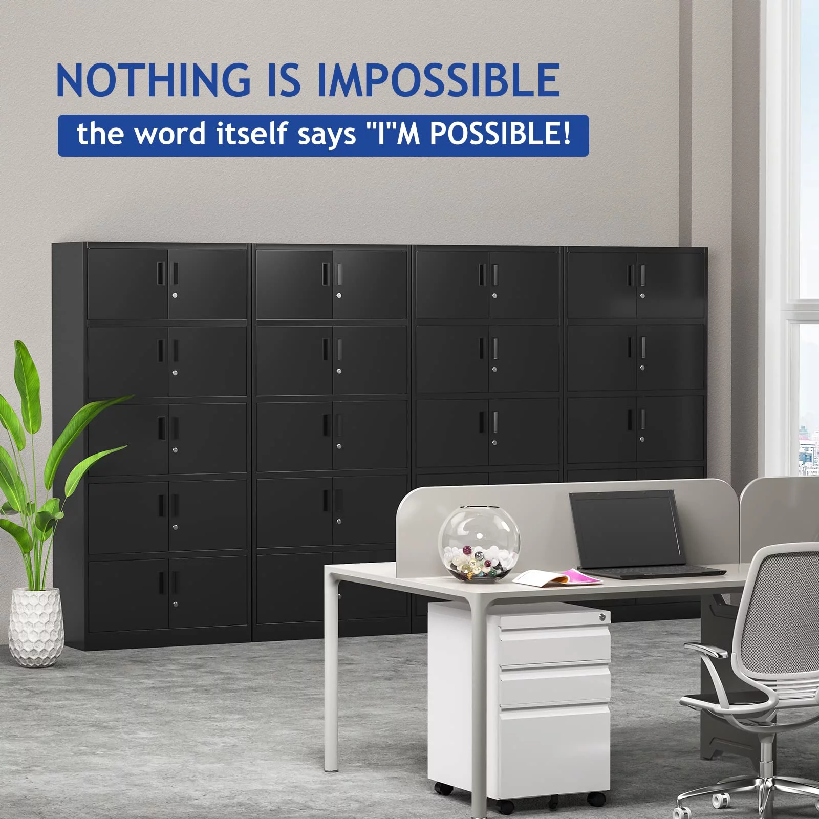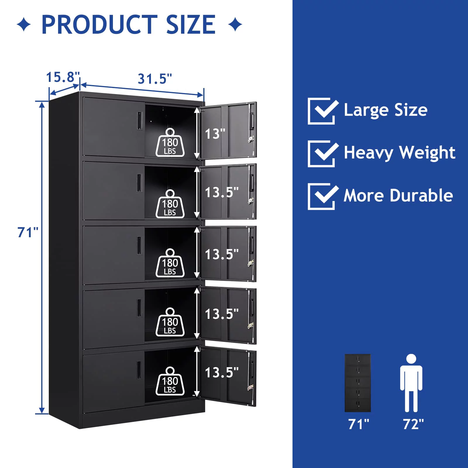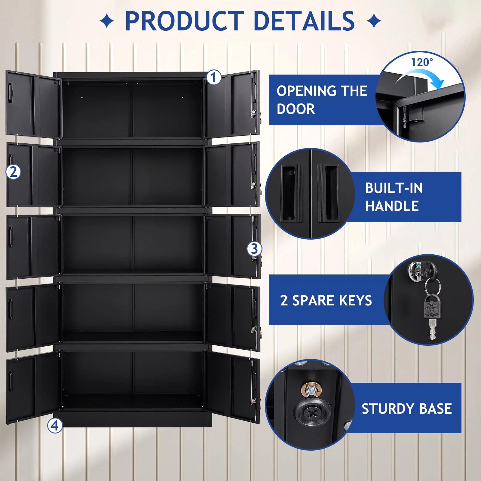 Fesbos Metal Storage Cabinet with Lock, 71" Steel Locker Storage Furniture with 10 Door and 5 Shelves, Multi-Purpose Cabinets for Home Office Garage, Black - Curated Treasures Market