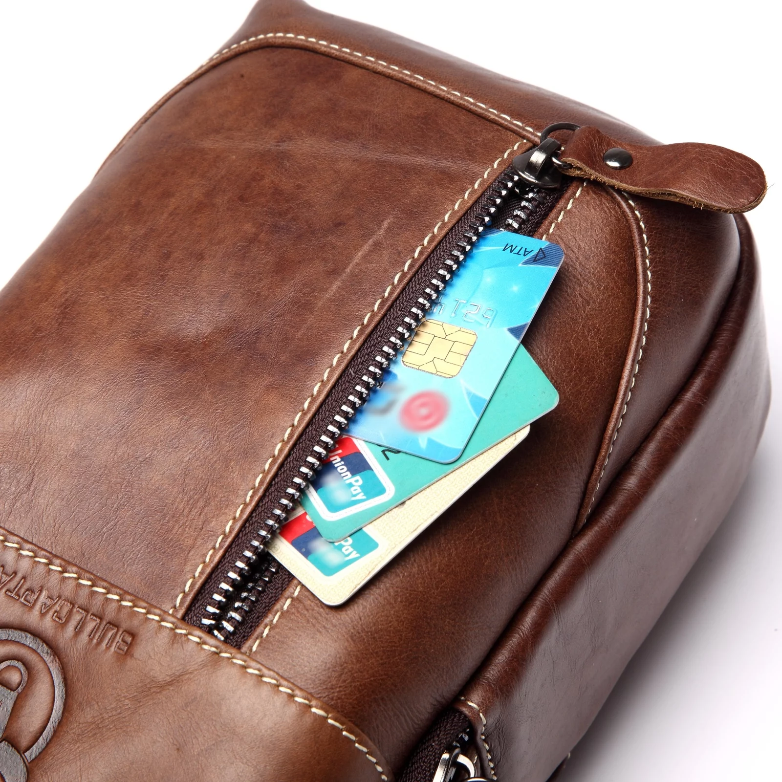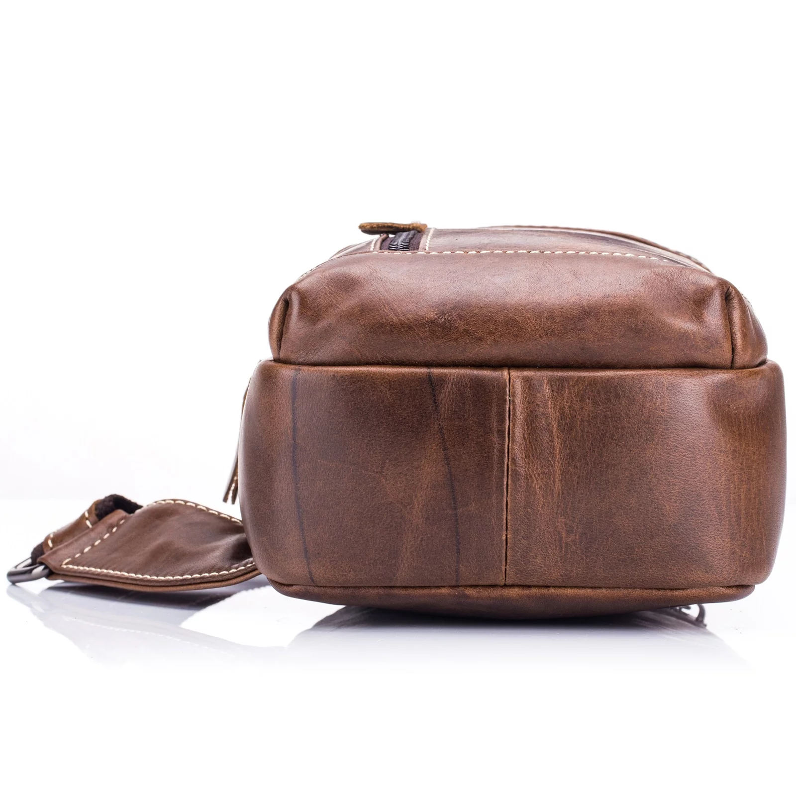 BULLCAPTAIN Men Genuine Leather Sling Bag Casual Shoulder Chest Crossbody Bag Hiking Travel Daypack Waterproof Durable Smooth Vintage Stylish Casual Shopping Traveling Business Hiking Casual Occasions - Curated Treasures Market
