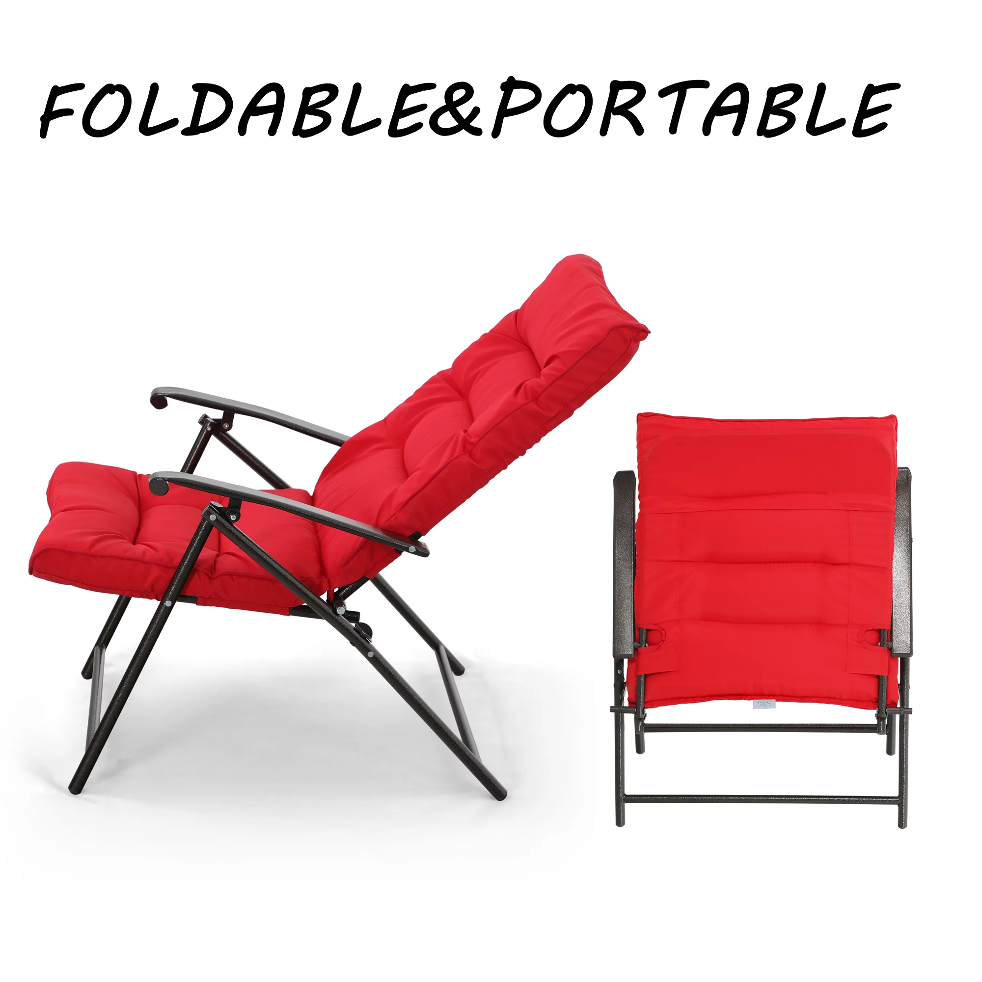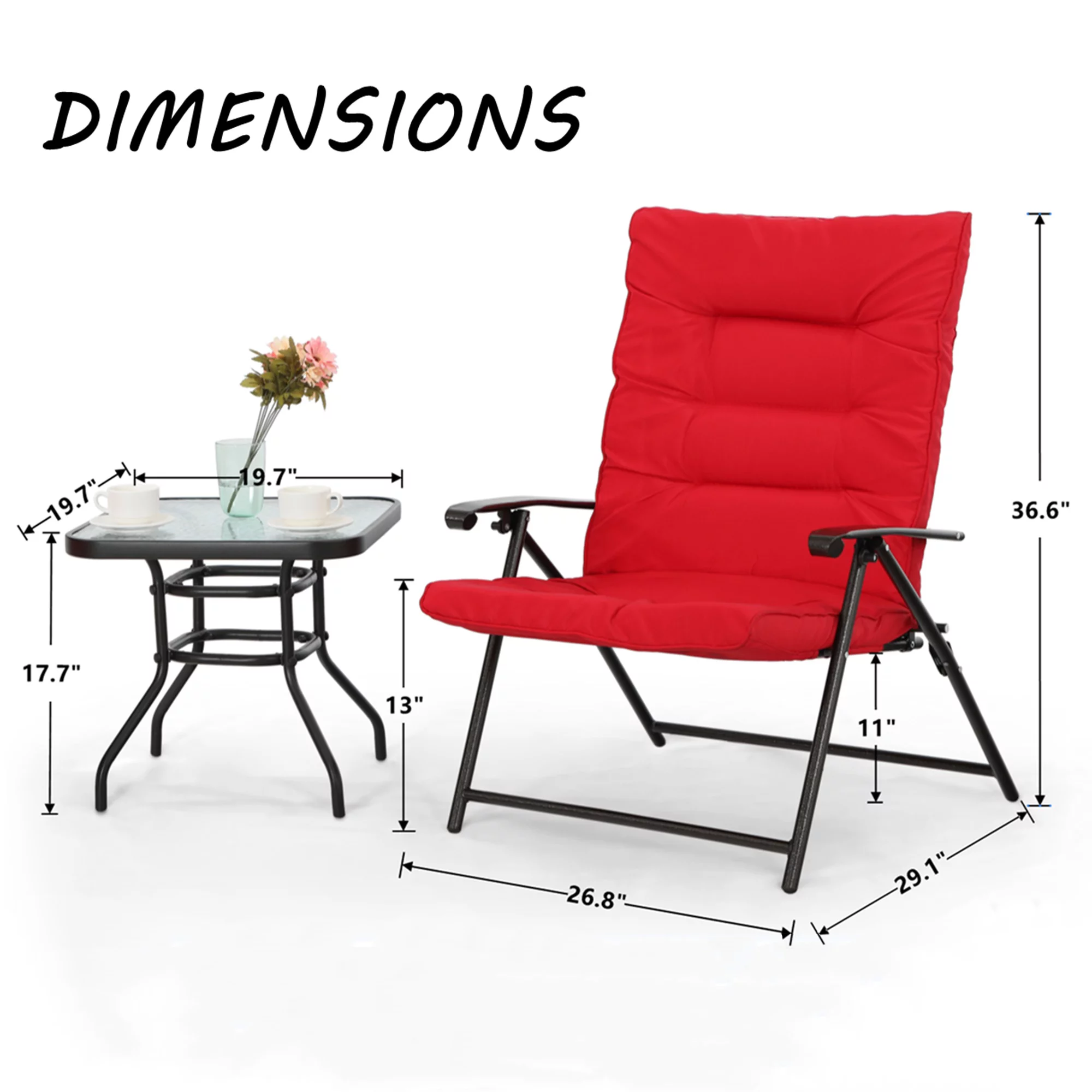 MF Studio 3-Piece Outdoor Folding Bistro Set with Adjustable Reclining Lounge Chairs, Red - Curated Treasures Market
