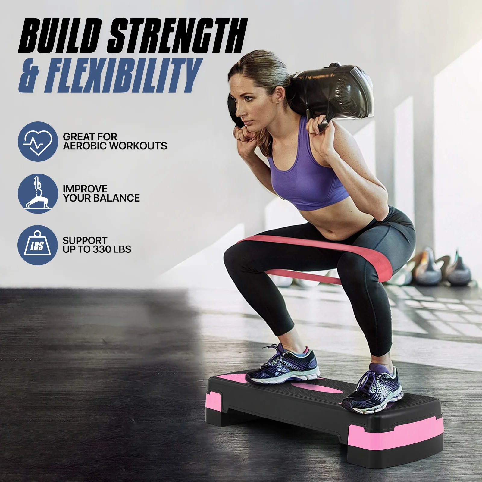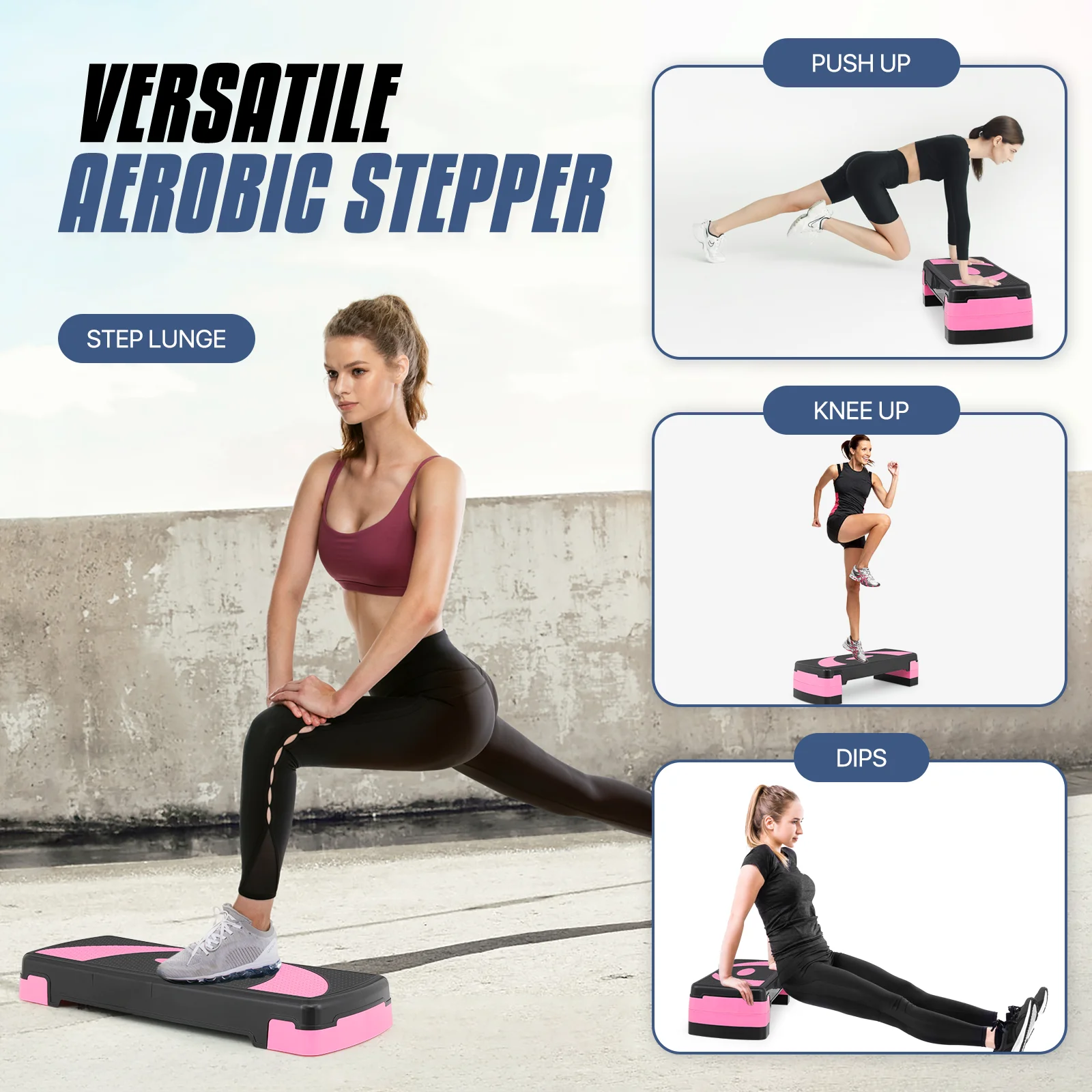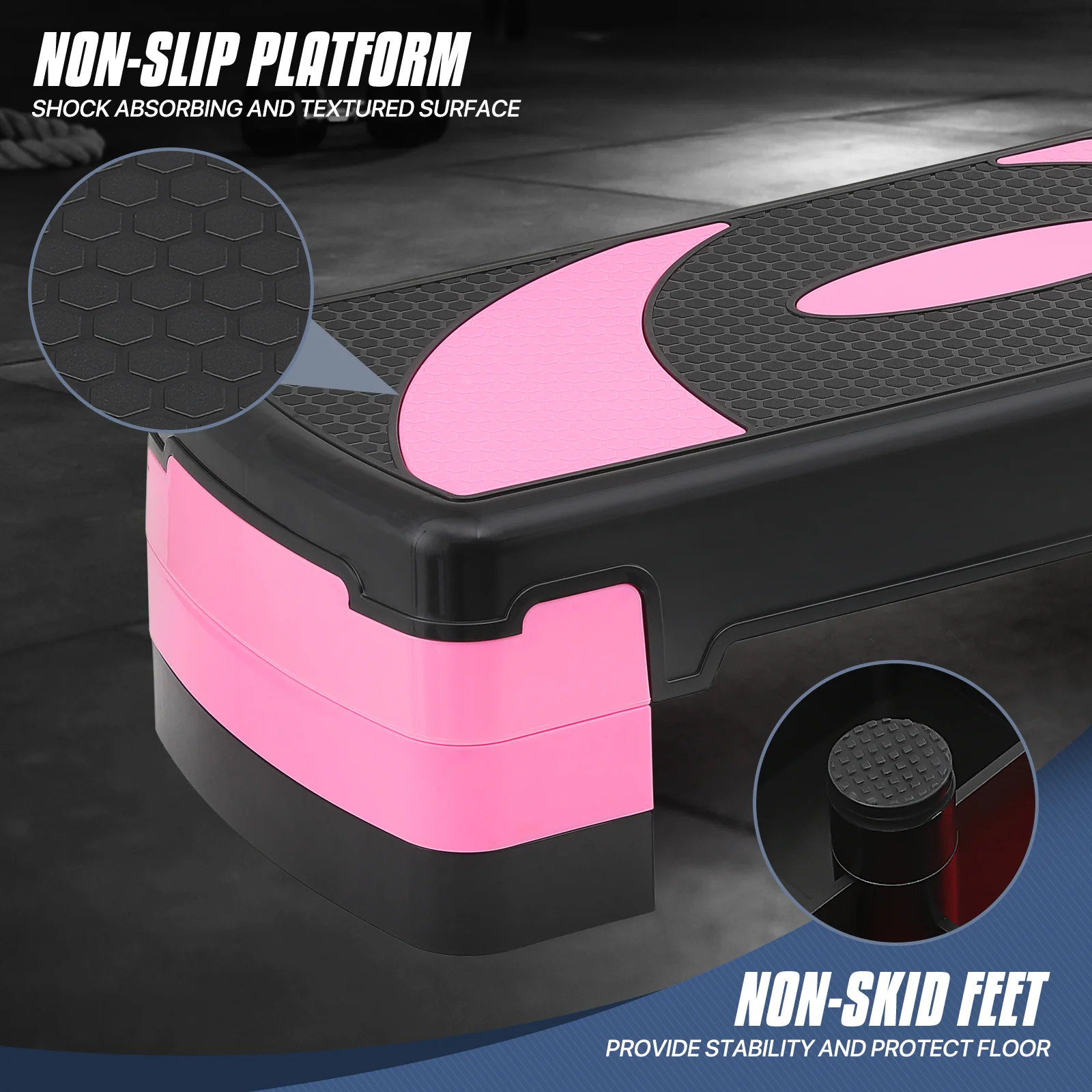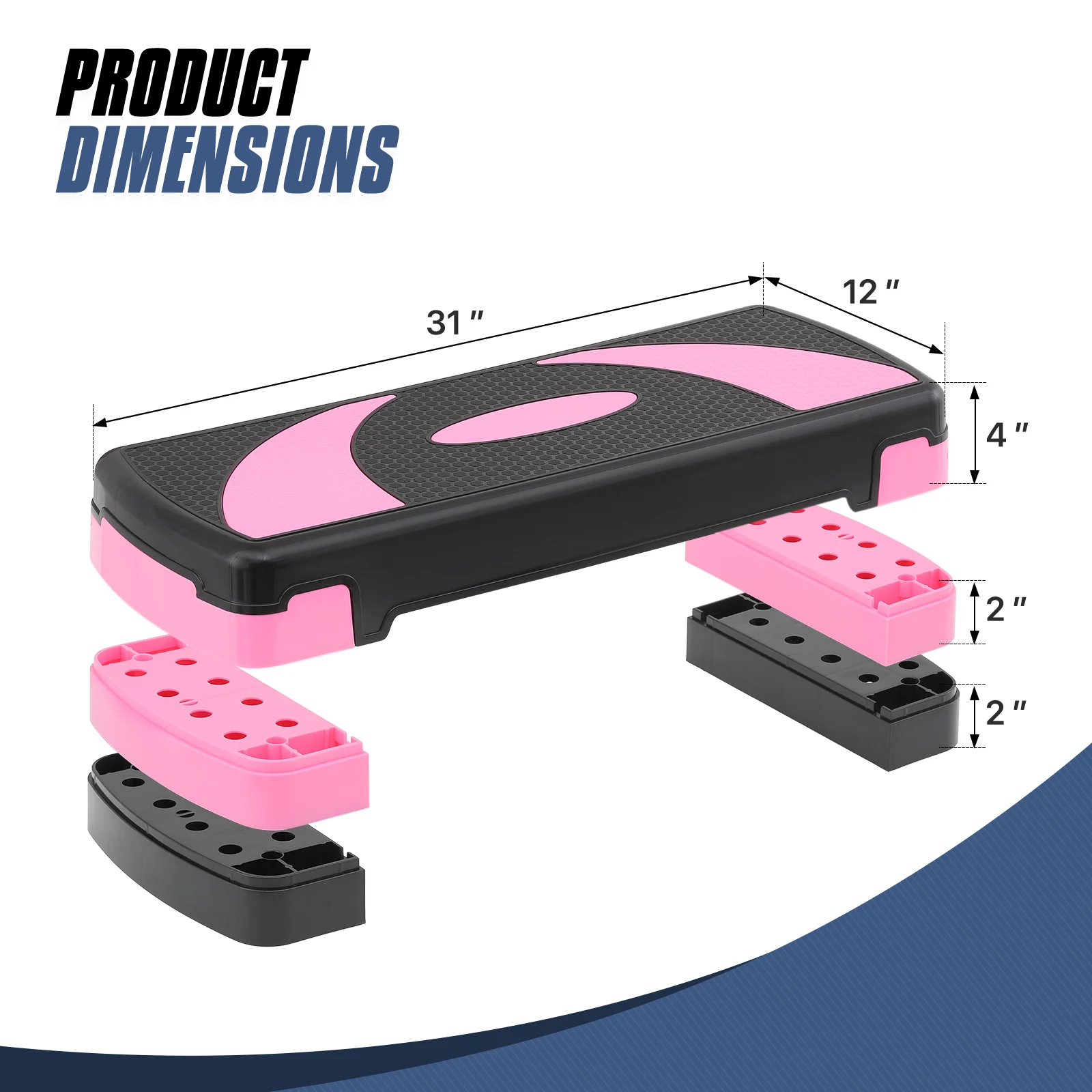 MADOG 31" Aerobic Stepper with Risers, Adjustable Height Workout Exercise Step Platform Trainer for Home Gym Fitness, Pink - Curated Treasures Market