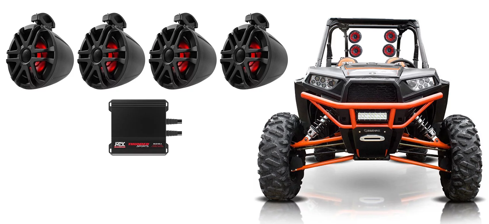 (4) Memphis Audio 6.5" Tower Speakers+Amp+4-Ch. MTX Amplifier For RZR/ATV/UTV - Curated Treasures Market