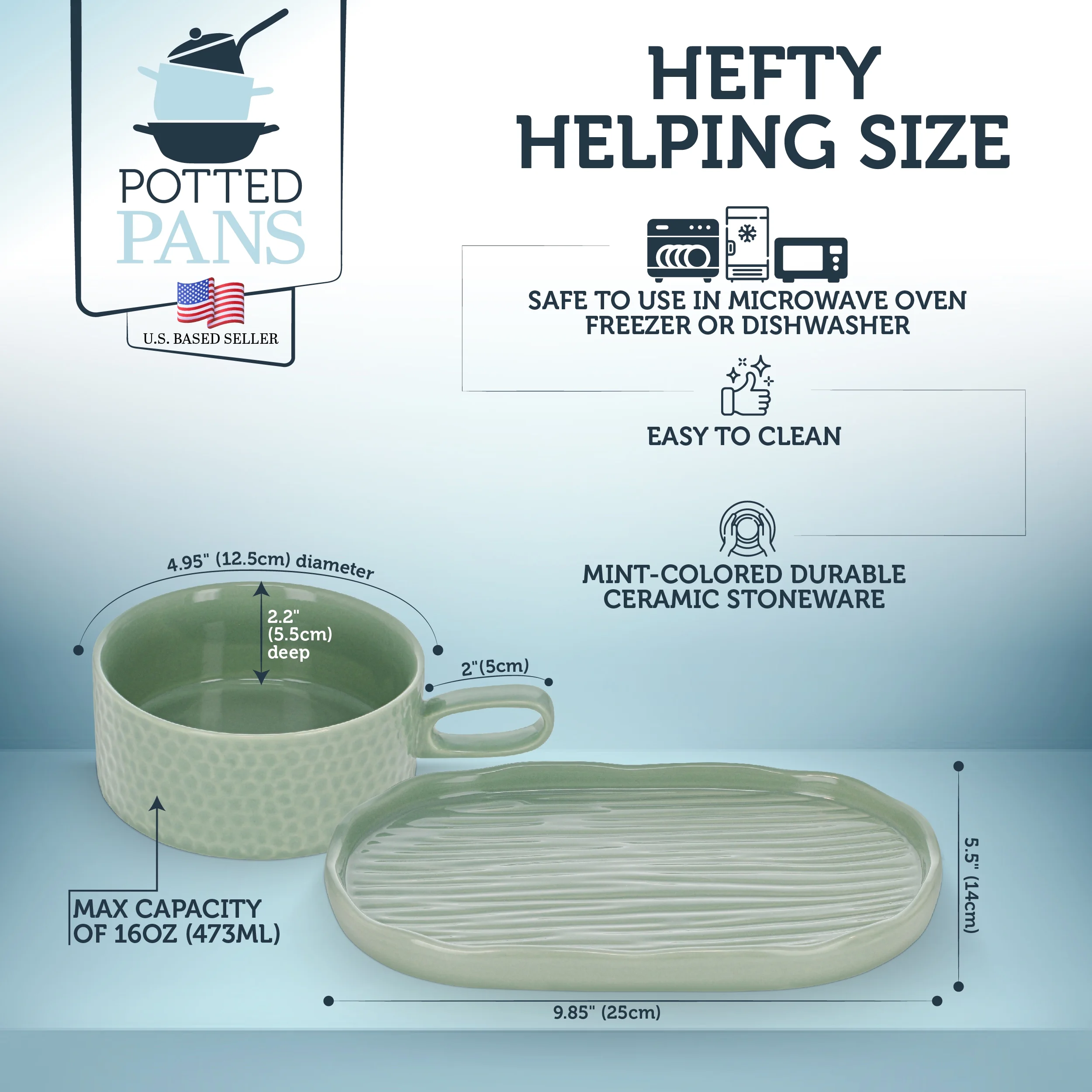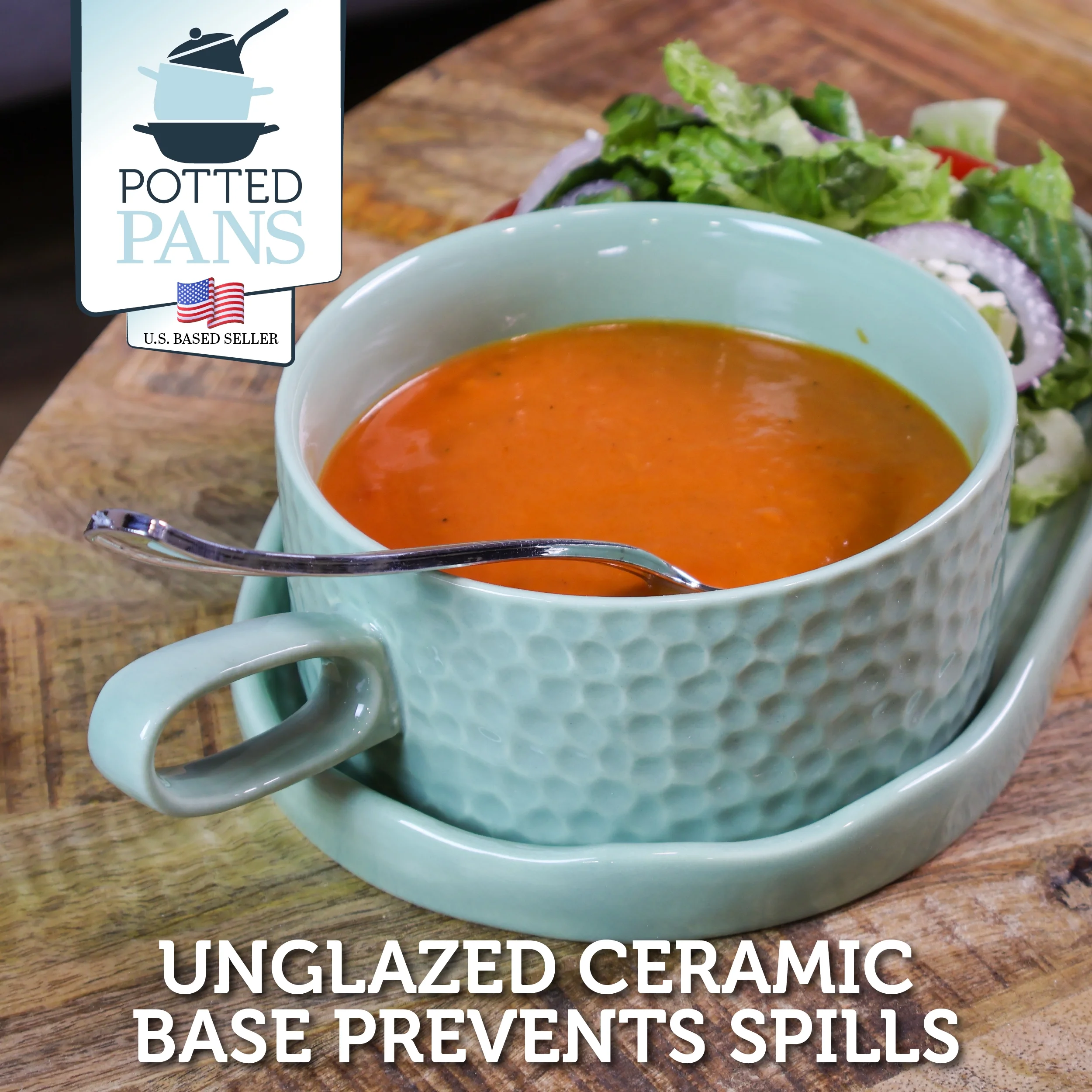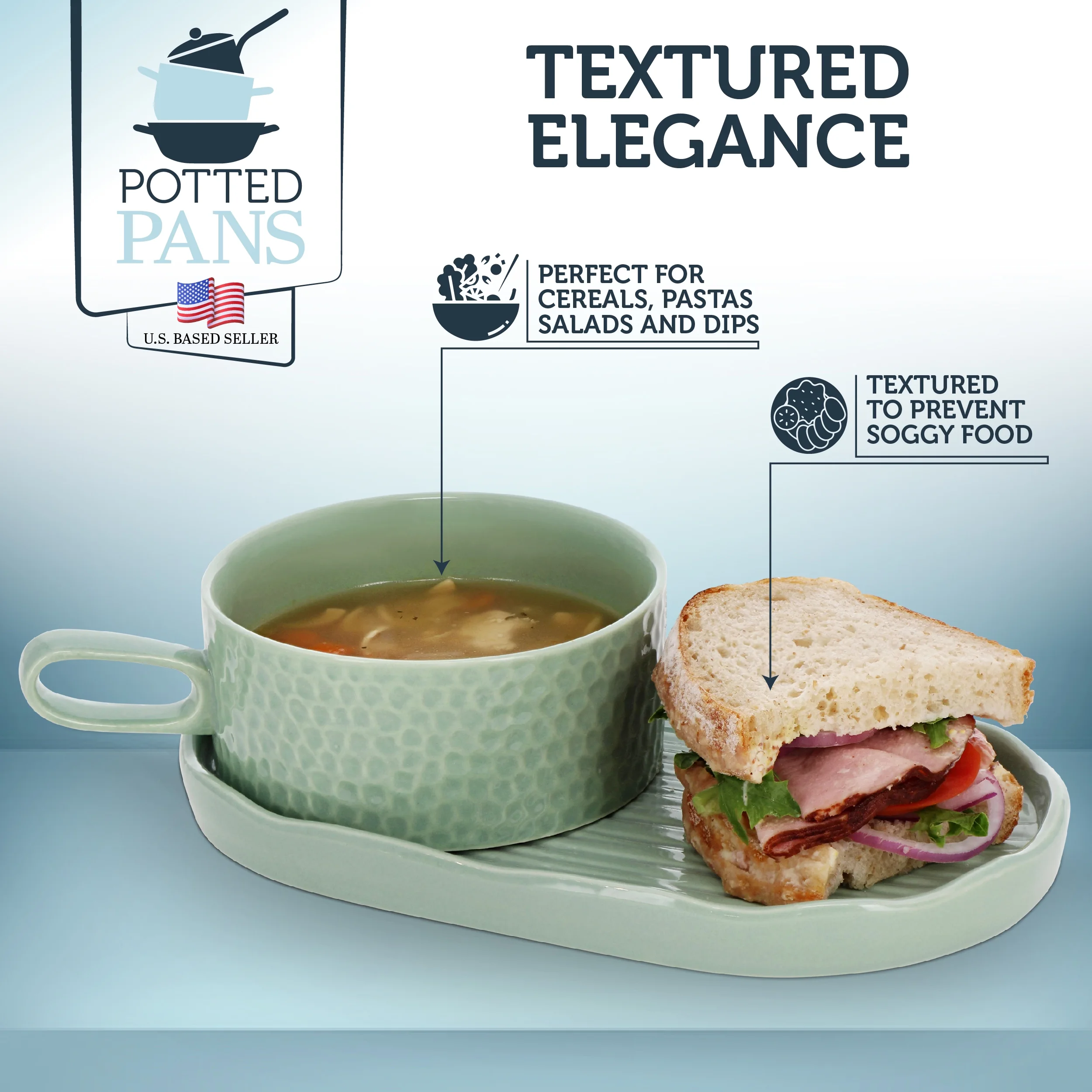 Potted Pans Soup and Sandwich Set of 1 - 16oz Mint Soup Bowl with Serving Plate - Curated Treasures Market