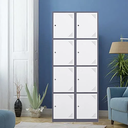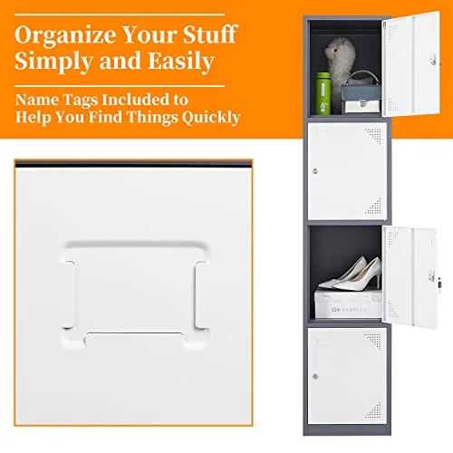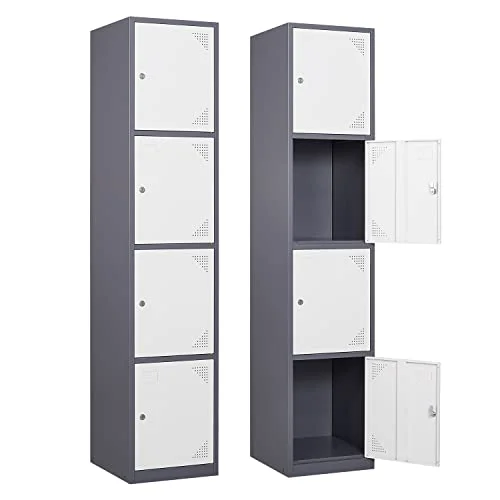 Anxxsu Metal Locker with 4 Doors, 71" Lockers for Employees Steel Storage Locker, Lockable Locker Cabinet for School, Gym, Home Office and Garage(Grey White) - Curated Treasures Market