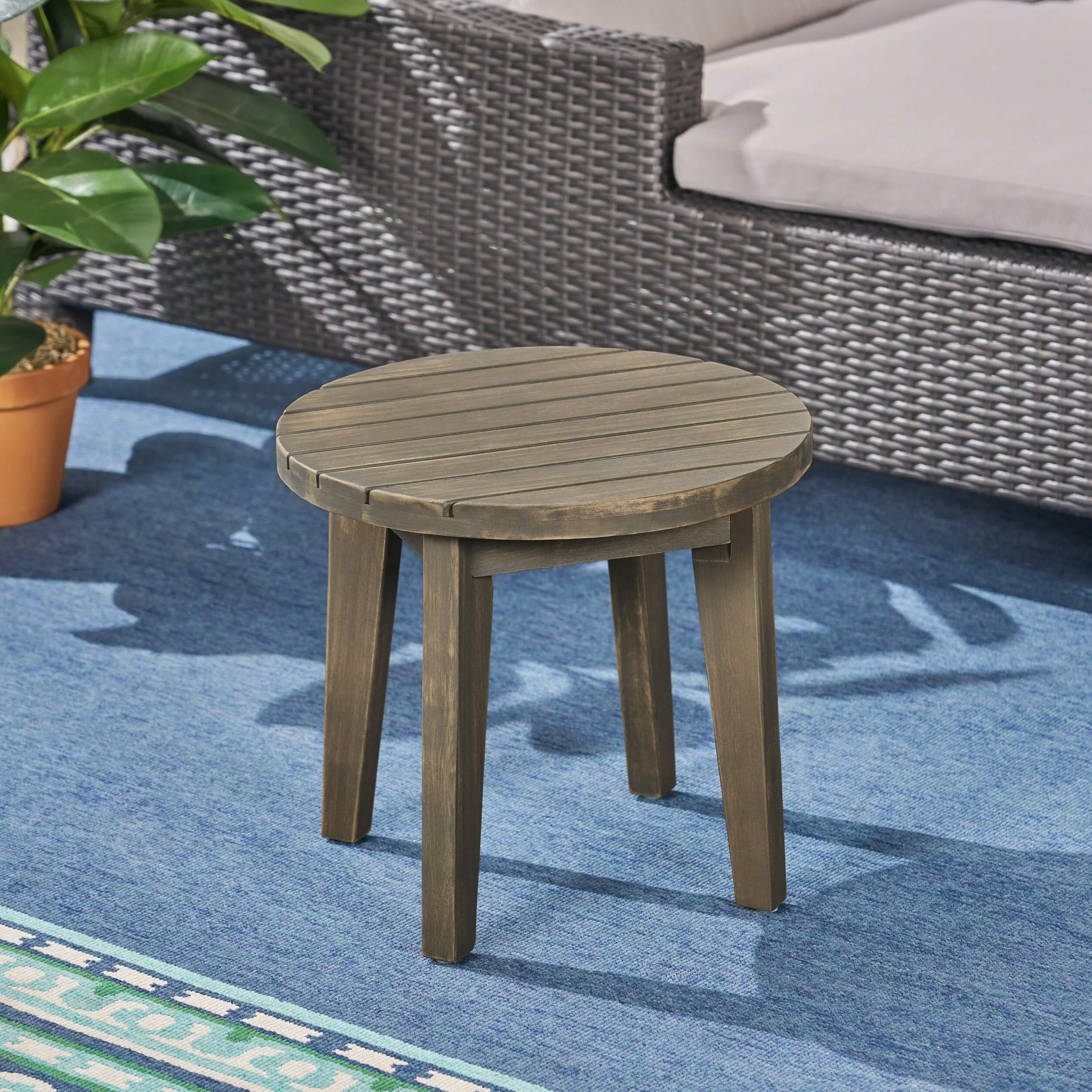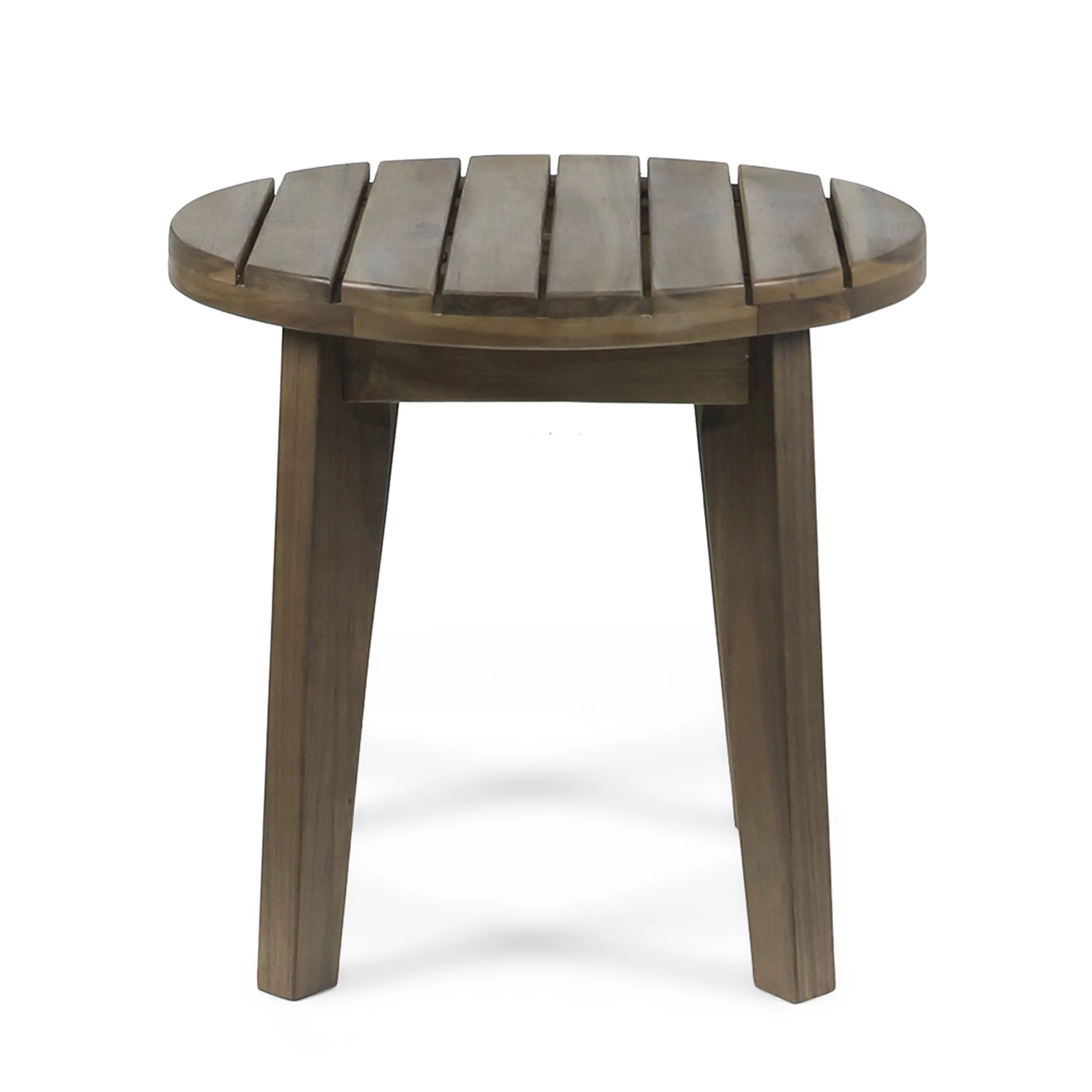 GDF Studio Parker Outdoor Acacia Wood Slat Top Circular Side Table, Gray - Curated Treasures Market