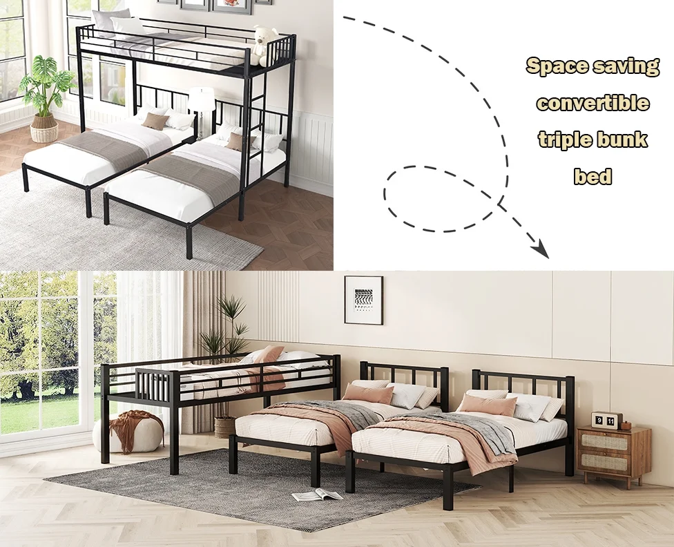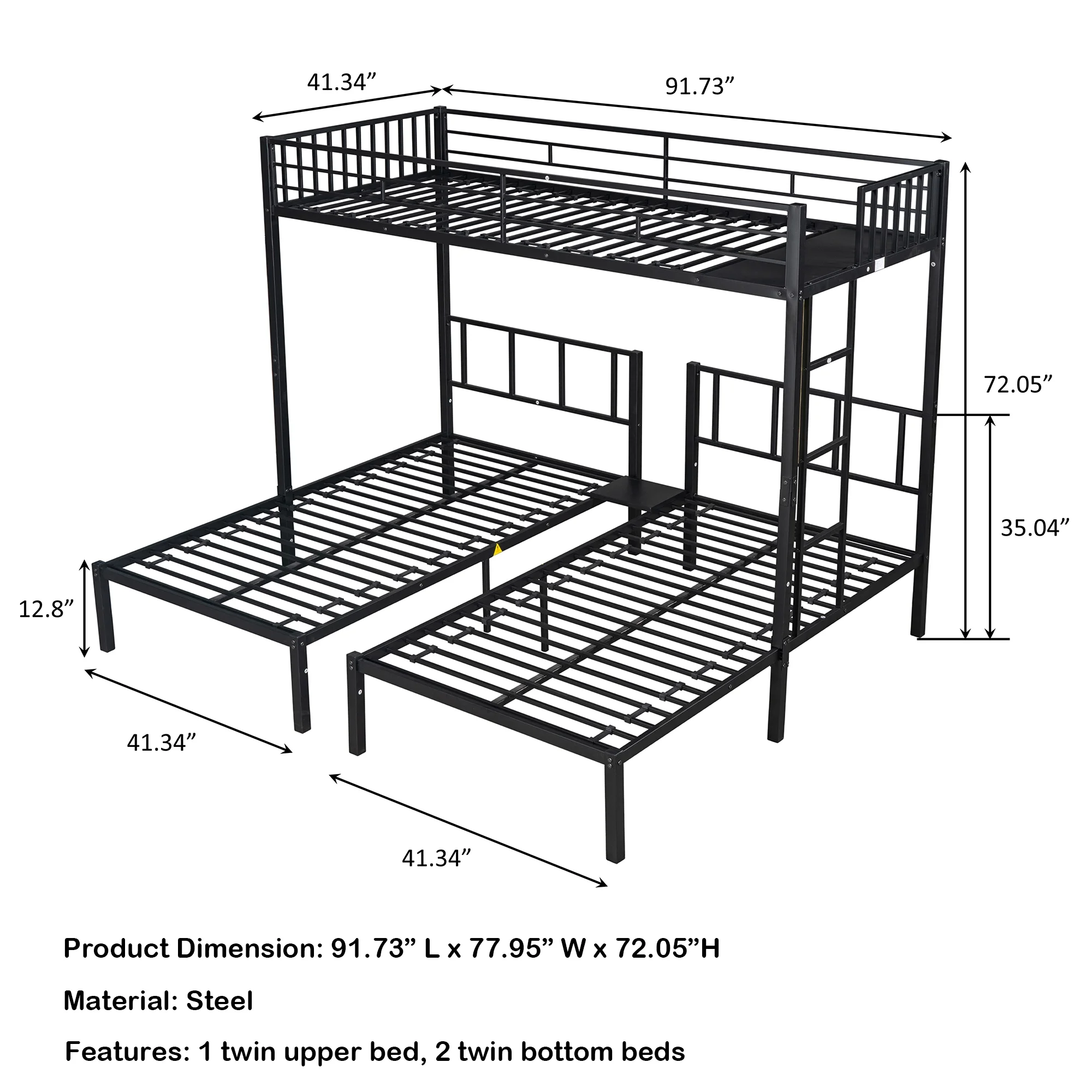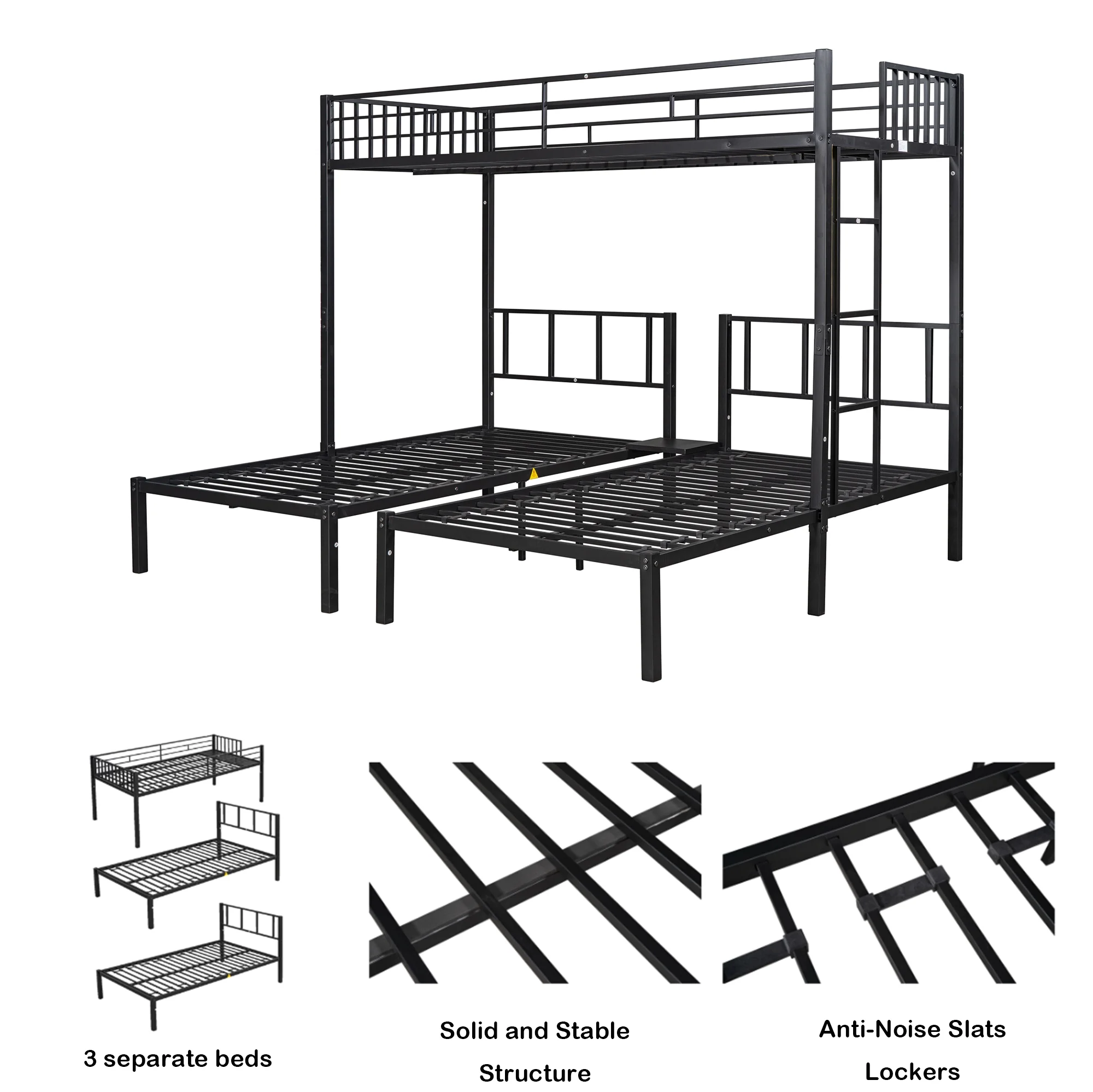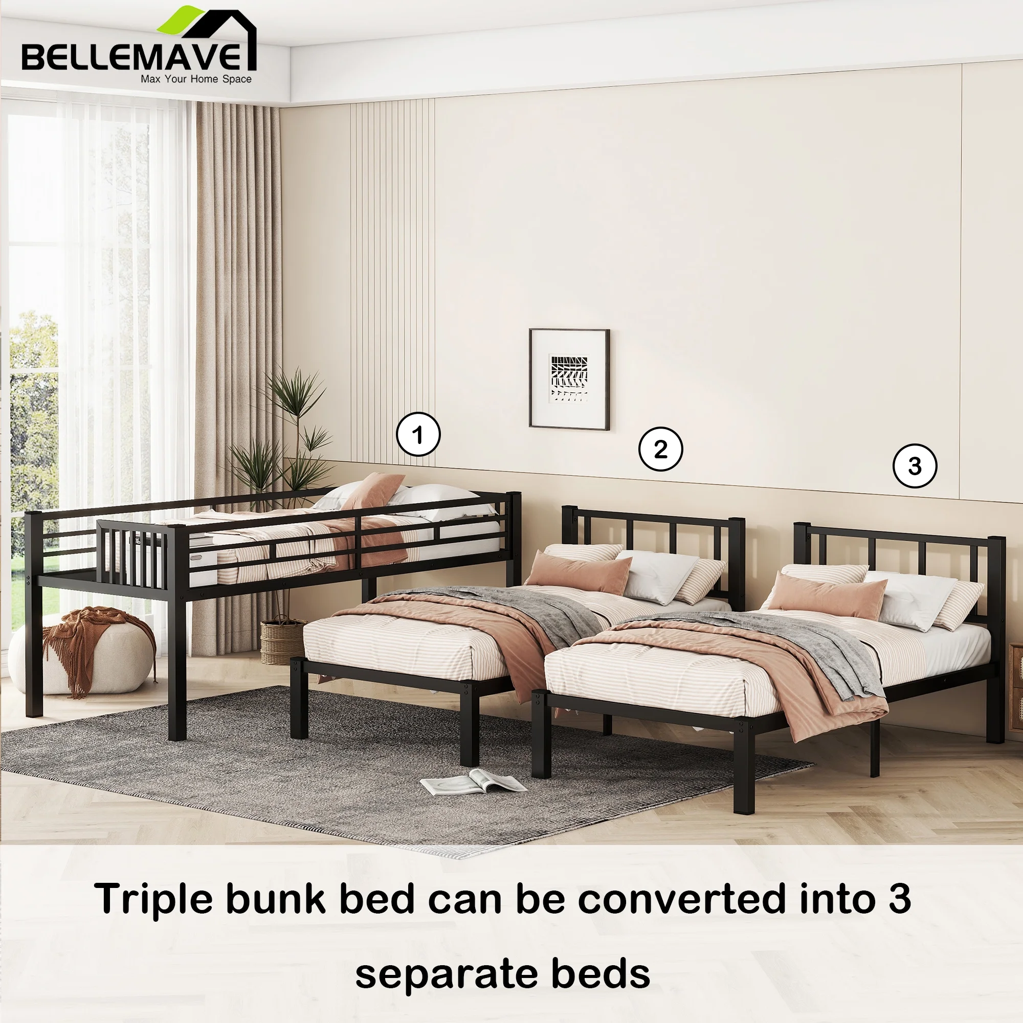 Bellemave Twin over Twin and Twin Bunk Bed Frame Noise Reduced Metal Triple Bunk Bed with Slats Lockers 3 Beds in 1 Bunk Bed Frame Convertible 3 Bunk Bed for Kids Teens Boys Girls, Black - Curated Treasures Market