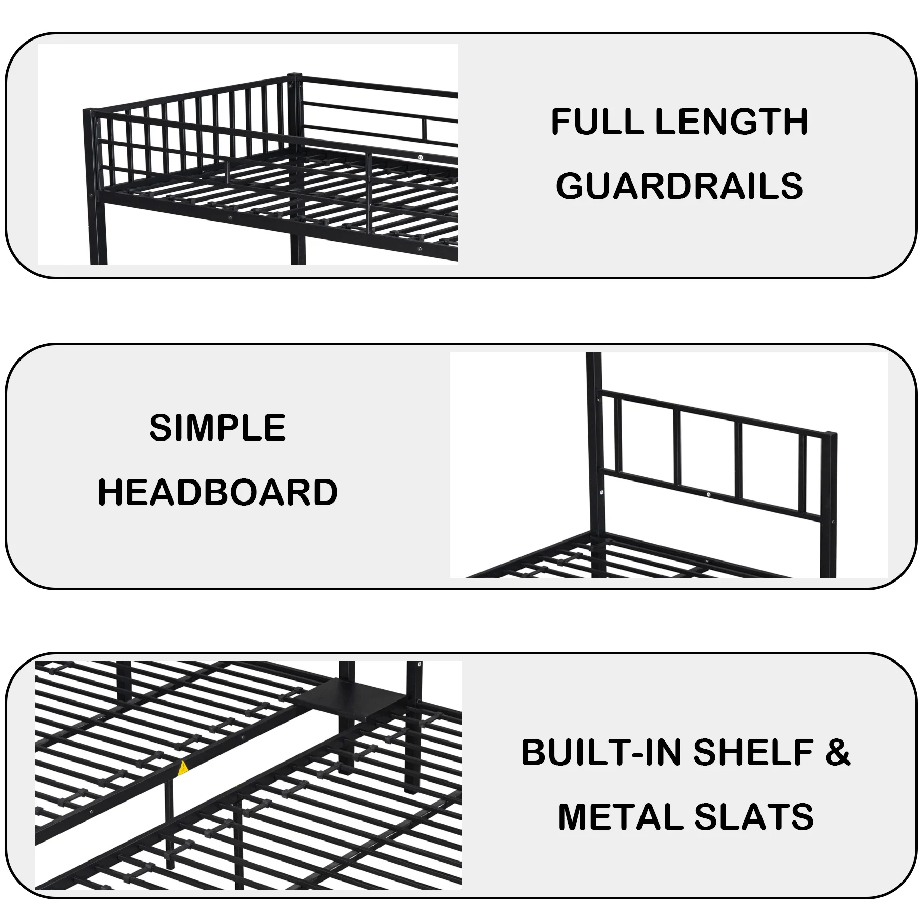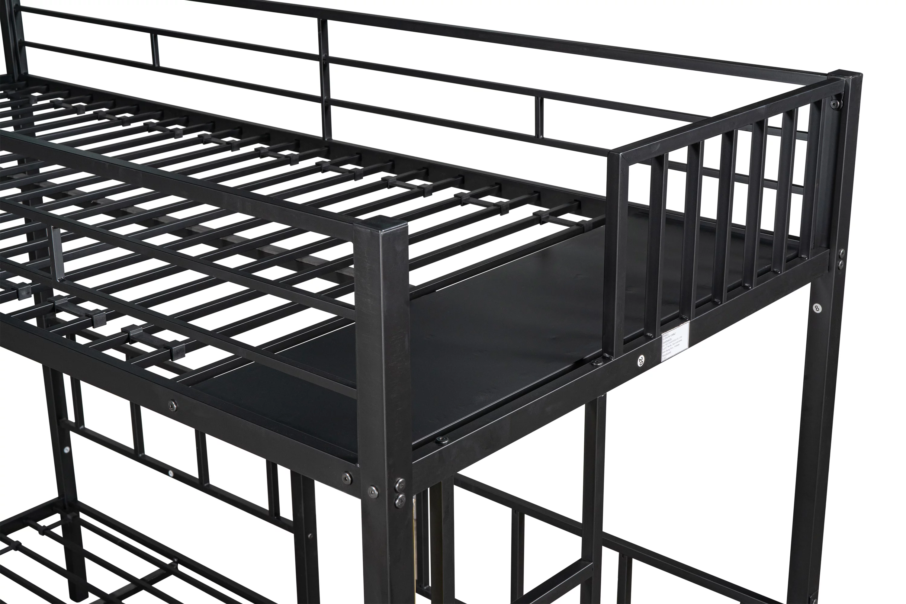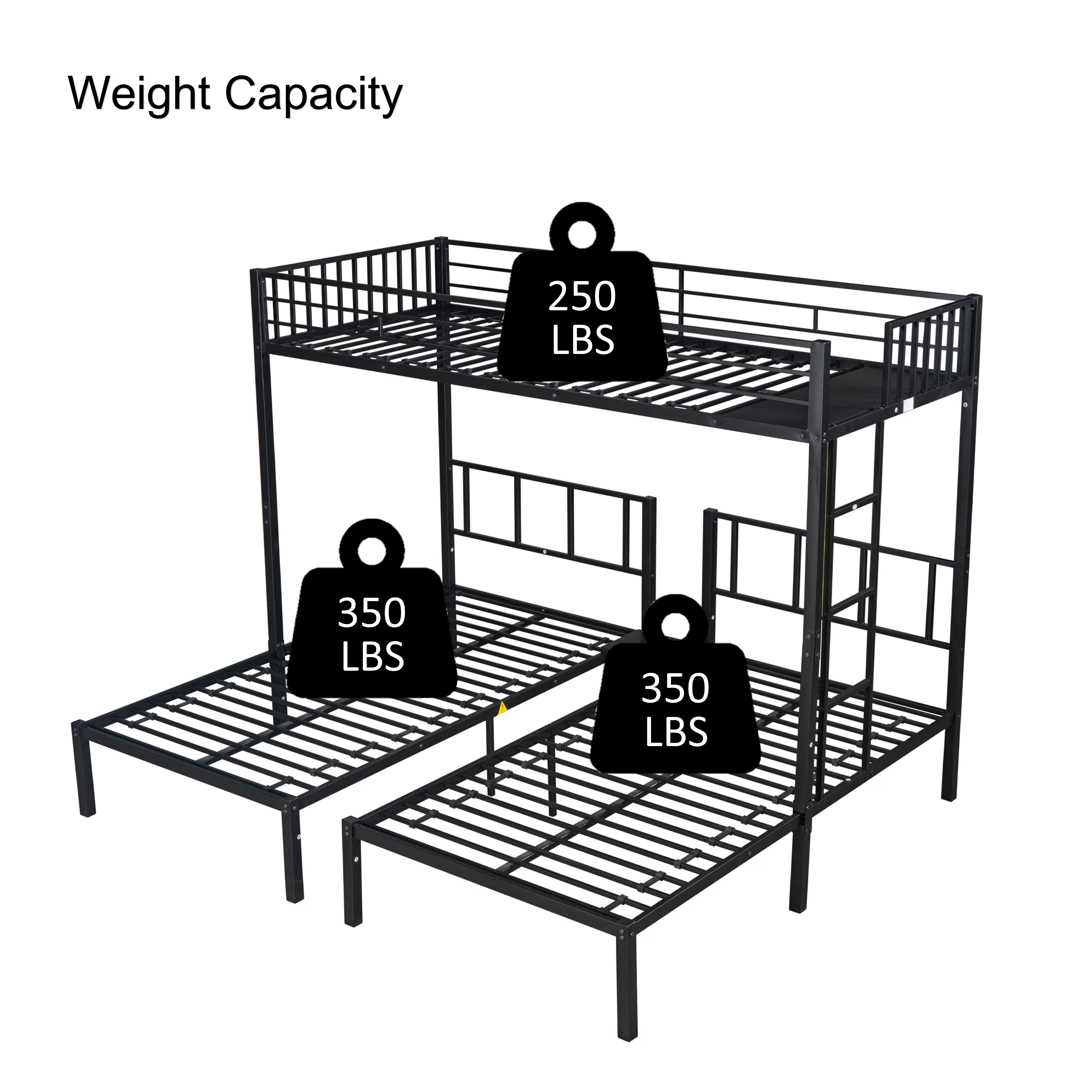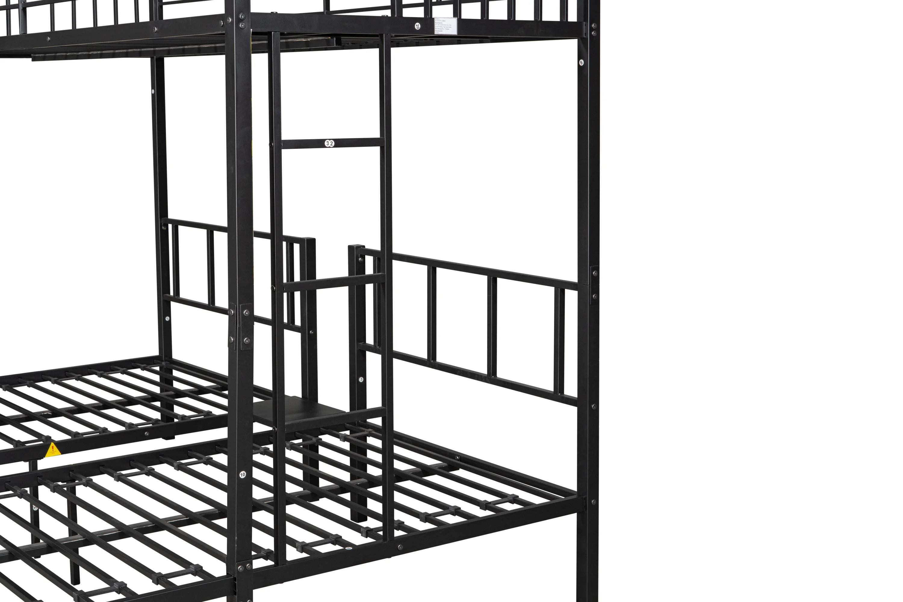 Bellemave Twin over Twin and Twin Bunk Bed Frame Noise Reduced Metal Triple Bunk Bed with Slats Lockers 3 Beds in 1 Bunk Bed Frame Convertible 3 Bunk Bed for Kids Teens Boys Girls, Black - Curated Treasures Market