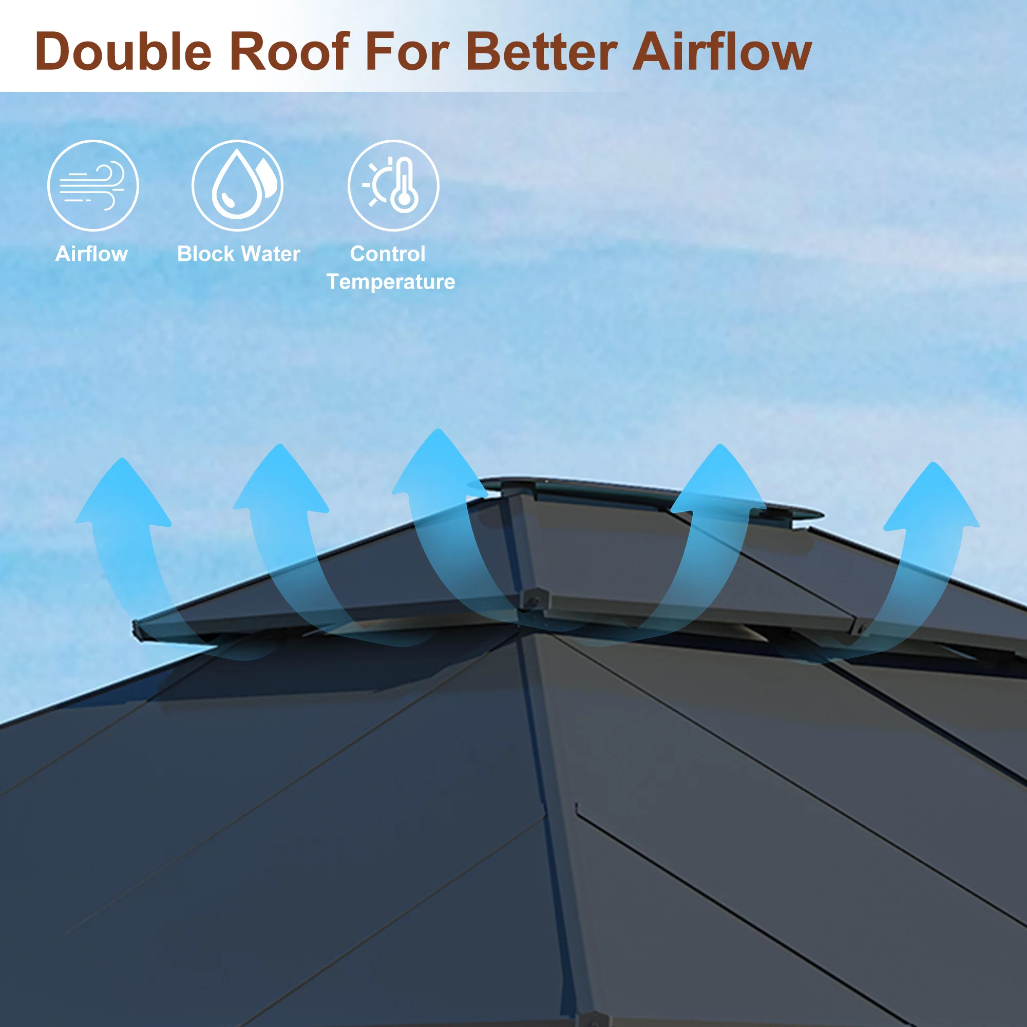 Mondawe 10'x12' Outdoor Hardtop Gazebo Insulated Aluminum Gazebo with Netting and Double Roof - Ideal Canopy Tent for Patio,Parties,Beach - Curated Treasures Market