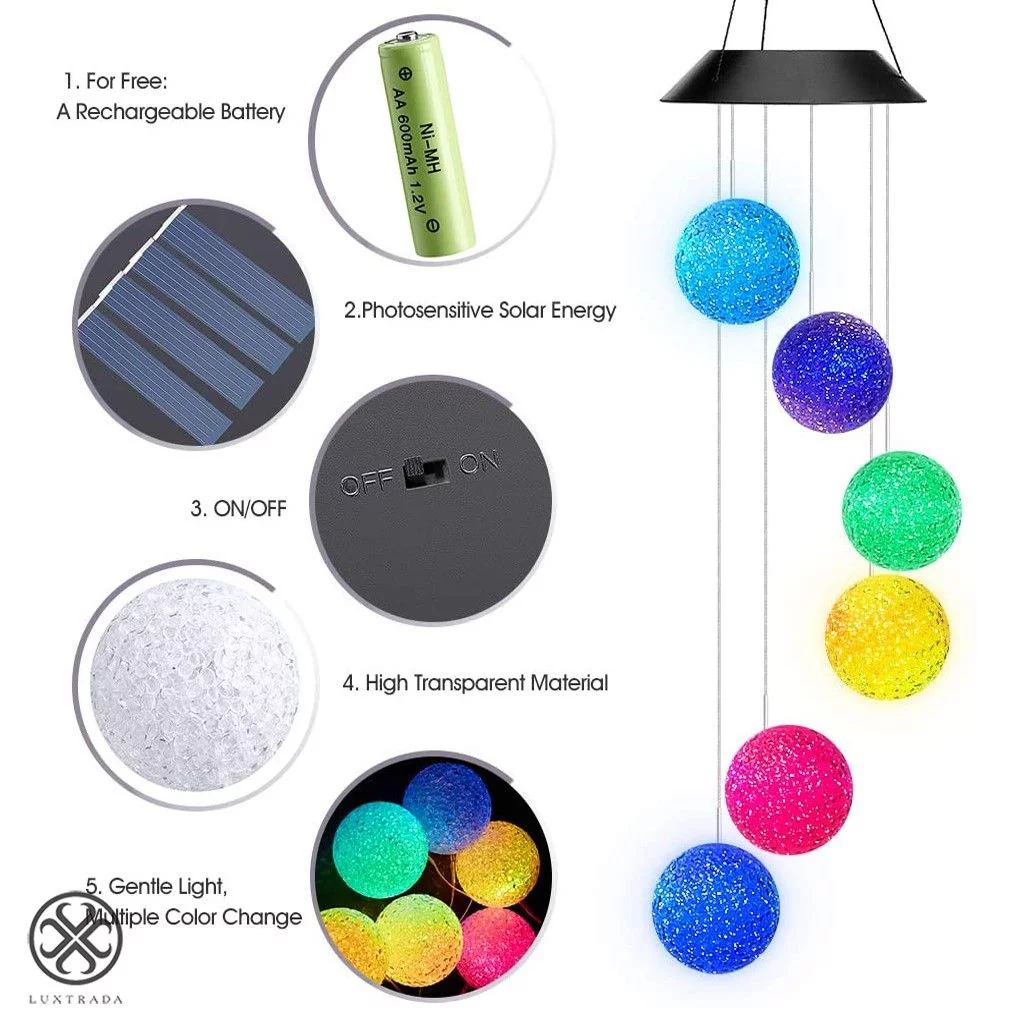 Luxtrada Solar Wind Chime Color Changing Solar Mobile Light Crystal Ball LED Wind Chime Solar Powered Wind Mobile Waterproof Outdoor Decor Romantic Wind Bell Light - Curated Treasures Market