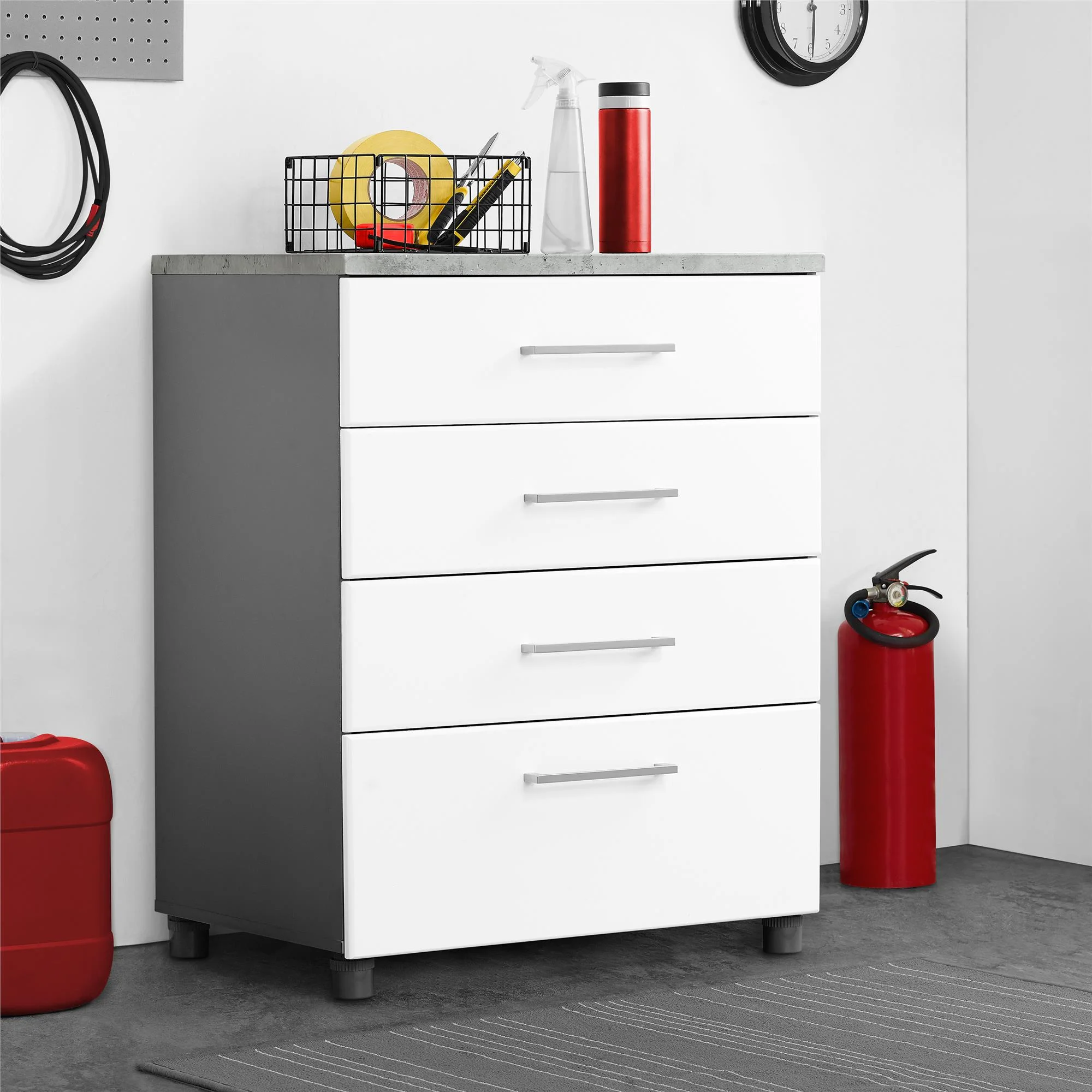 Systembuild Evolution 27.7"W x 19.7"D x 35.5"H 4 Drawer Base Cabinet, Gray/White - Curated Treasures Market
