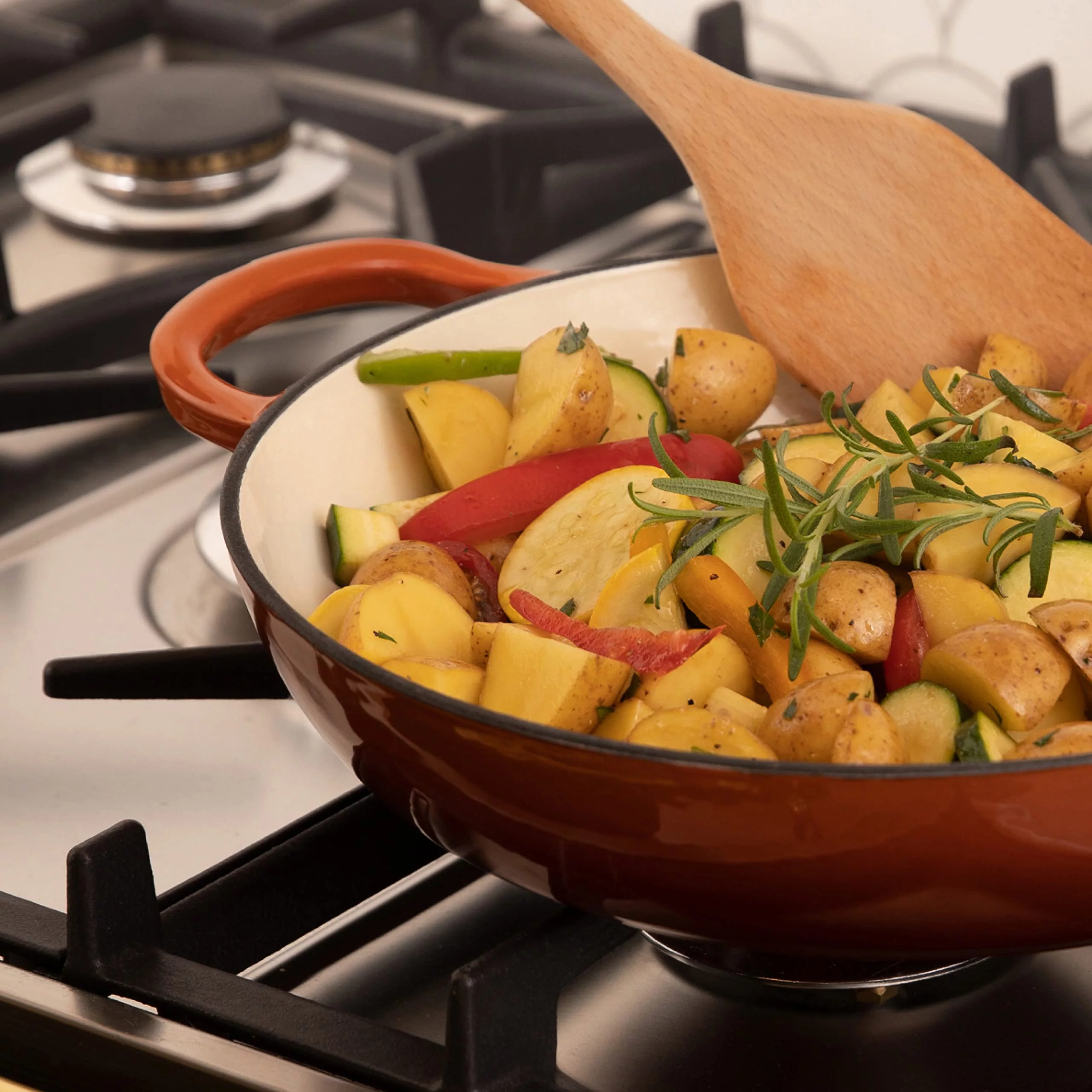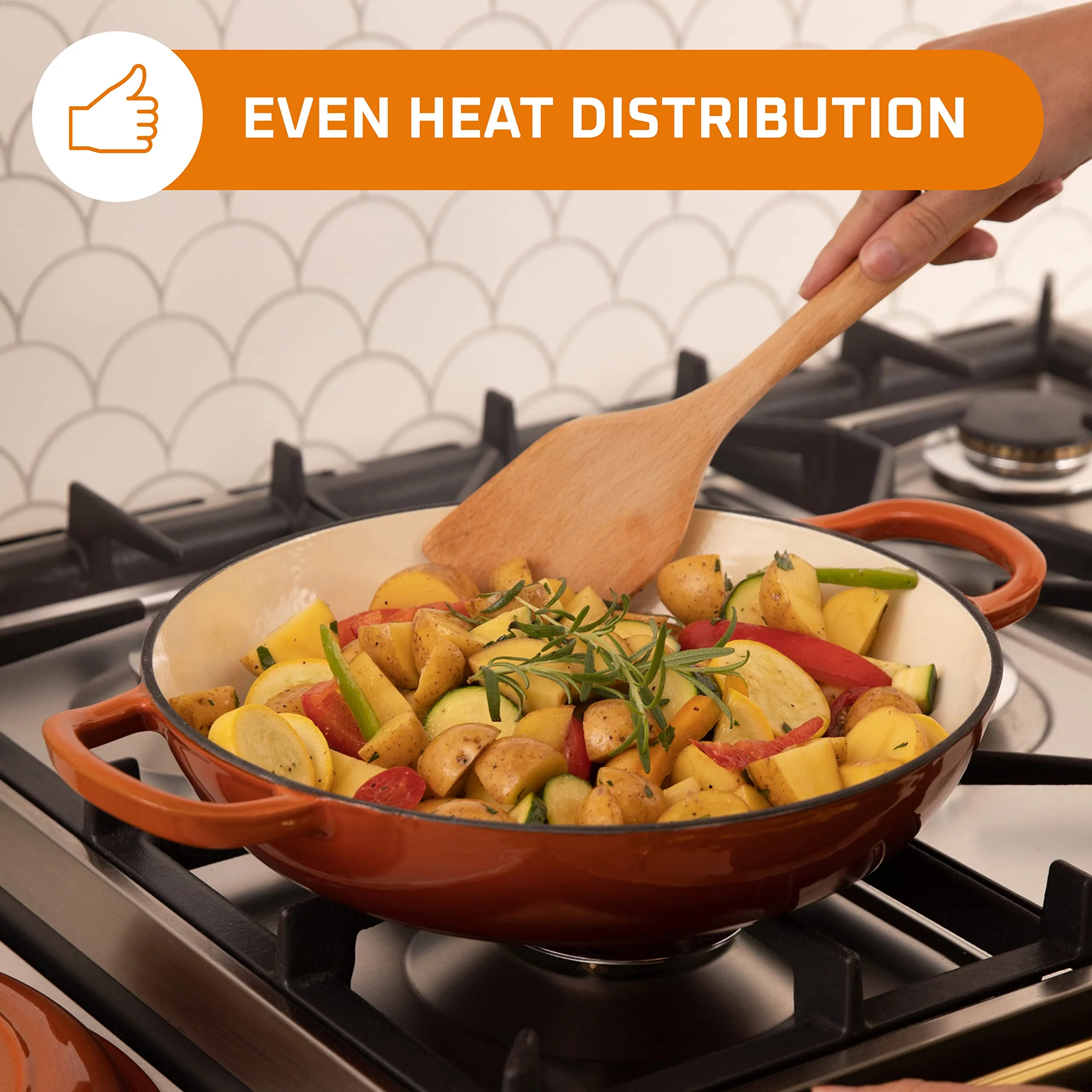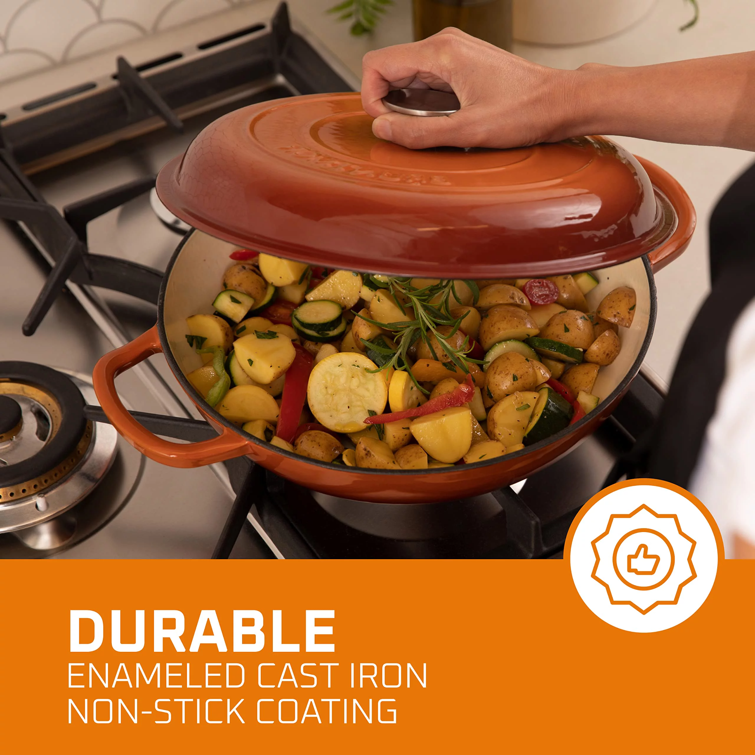 Bruntmor Porcelain Enameled Cast Iron Casserole Braiser 3.8-Quart, Pumpkin Spice - Curated Treasures Market