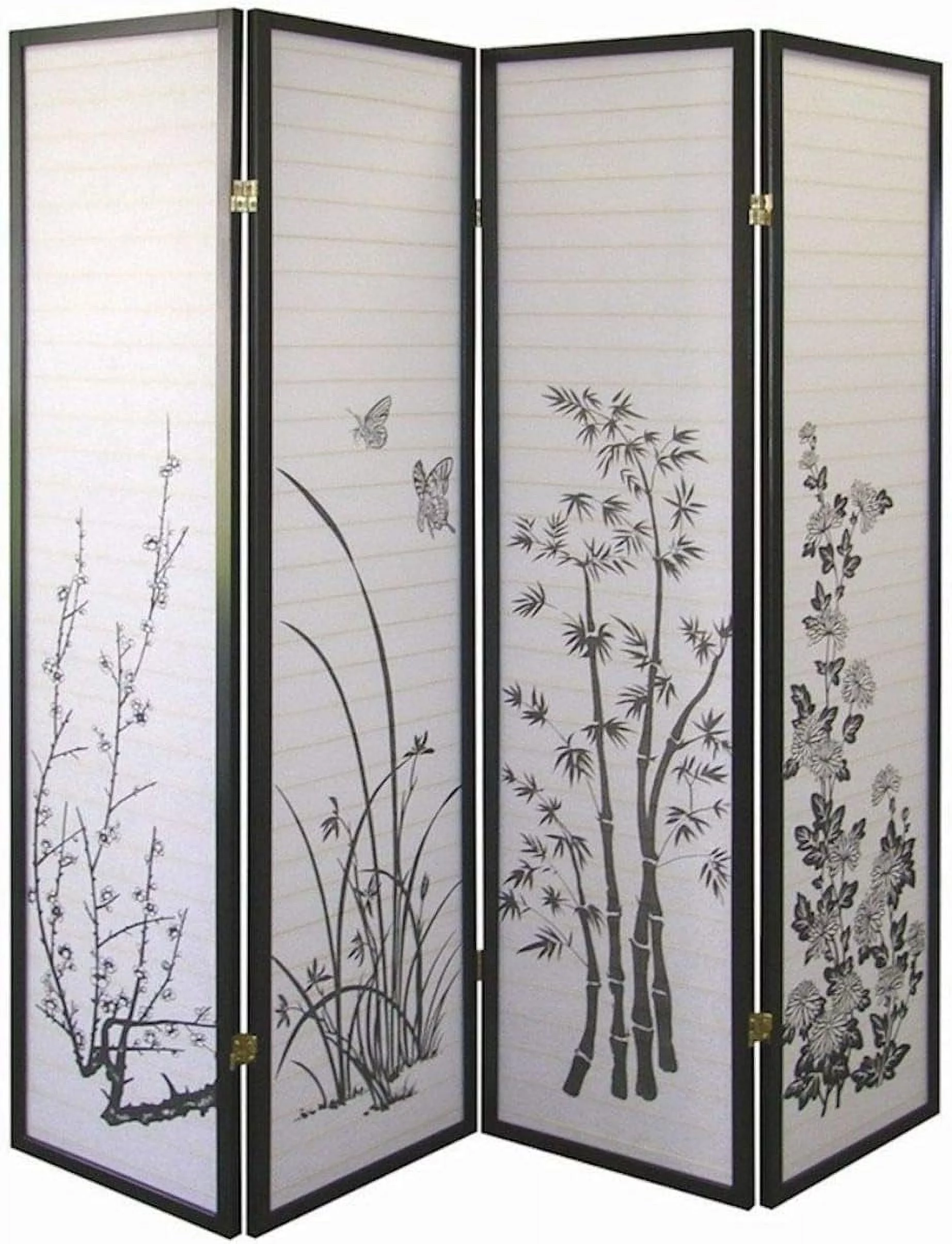 4 Panel Room Divider Privacy Screen Bamboo Print 71" Tall X 70" Wide - Curated Treasures Market