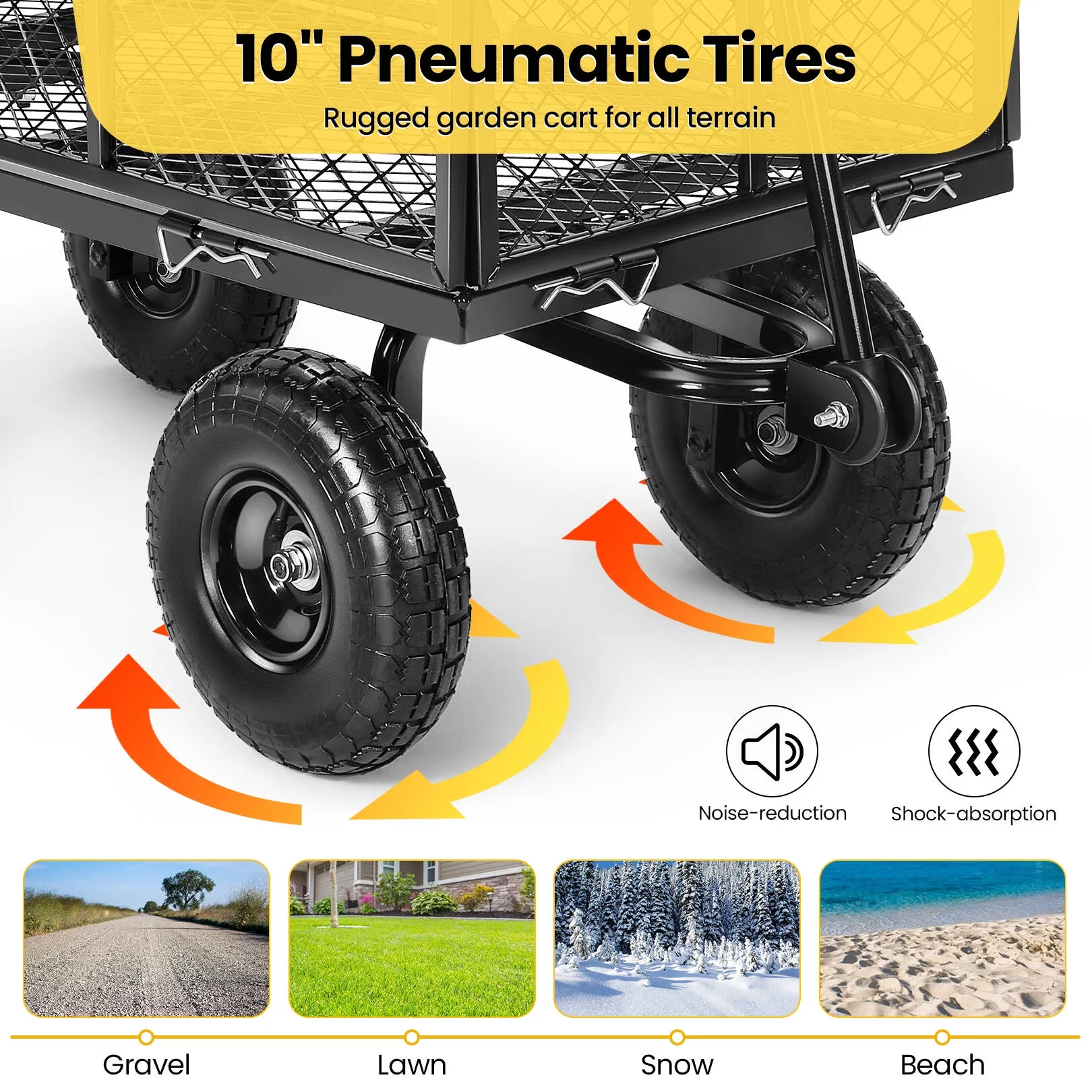 SEJOV Steel Garden Cart, Heavy Duty 660 LBS Capacity, with Removable Mesh Sides to Convert into Flatbed, Utility Metal Wagon with 180° Rotating Handle and 10" Tires, Perfect for Garden, Farm, Yard - Curated Treasures Market