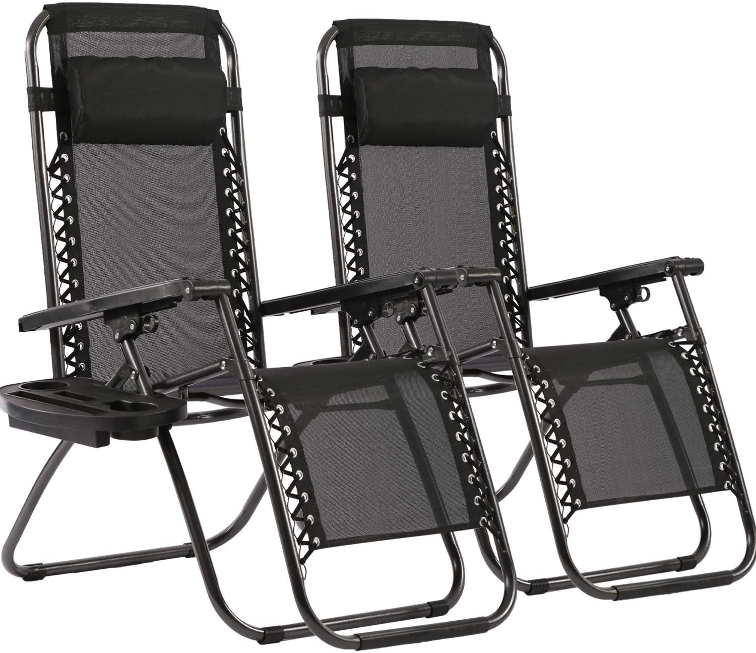 Zero Gravity Lawn Lounge Chairs Set of 2 with Pillow and Cup Holder - Adjustable Reclining Folding Outdoor Chairs for Deck, Beach, Yard - Curated Treasures Market