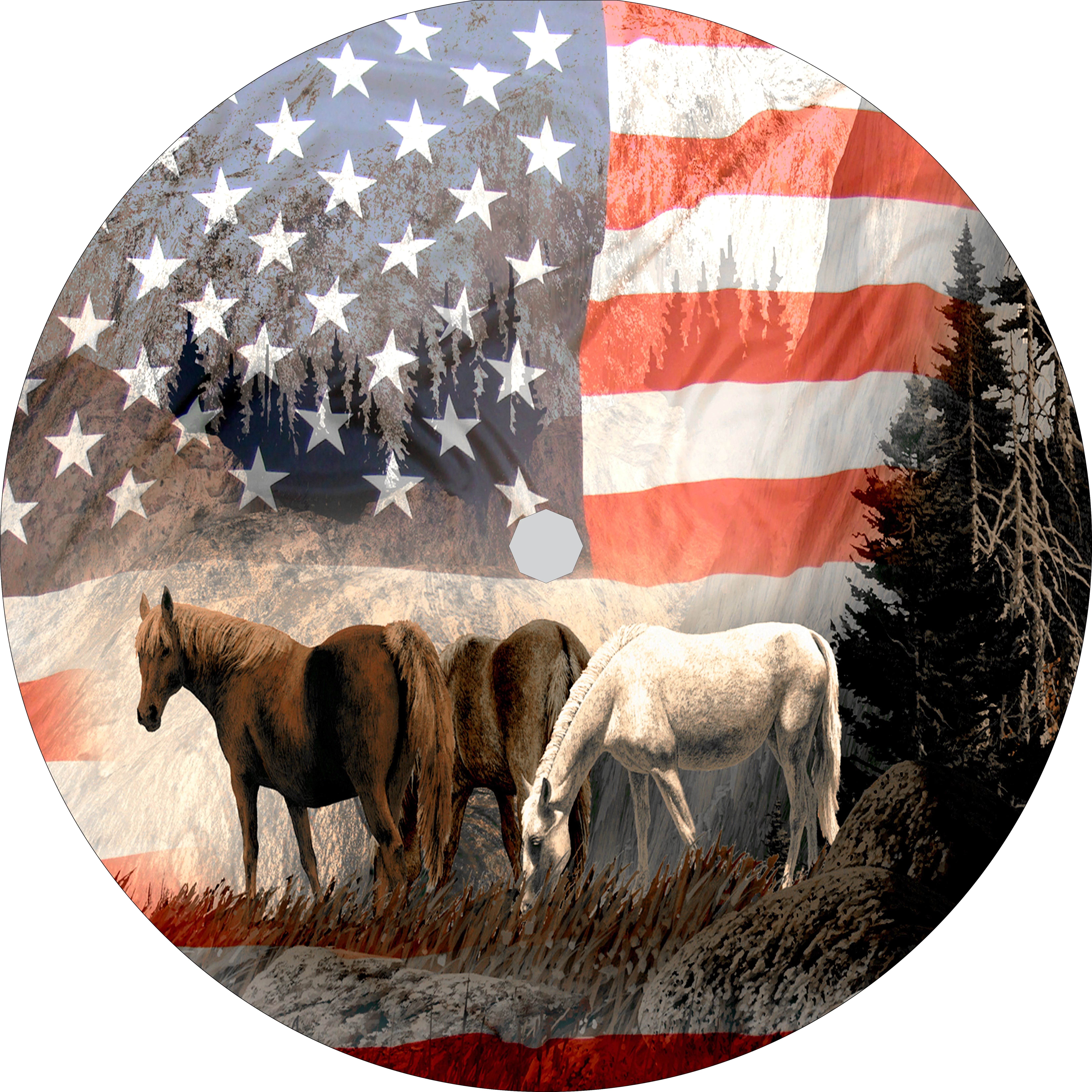 Tire Cover Central Horses & Flag Black Vinyl (Select Size/Camera in Menu)285/70r17 - Curated Treasures Market