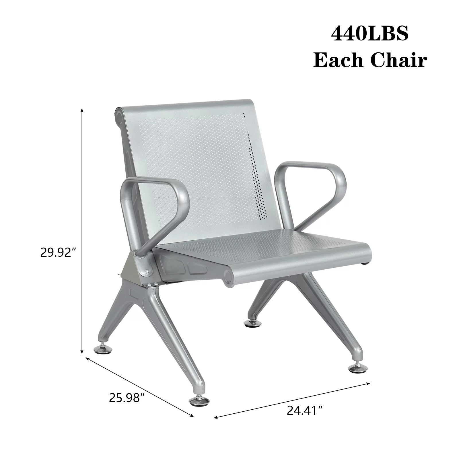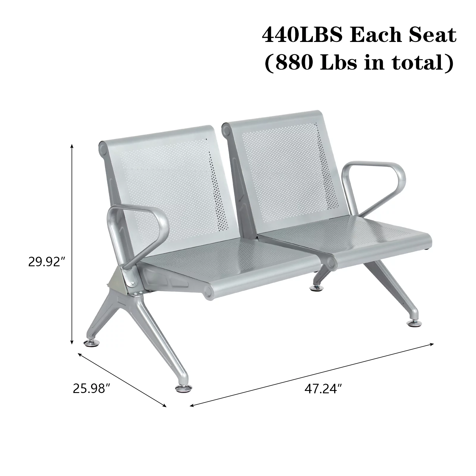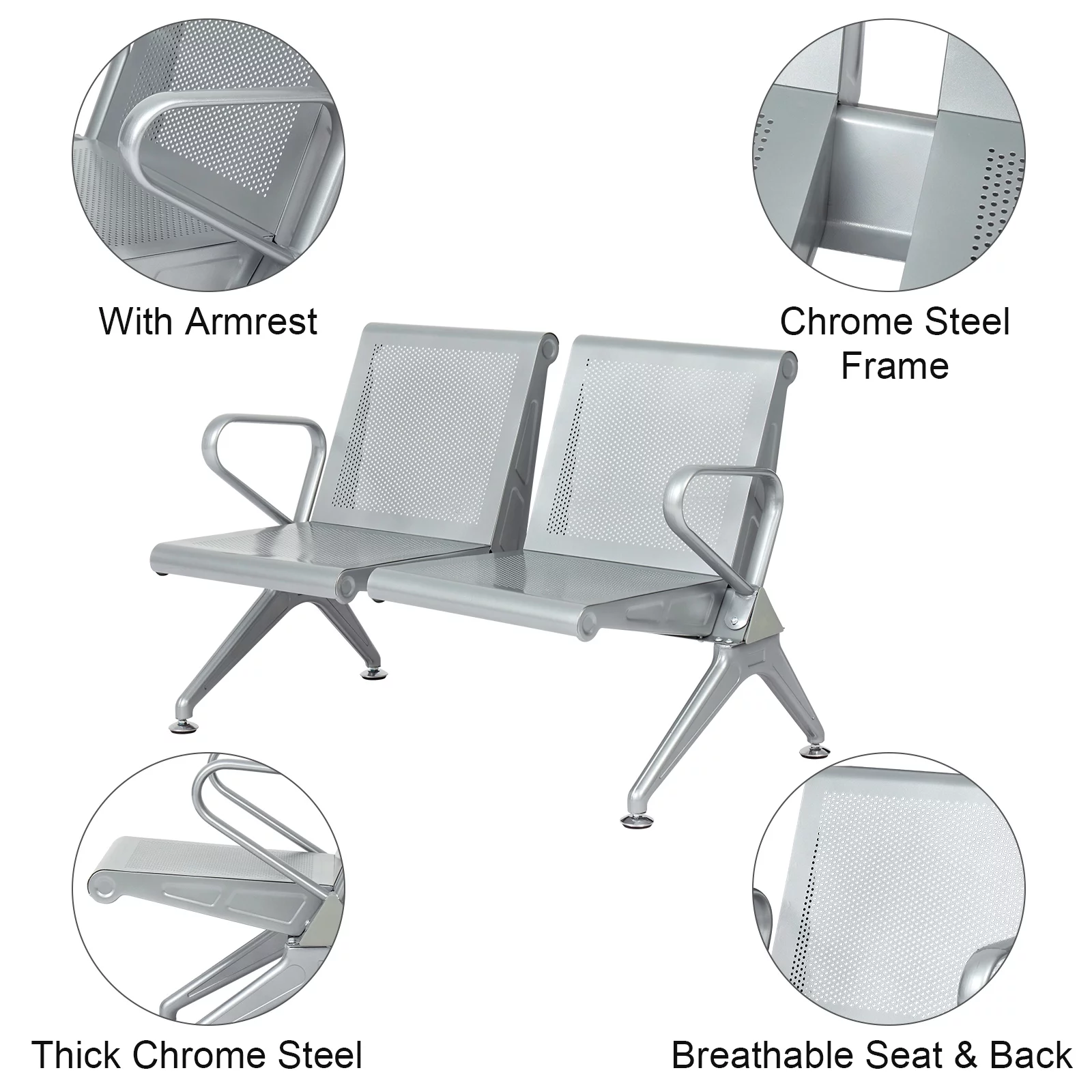 Kinbor 2pcs Office Guest Reception, Steel Frame Waiting Chair Bench for Airport, Silver - Curated Treasures Market