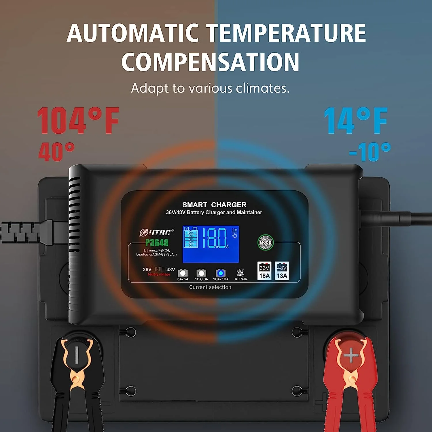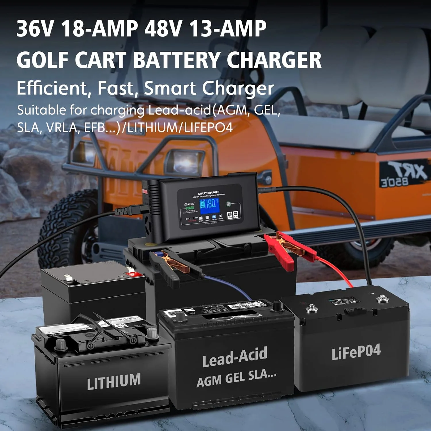 Golf cart Battery Charger, 48V 13A and 36V 18A Trickle Battery Charger,48 Volt cart Golf Charger,for 48 Volt Club Golf Car,Lithium,LiFePO4,Lead-Acid AGM/Gel/SLA..Battery Charger,3 Pin Round Plug - Curated Treasures Market