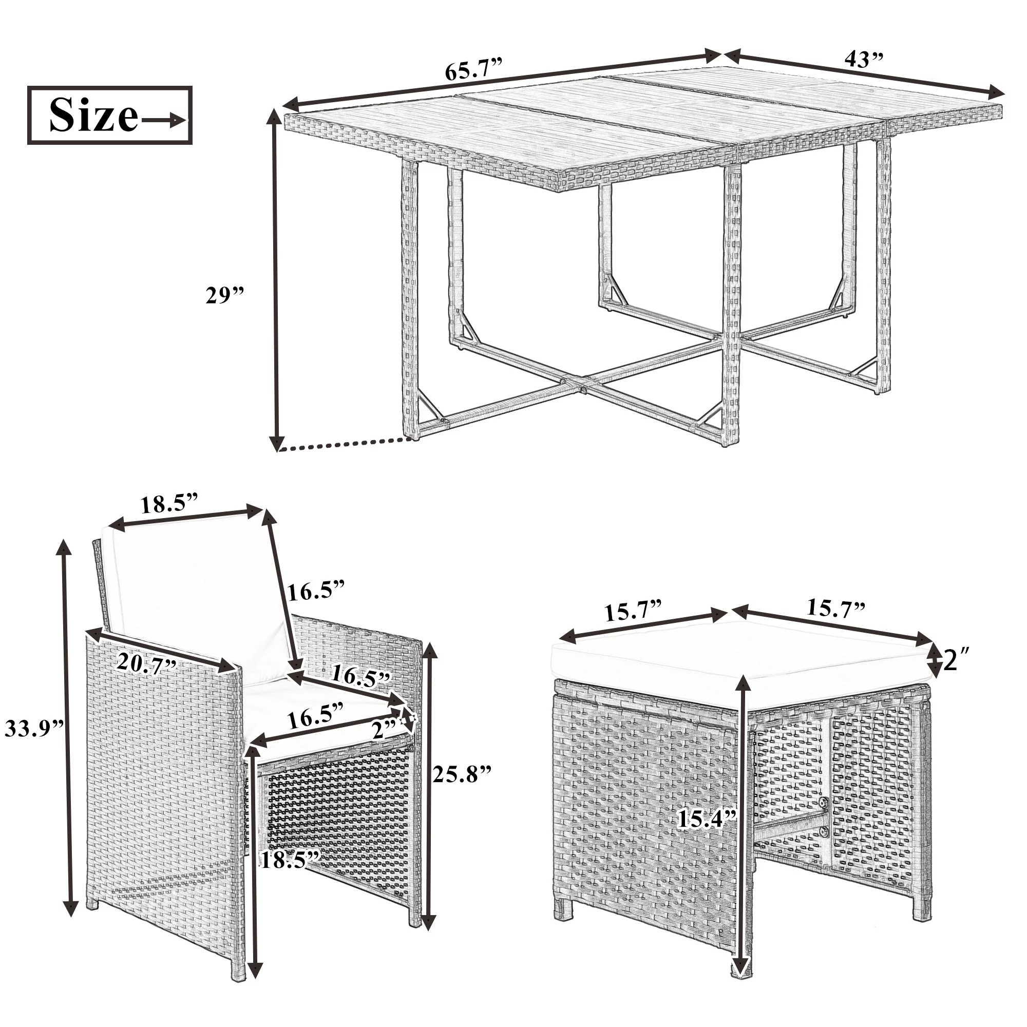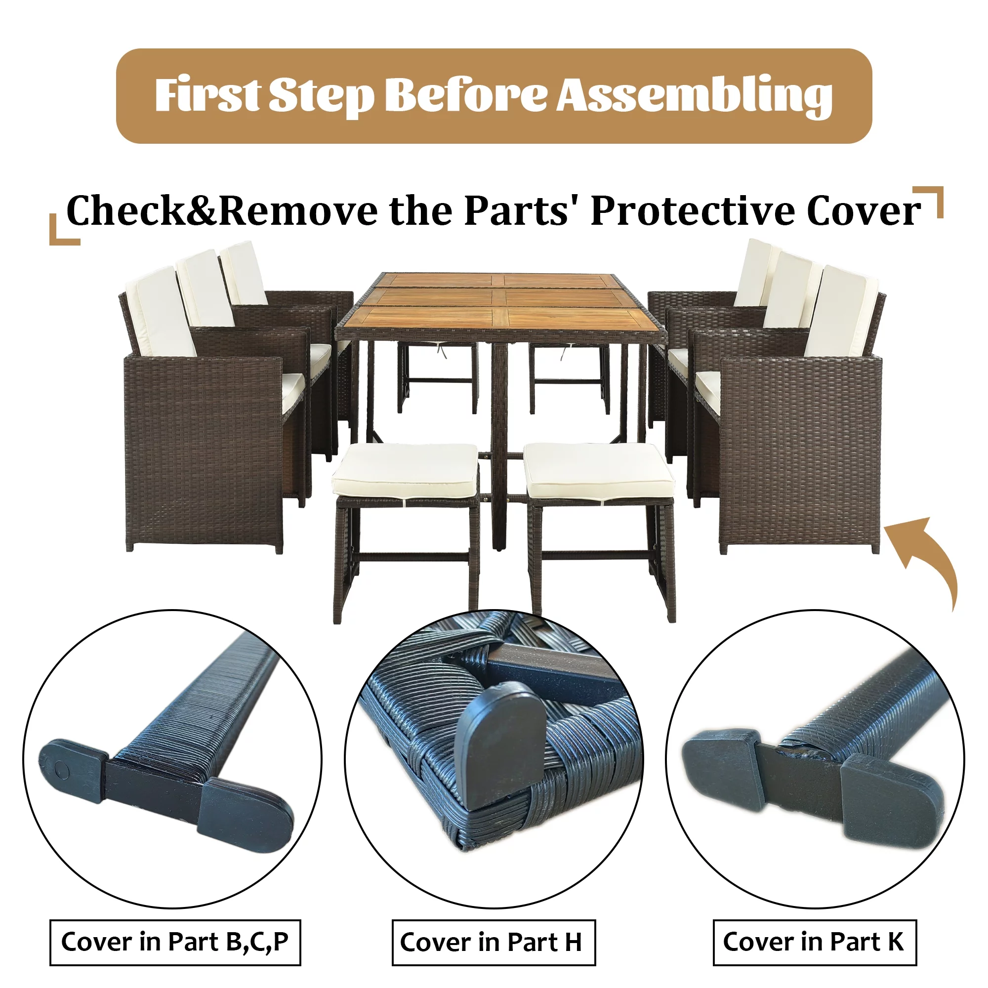 Euroco 11 Pieces Patio Dining Table Set All-Weather PE Wicker Table Set for 10 Persons, Brown Rattan & Beige Cushion - Curated Treasures Market