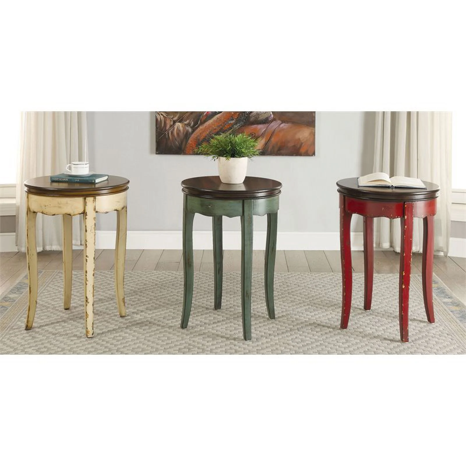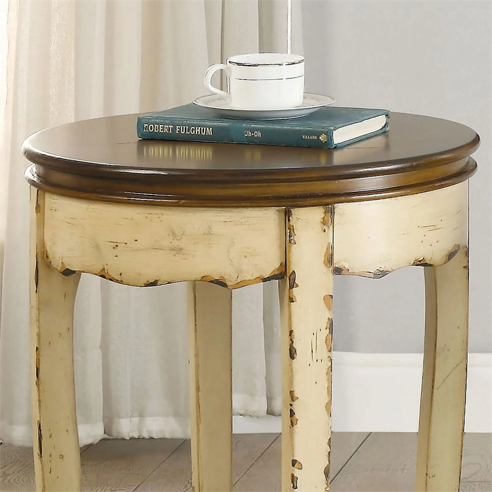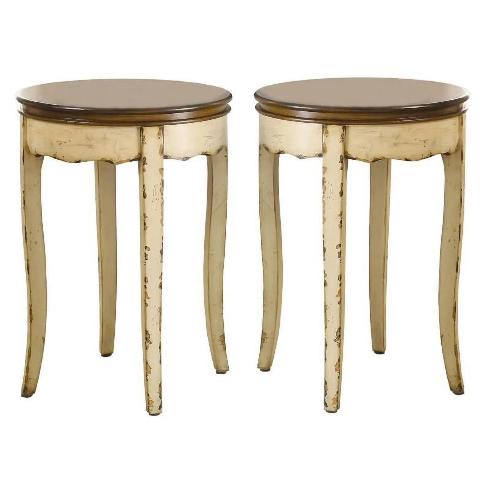 Home Square Nya Vintage Wood Round End Table in White - Set of 2 - Curated Treasures Market