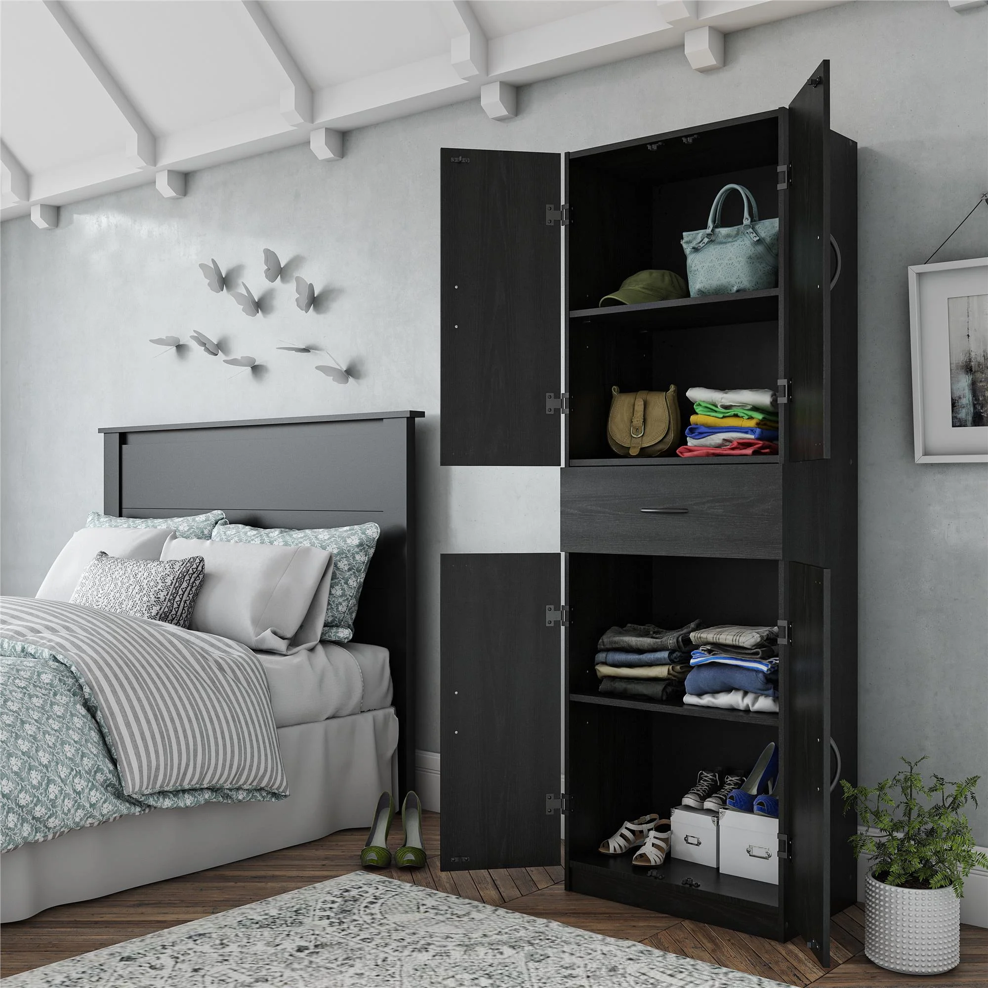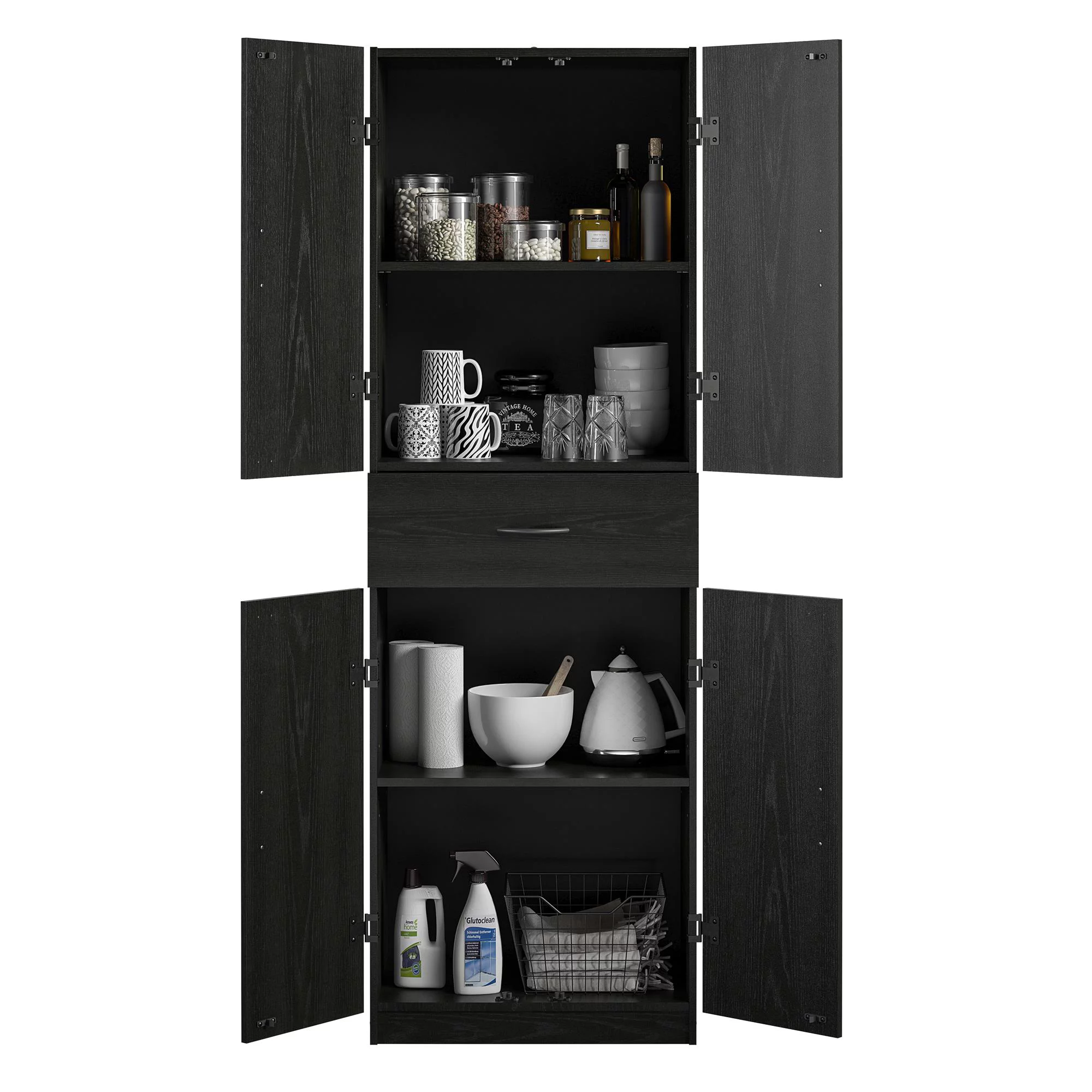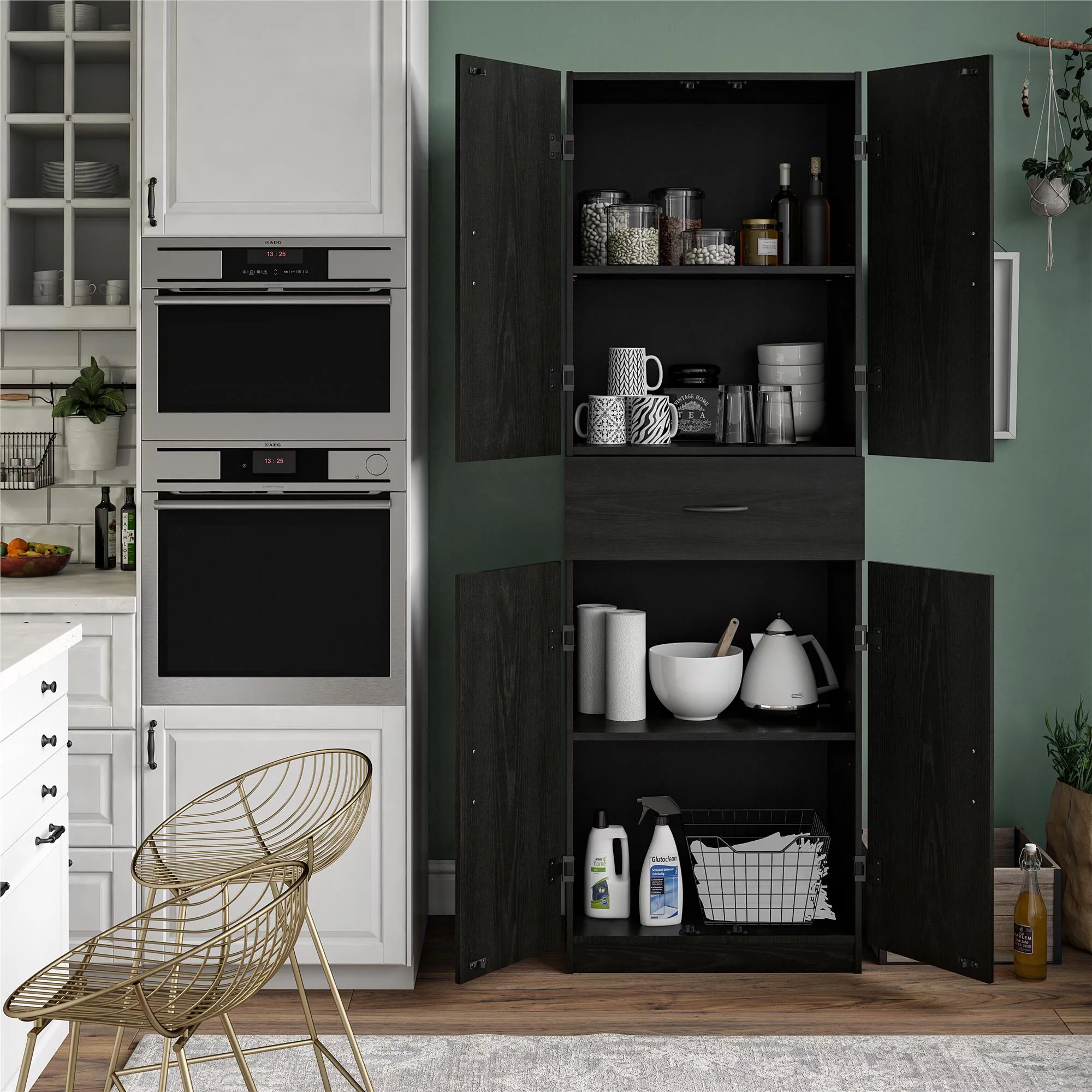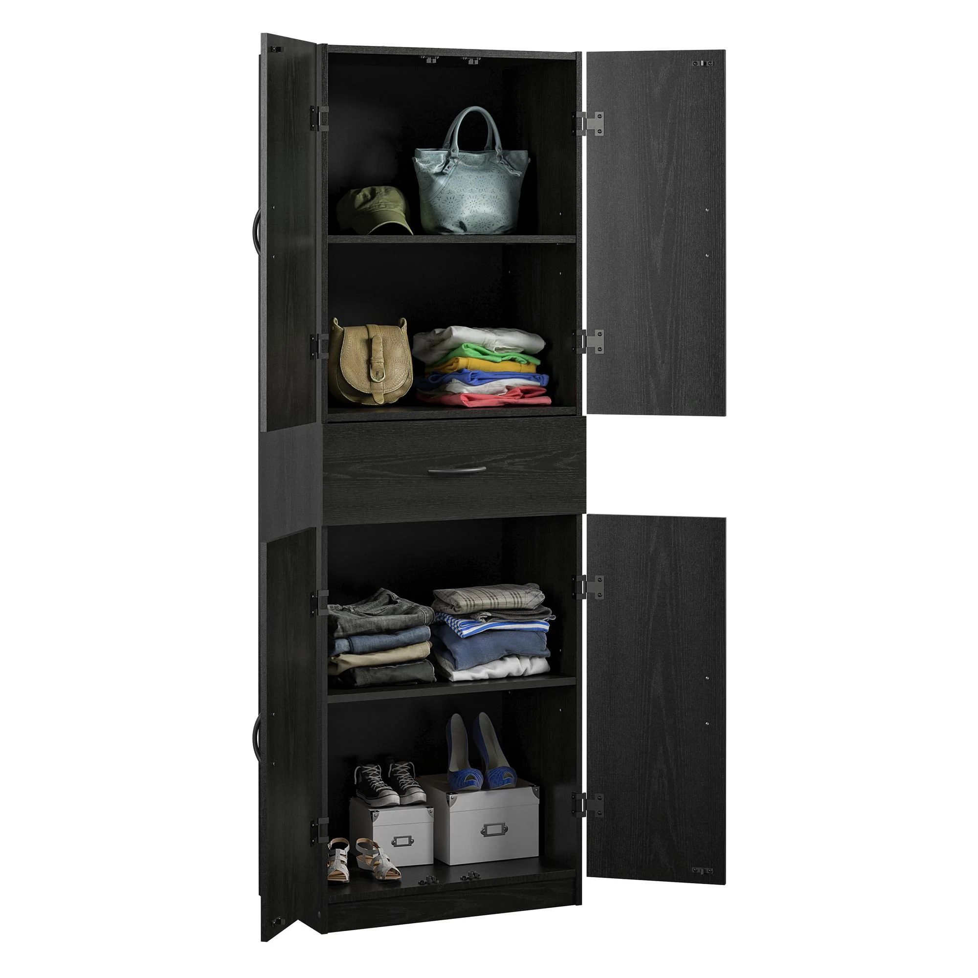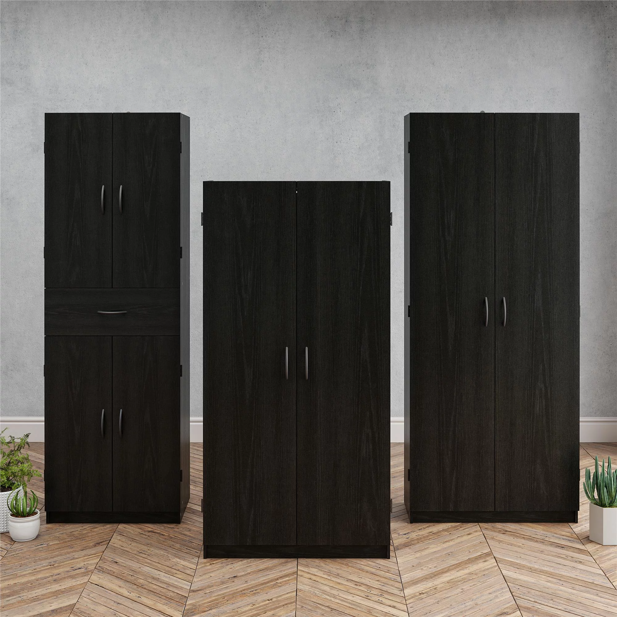Systembuild Evolution Pine Forest Storage Cabinet with Drawer, Black Oak - Curated Treasures Market