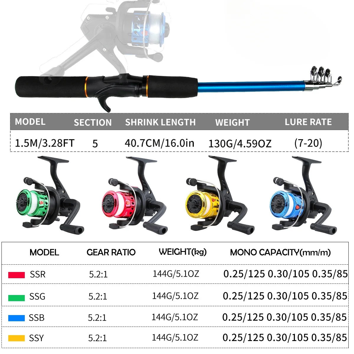 BNTTEAM Kids Fishing Rod, 1.5M 61Inch 4.92Ft Portable Telescopic Fishing Pole and Reel Combos and String with Fishing Line Full Kits, Youth Fishing Pole Fishing Gear for Kids, Boys, Girls, and Adults - Curated Treasures Market