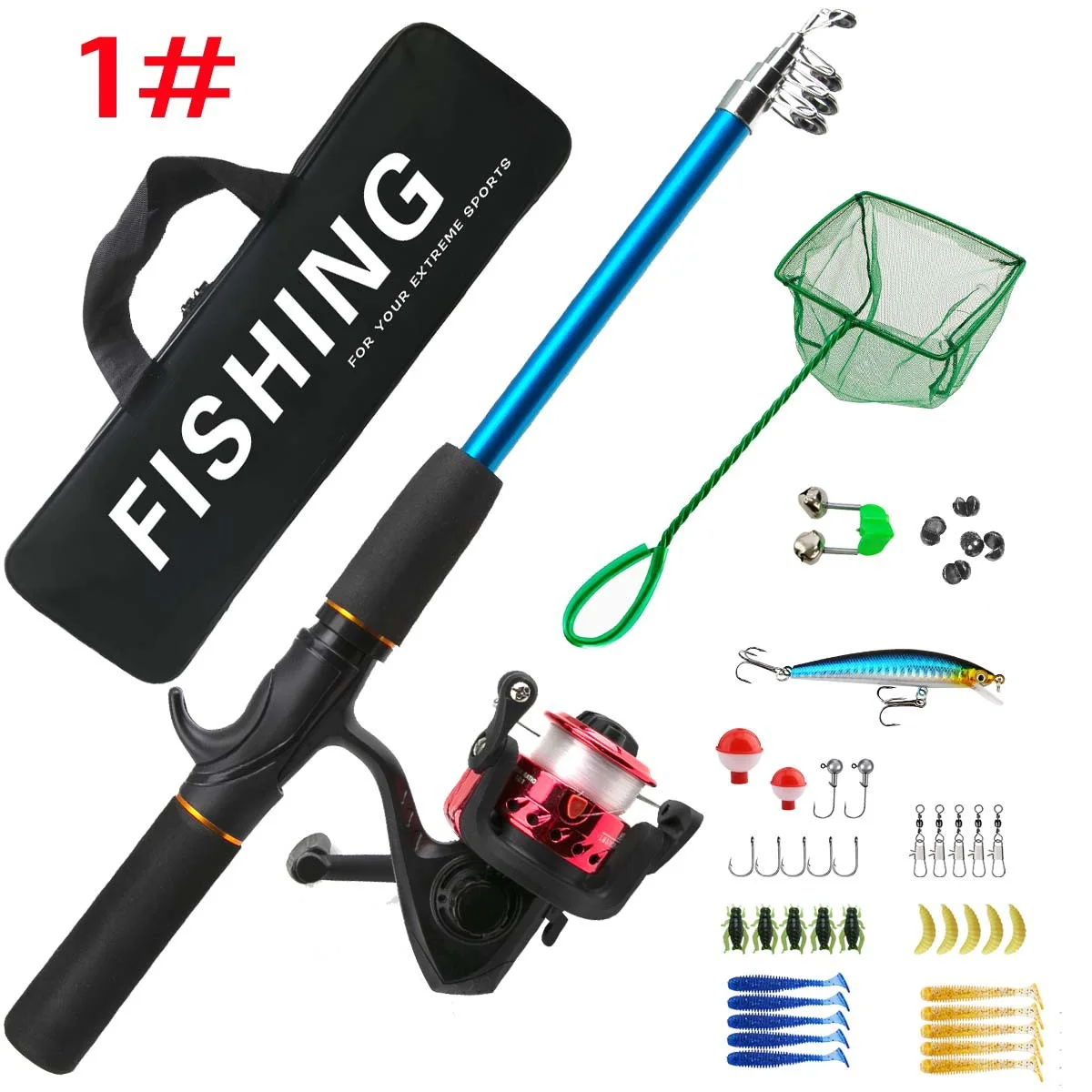 BNTTEAM Kids Fishing Rod, Kids Fishing Pole Portable Telescopic Fishing Rod and Reel Combo Kit for Boys, Girls, Youth - with Fishing Reel, Fishing Tackles, Fishing Lures, Fishing Lines - Curated Treasures Market