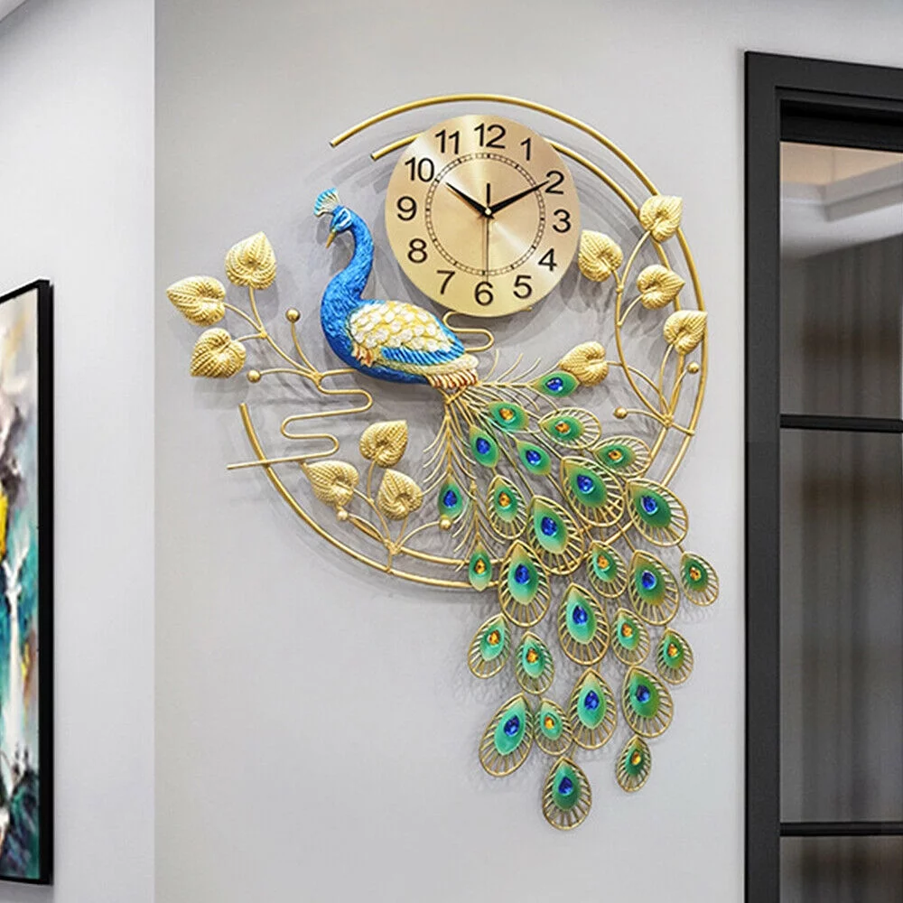 Fichiouy 36.6" Peacock Large Wall Clock Luxury 3D Metal Living Room Wall Watch Home Decor - Curated Treasures Market