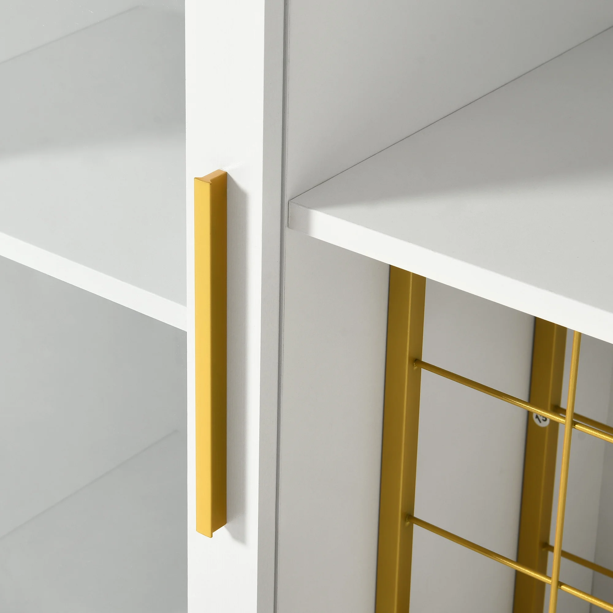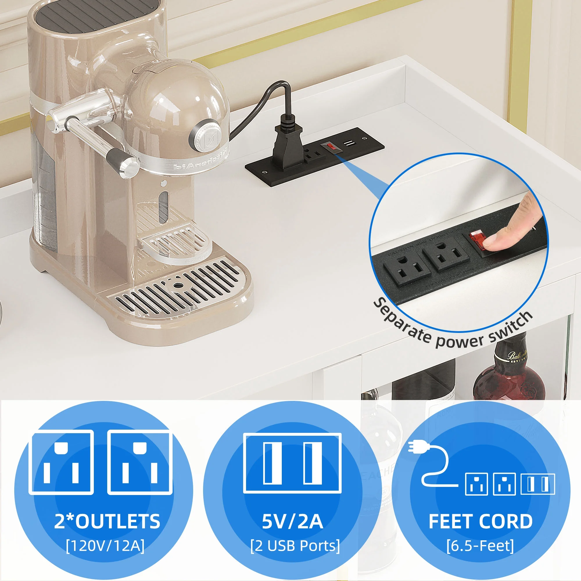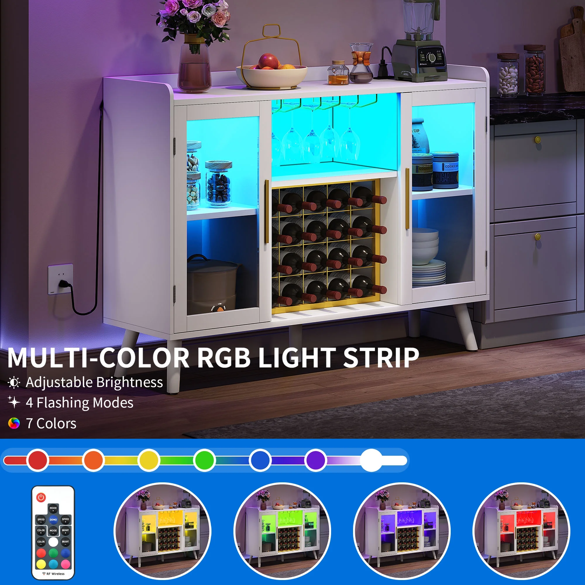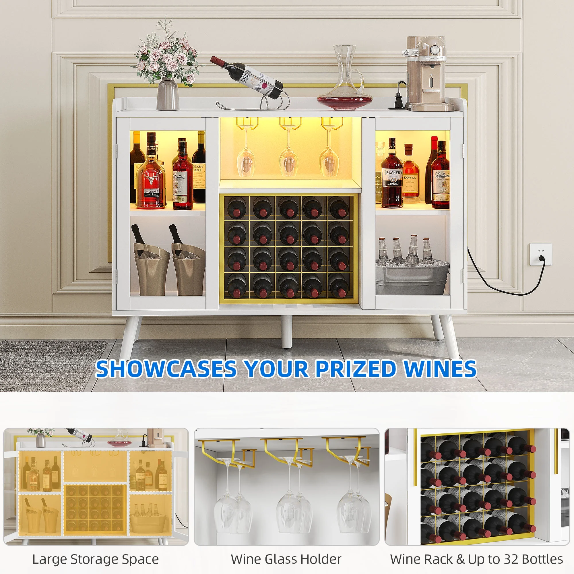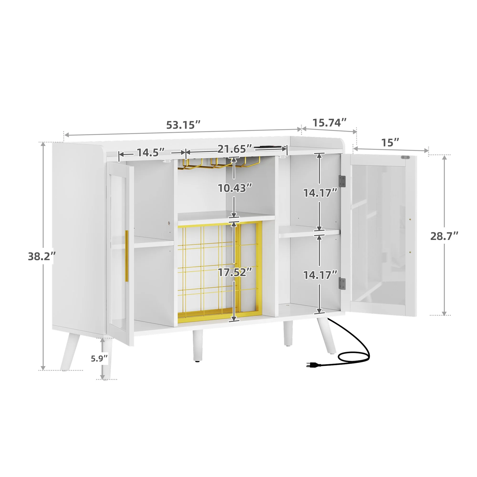 Dextrus 53" Wine Bar Cabinet with Power Outlet, 2 Door Sideboard Storage Cabinet With RGB LED Lights, Wine Rack Glass Holder for Kitchen, Dining Room, Living Room, White - Curated Treasures Market