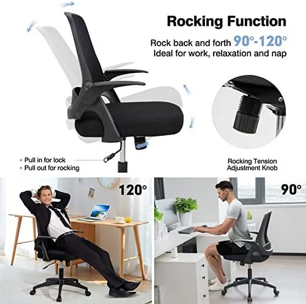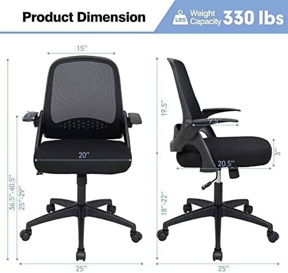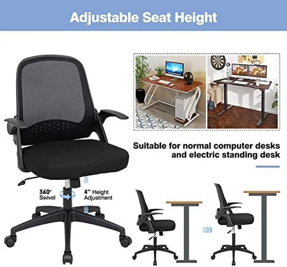 GVJMTKP Office Chair Ergonomic Desk Chair w/Flip-up Armrests Mid-Back Mesh Computer Chair w/Lumbar Support Height Adjustable Swivel Task Chair for Home Office Rolling Executive Chair - Curated Treasures Market