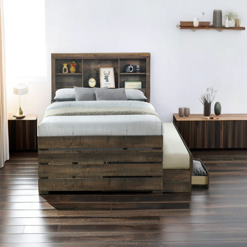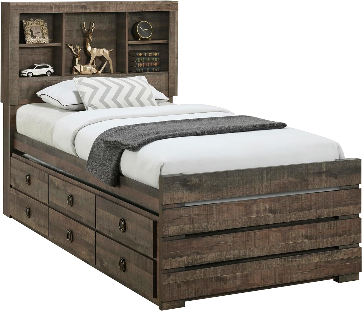 Farmhouse Style Twin Size Captain Platform Bed with Trundle,Wooden Bookcase Bedframe with 3 Spacious Under Bed Drawers in Casual for Bedroom/Guestroom - Curated Treasures Market