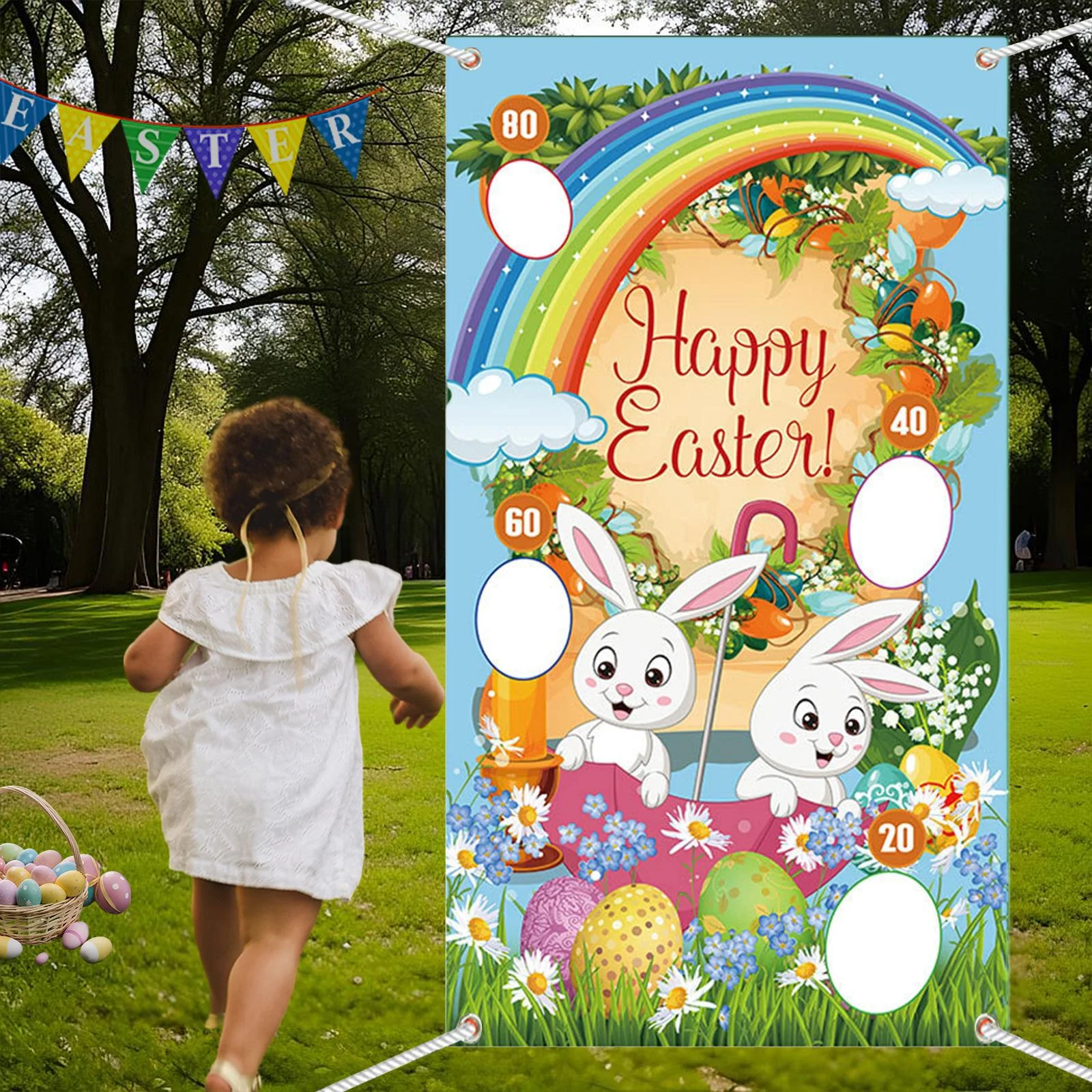 Almencla Toss Game Banner Backdrop Carnival Activity Photo Props Party Supplies Bunny Toss Games Kids Throwing Banner for Easter Gifts A - Curated Treasures Market