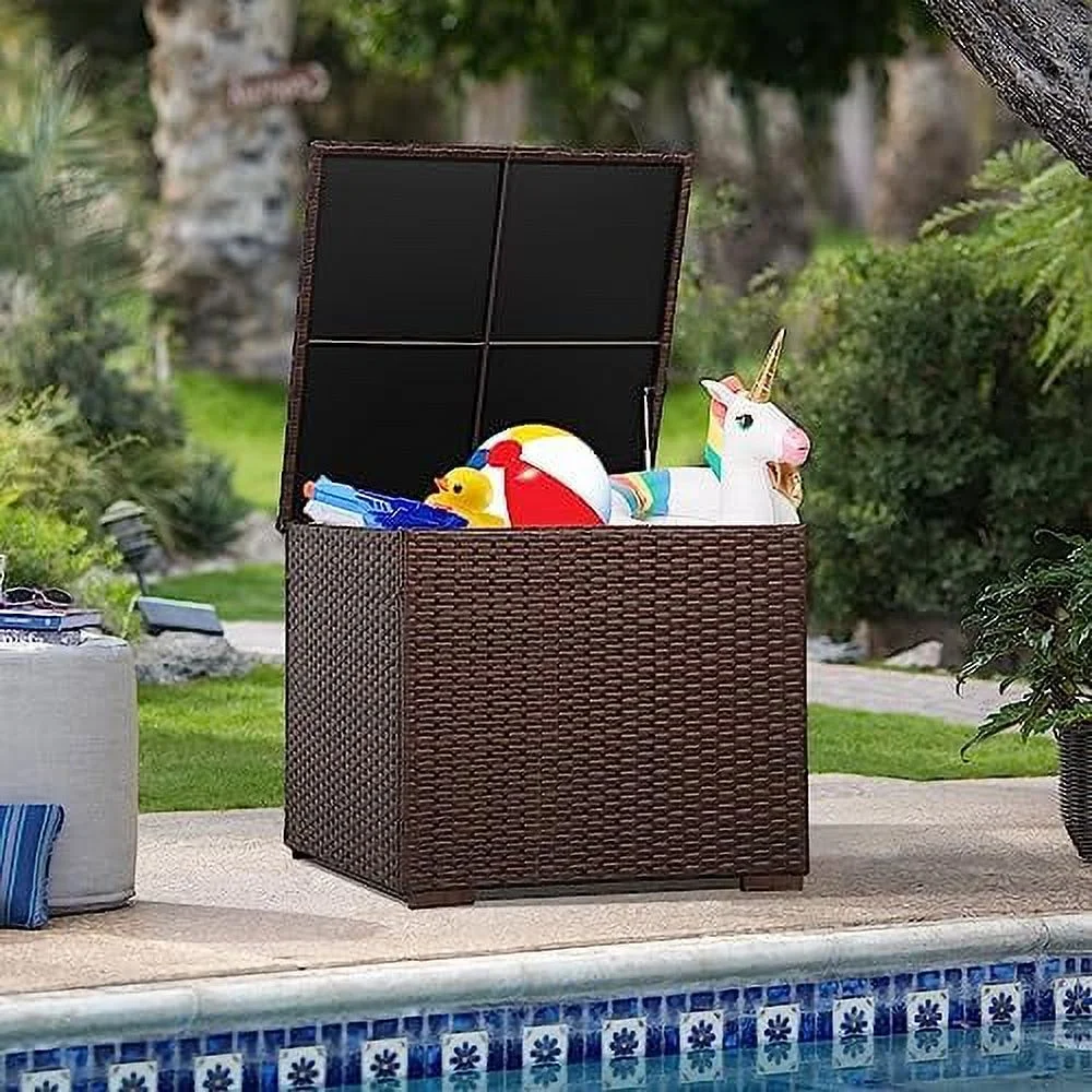 YPDCHB 88 Gallon Wicker Deck Box Indoor/Outdoor Box for Patio Cushions Gardening Tools and Toys - Resin Rattan Patio Cushion Bin Grey - Curated Treasures Market