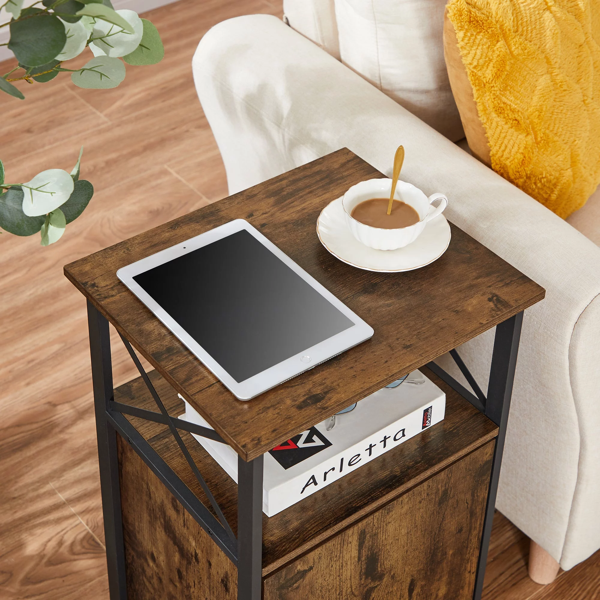 HYHBIBOOM End Table with LED Lights & Charging Station Farmhouse Wooden Set 2 with Sliding Drawers Narrow Nightstand with LED Lights for Bedroom Living Room (White 2PCS) - Curated Treasures Market