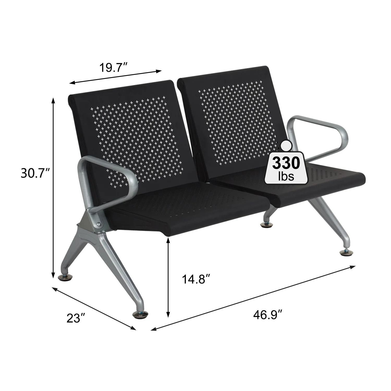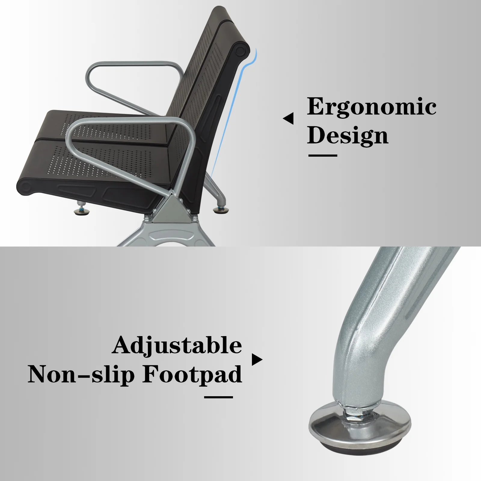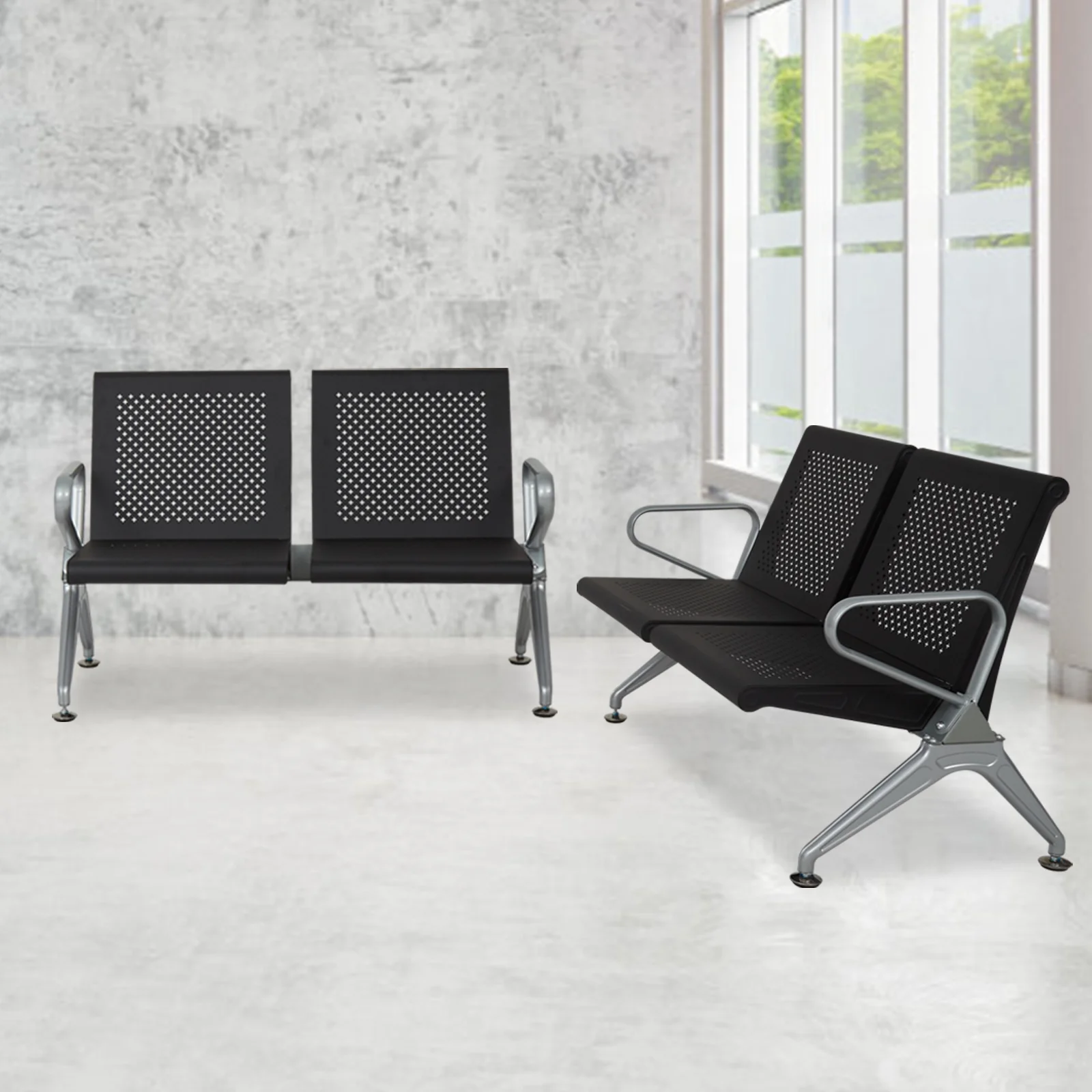 Kinbor 4-Seat Office Waiting Room Chairs, Reception Guest Bench w/ Steel Frame, Black - Curated Treasures Market