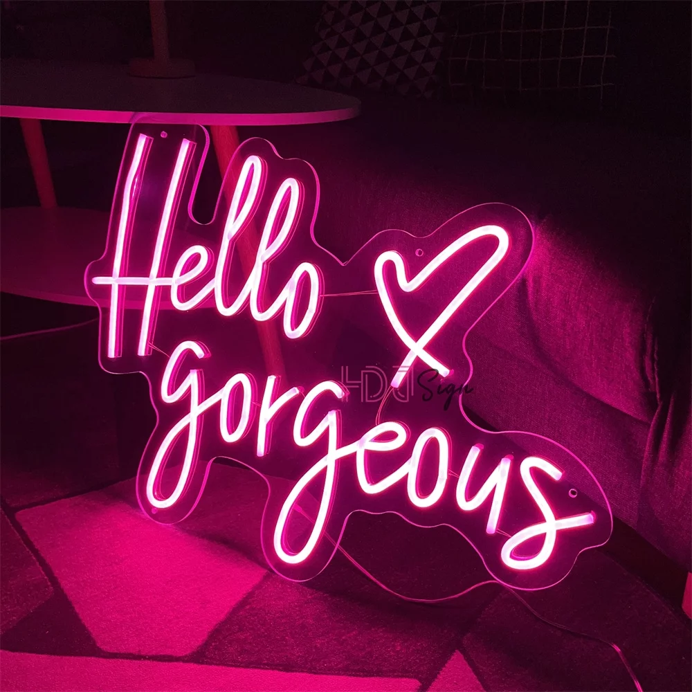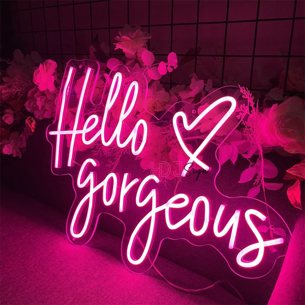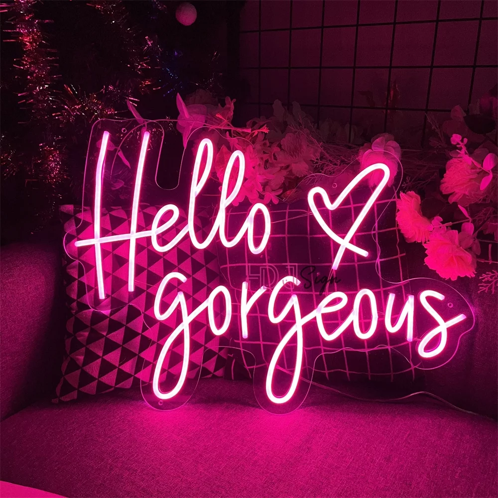 Hello Gorgeous Neon Sign, Pink LED Neon Light Letters Heart Decorative Wall Lights for Girls Room Wedding Anniversary Engagement Birthday Party (23.62x16.92inch) - Curated Treasures Market
