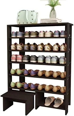 JYHOME Jerry & Maggie - 4 Tier Wood MDF Shoe Rack With One Footstool/Shoe Shelves Free Standing Shoe Racks Classic Style -101% Multi organizer - Black - Curated Treasures Market