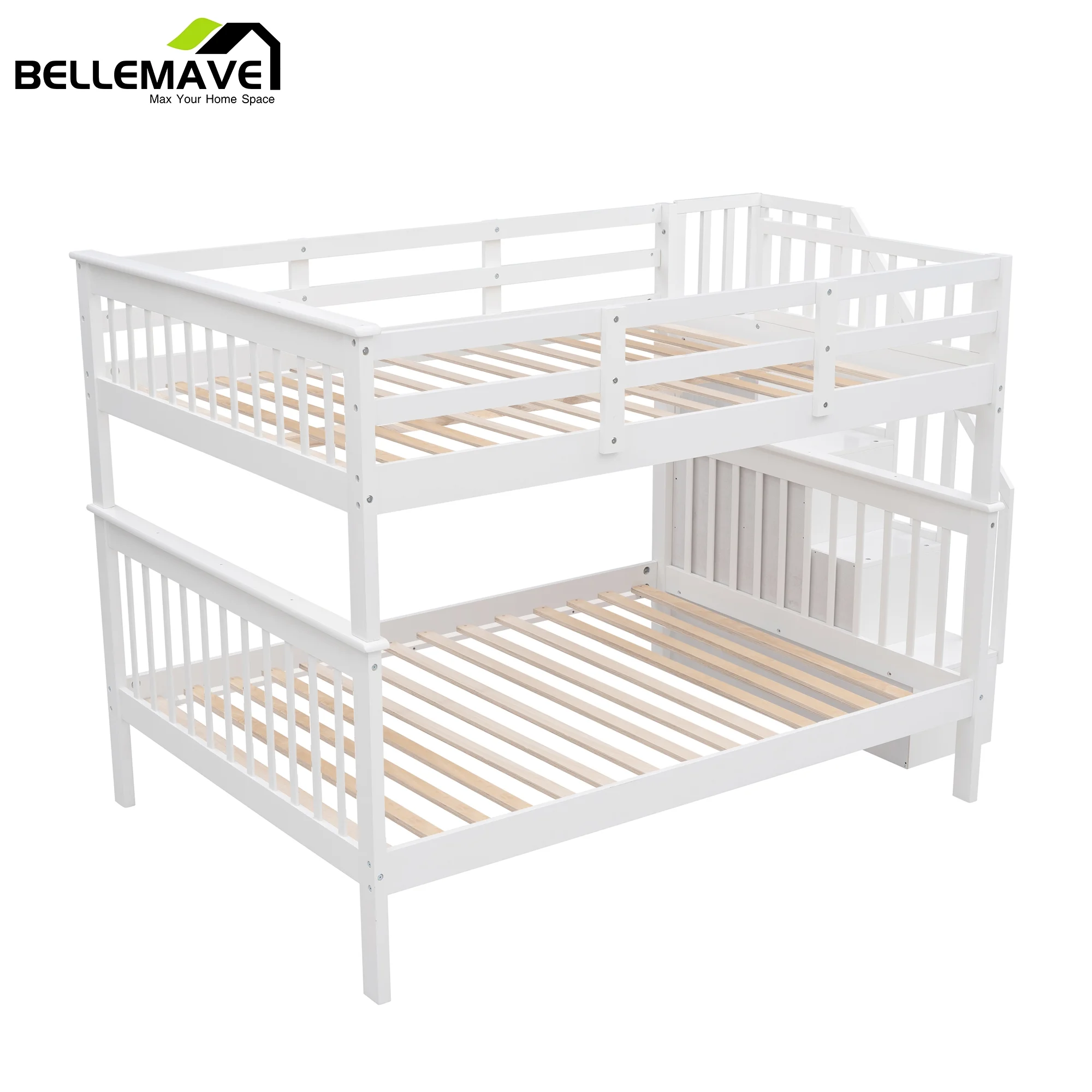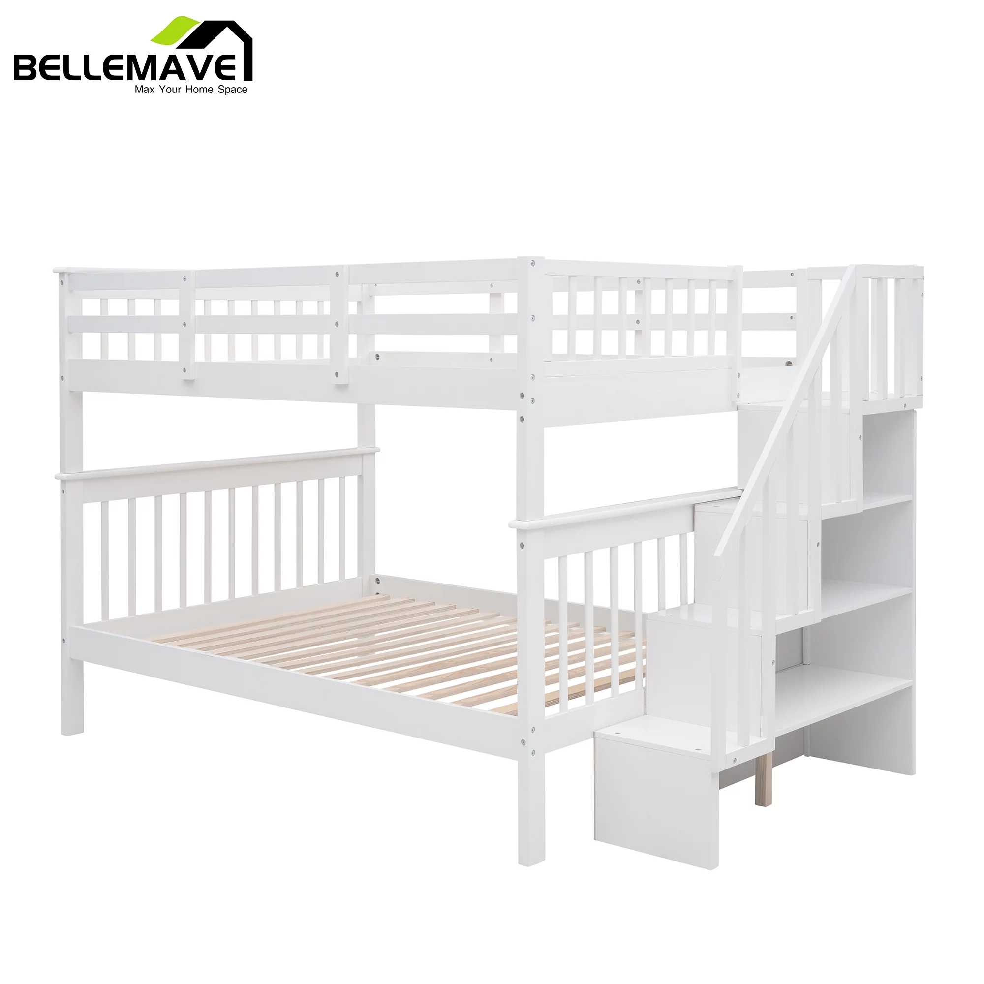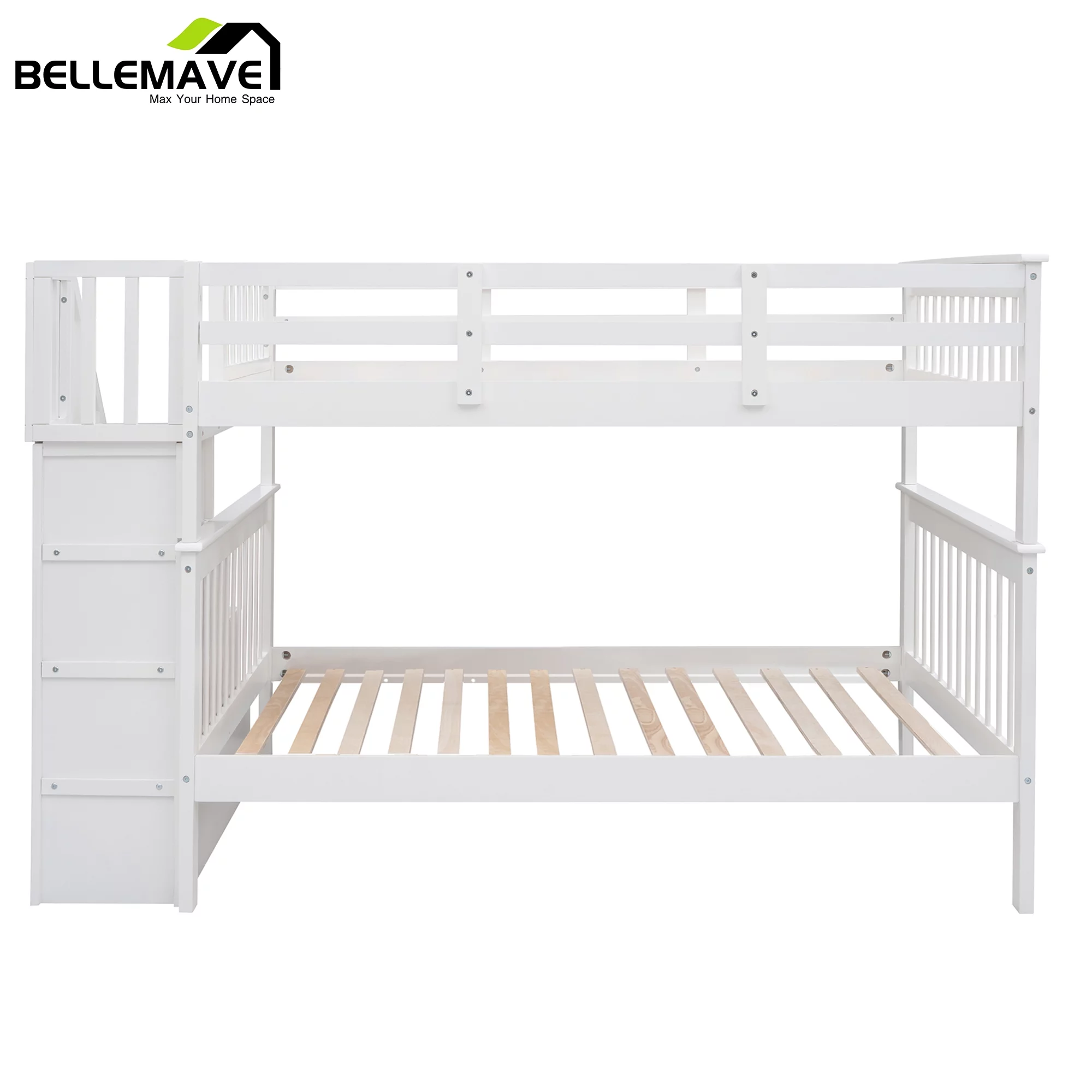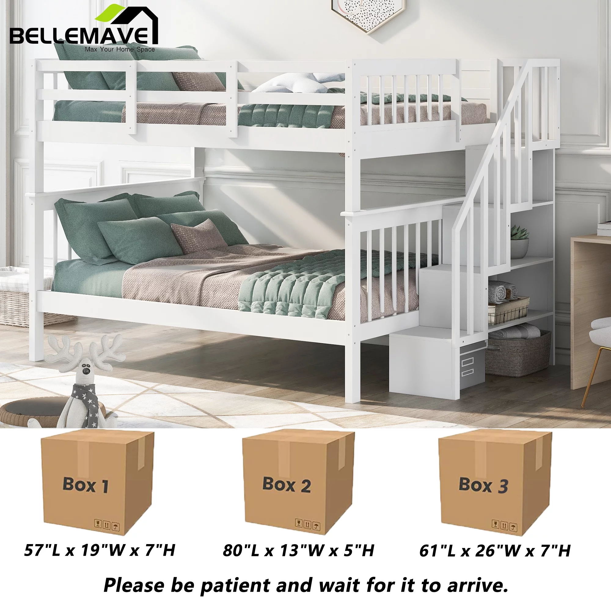 BELLEMAVE Full over Full Bunk Beds for Kids, Kids Bunk Beds with Storage Stairs and Full-Length Guardrail, Convertible Into 2 Bed, No Box Spring Needed(White) - Curated Treasures Market