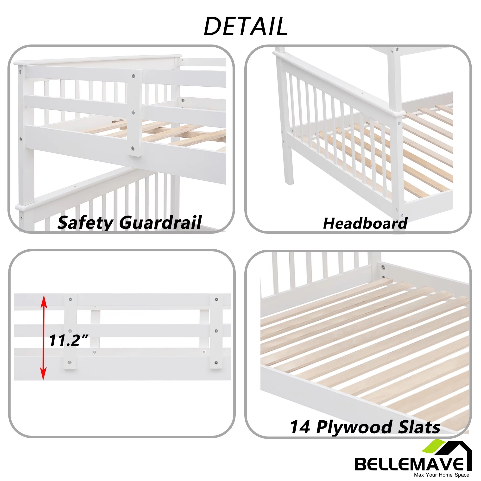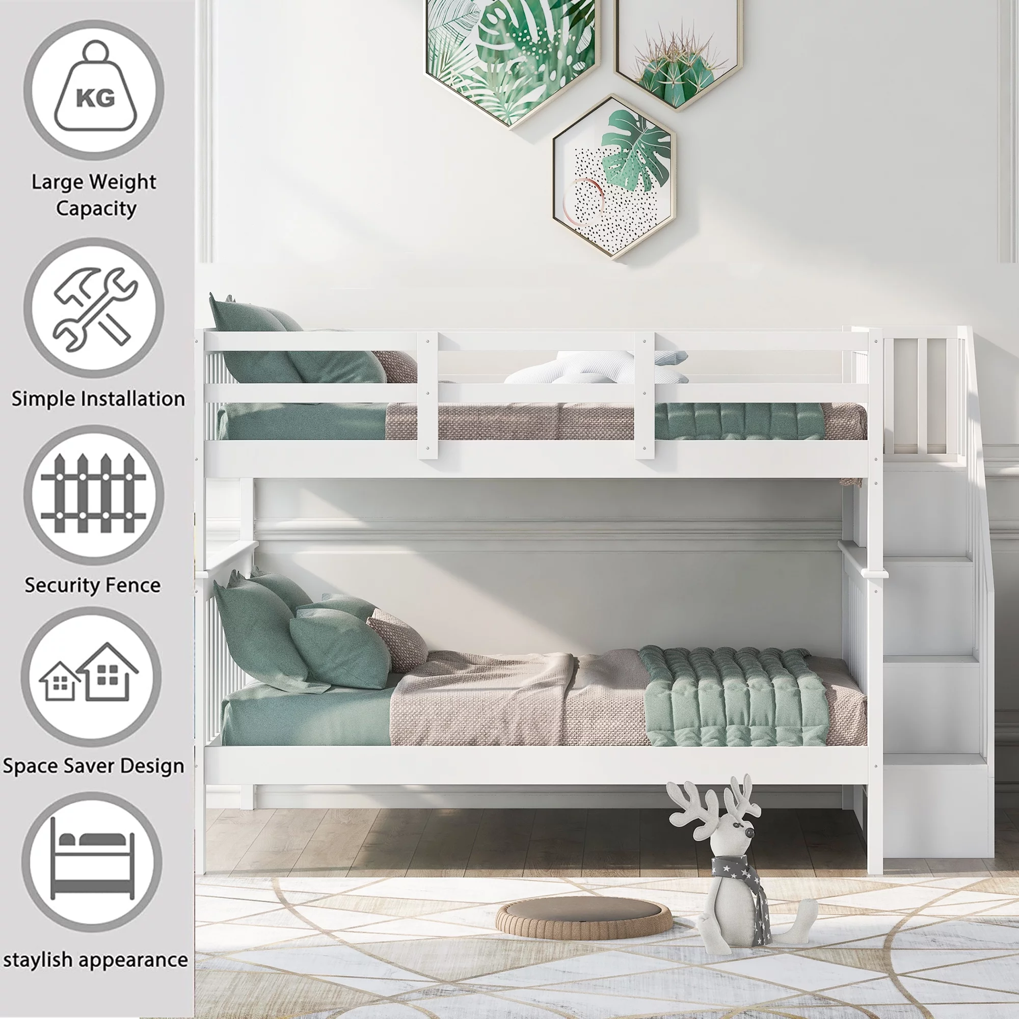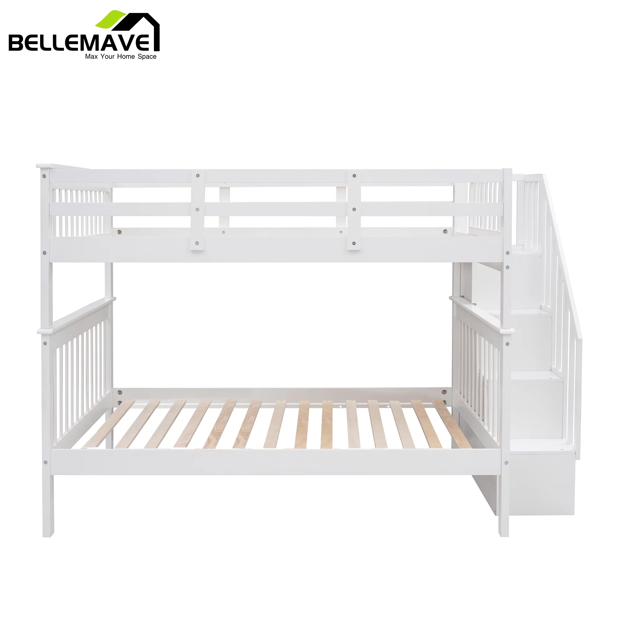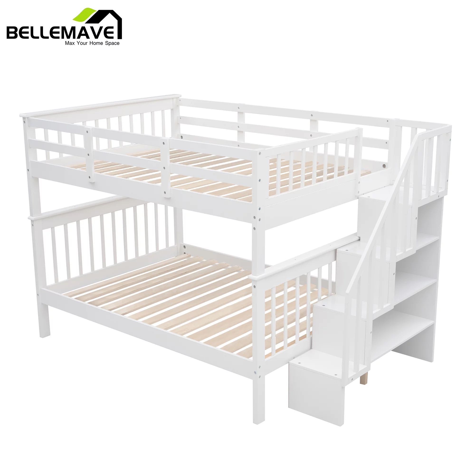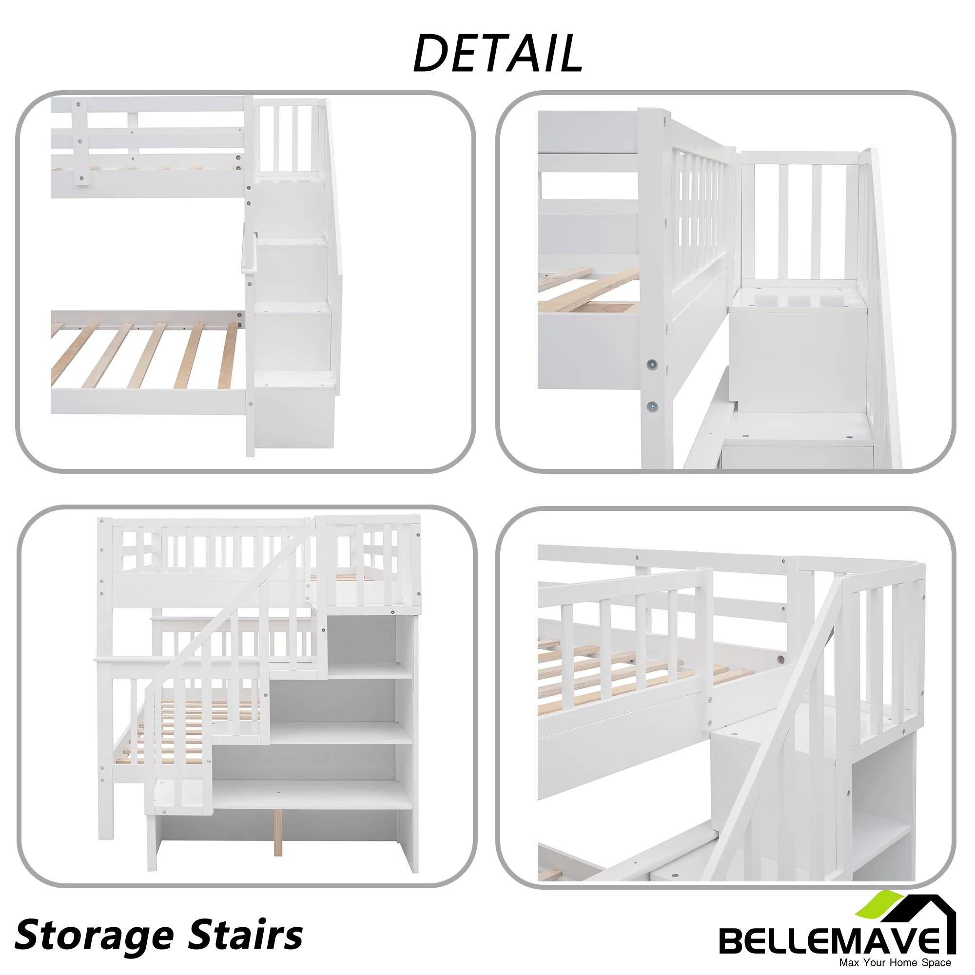 BELLEMAVE Full over Full Bunk Beds for Kids, Kids Bunk Beds with Storage Stairs and Full-Length Guardrail, Convertible Into 2 Bed, No Box Spring Needed(White) - Curated Treasures Market