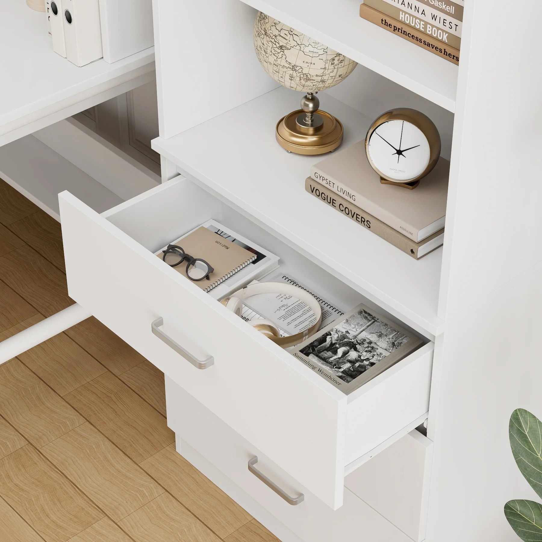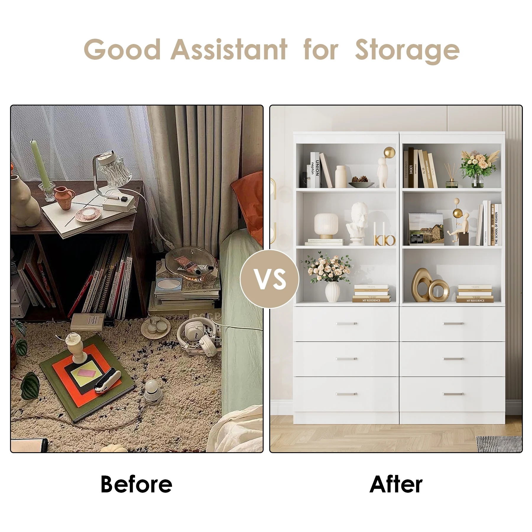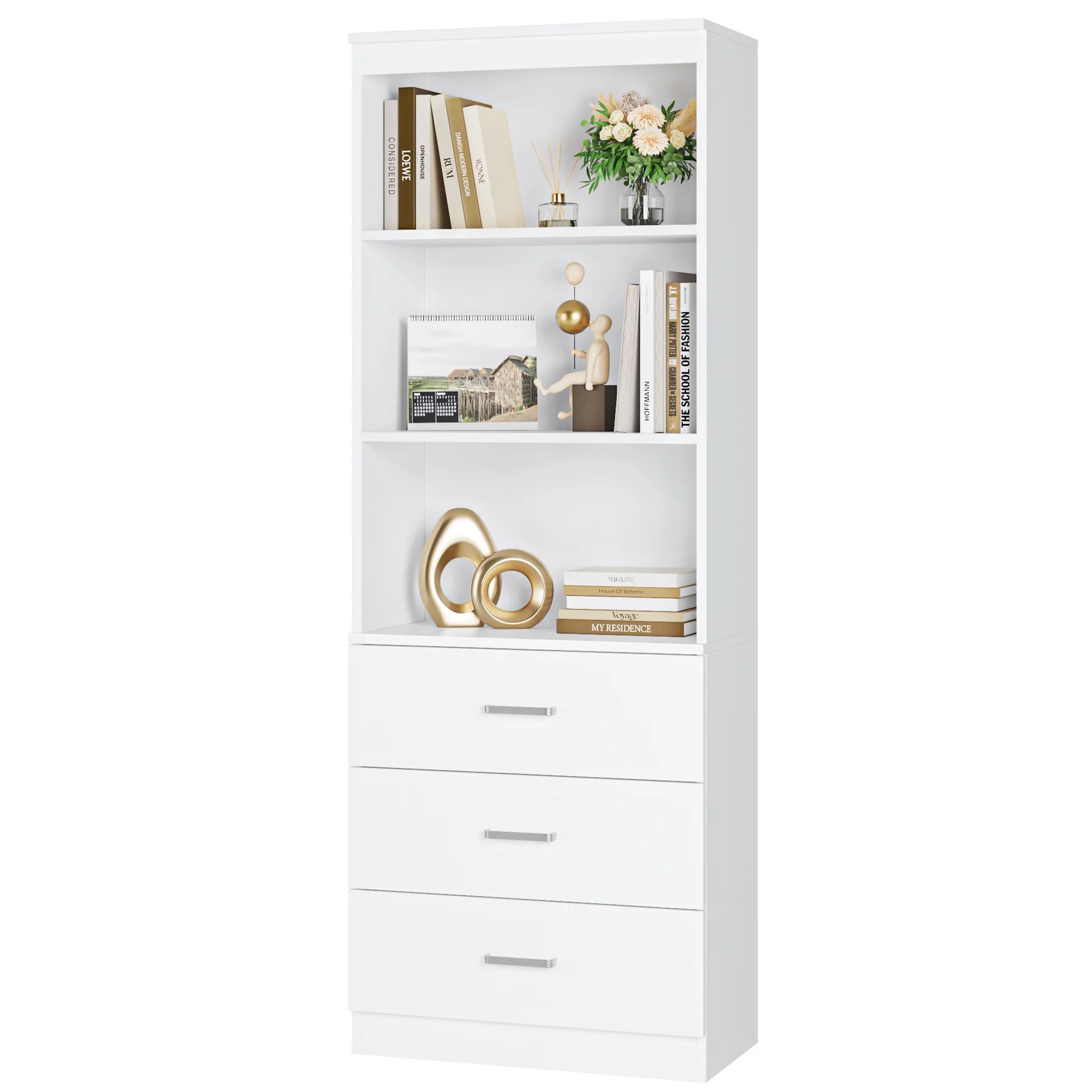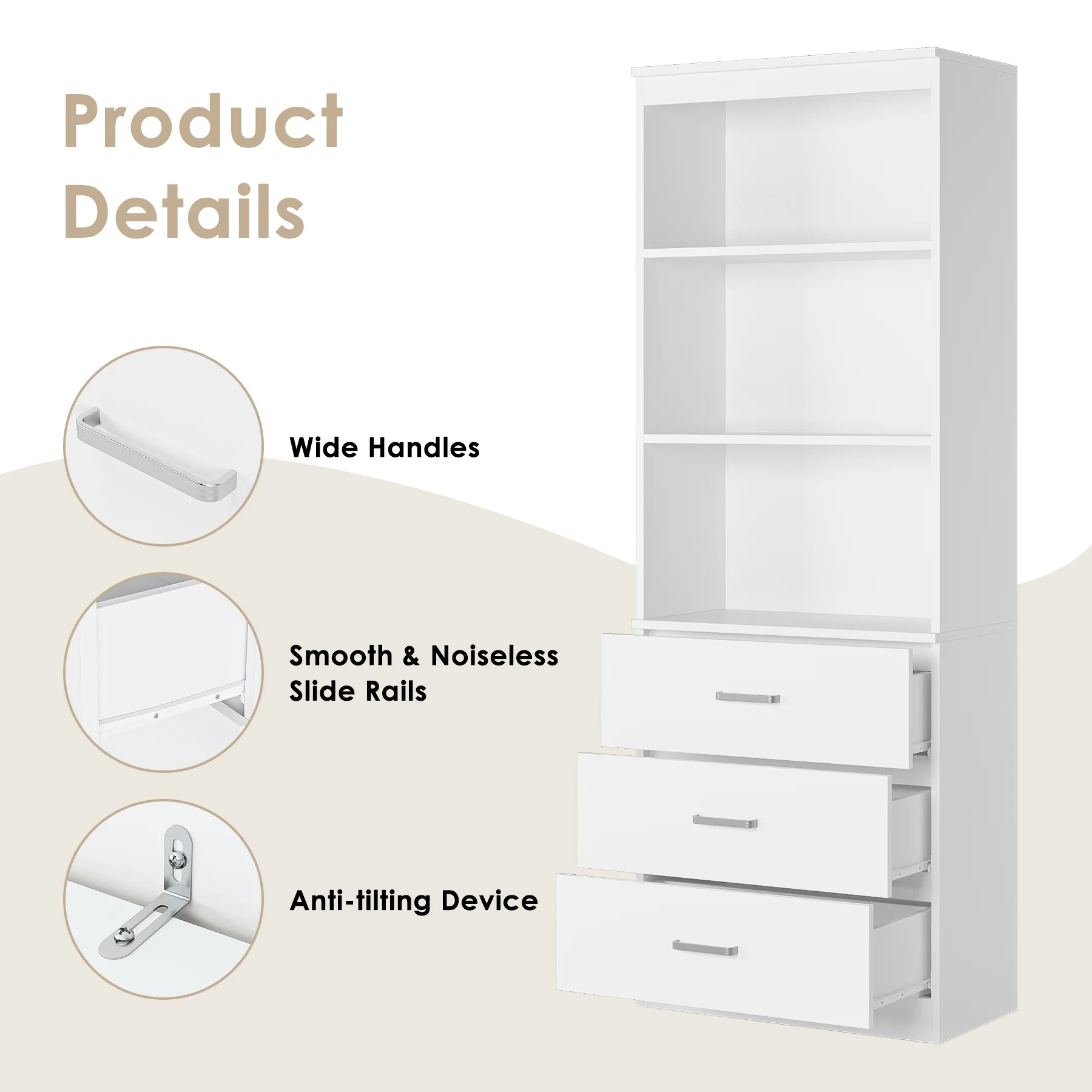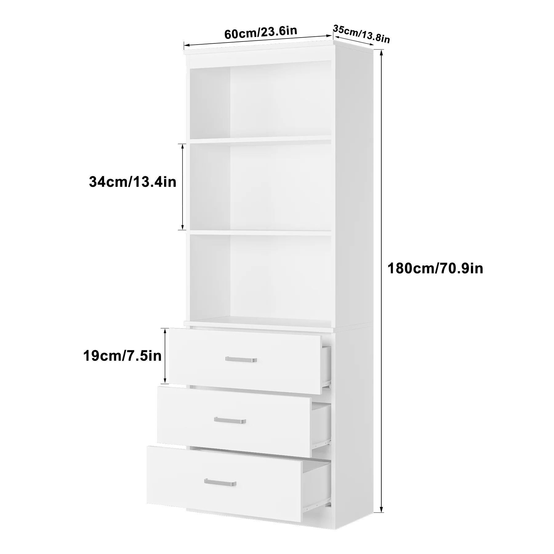 Homfa 71" Tall Bookcases with 3 Large Drawers, 3 Tier Wooden Storage Bookshelf for Living Room Home Office, White - Curated Treasures Market
