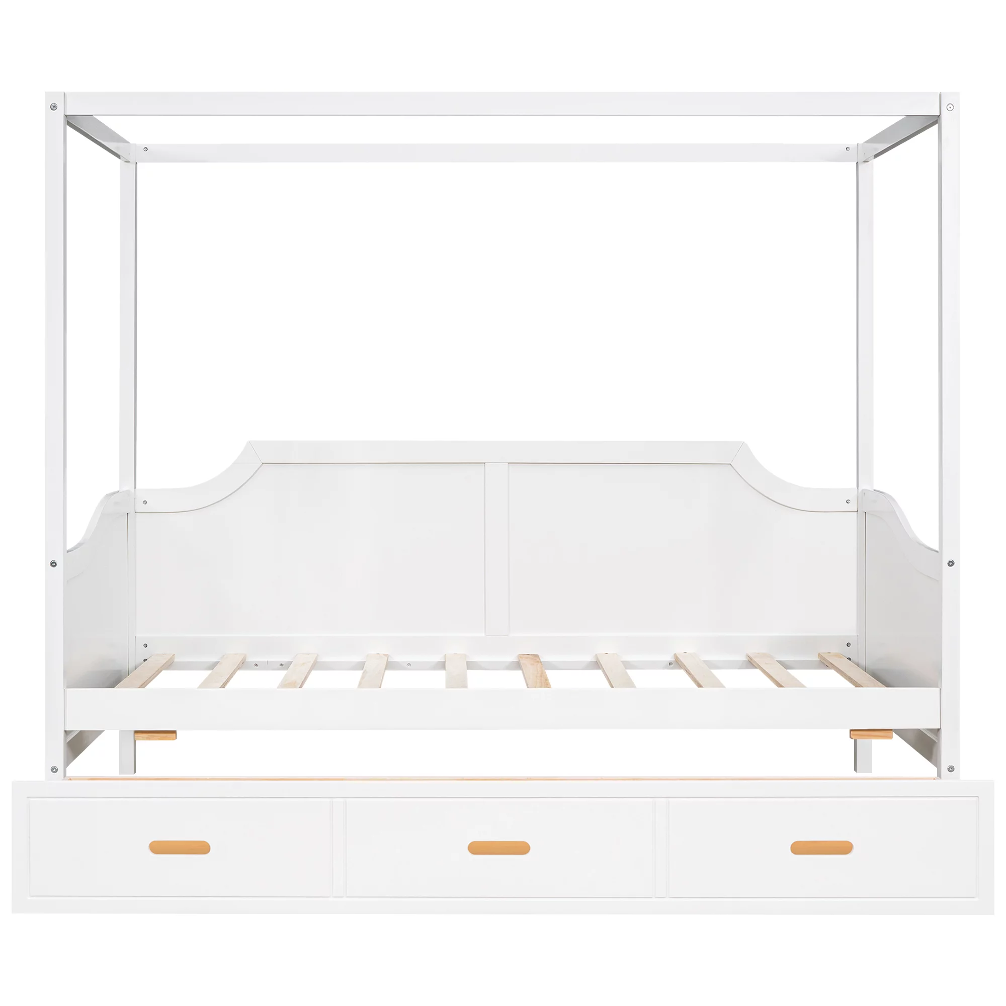 Wooden Tent Canopy Bed with Solid Construction for Toddlers, Twin Size Canopy Daybed with 3 in 1 Drawers for Kids, Wood Floor Bed Frame Bedroom Furniture for Girls Boys(White) - Curated Treasures Market