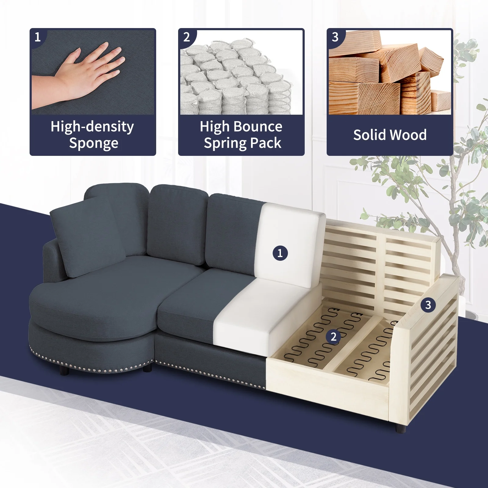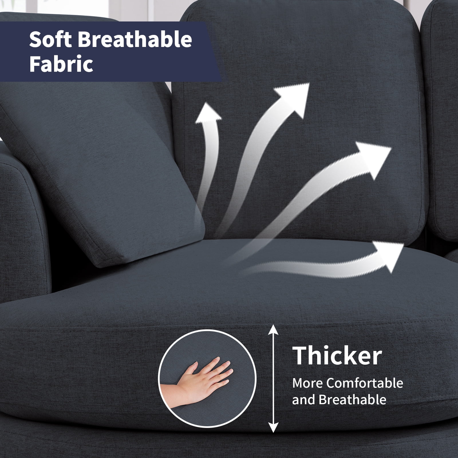 ZAFLY 3 Seater Sofa Couch, L Shaped Couch with Chaise, Curved Couches for Living Room - Dark Grey - Curated Treasures Market