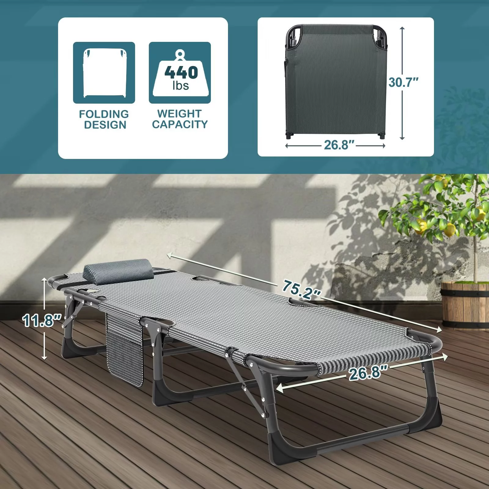 MOPHOTO Set of 2 Patio Lounge Chairs, Folding Chaise Lounge Chair 5-Position, Folding Cot, Heavy Duty Patio Chaise Lounges for Outside, Poolside, Beach, Lawn, Camping - Curated Treasures Market