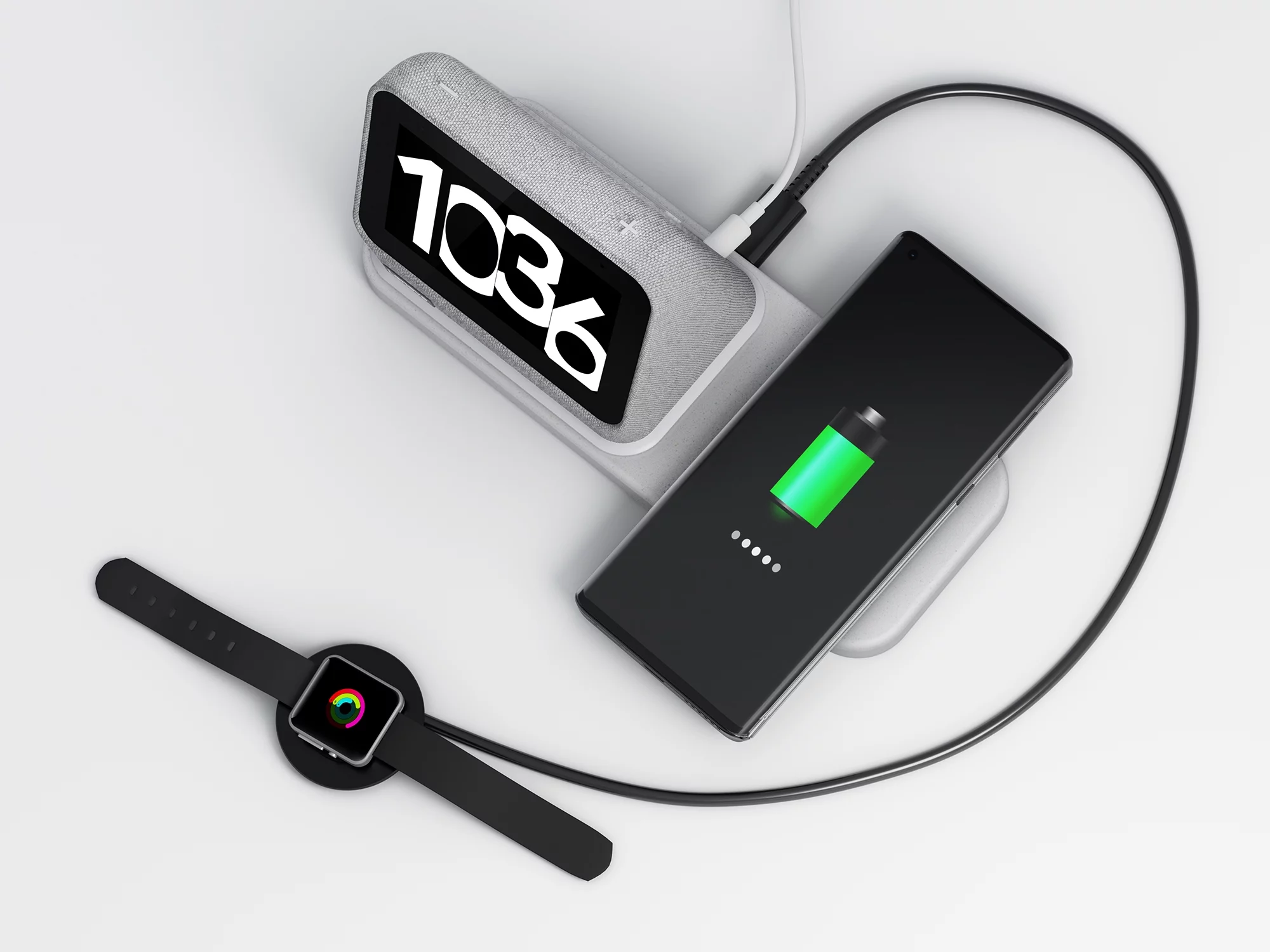 Lenovo Smart Clock 2 with Wireless Charging Dock - Heather Grey - Curated Treasures Market