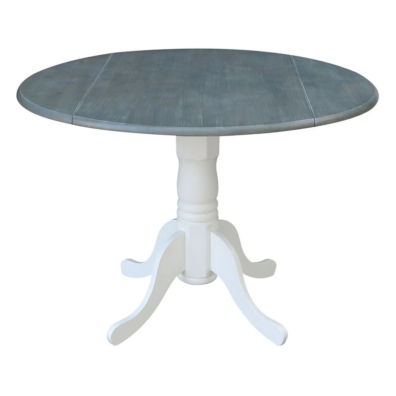 Bowery Hill 42" Round Wood Dual Drop Leaf Table in White/Heather Gray - Curated Treasures Market