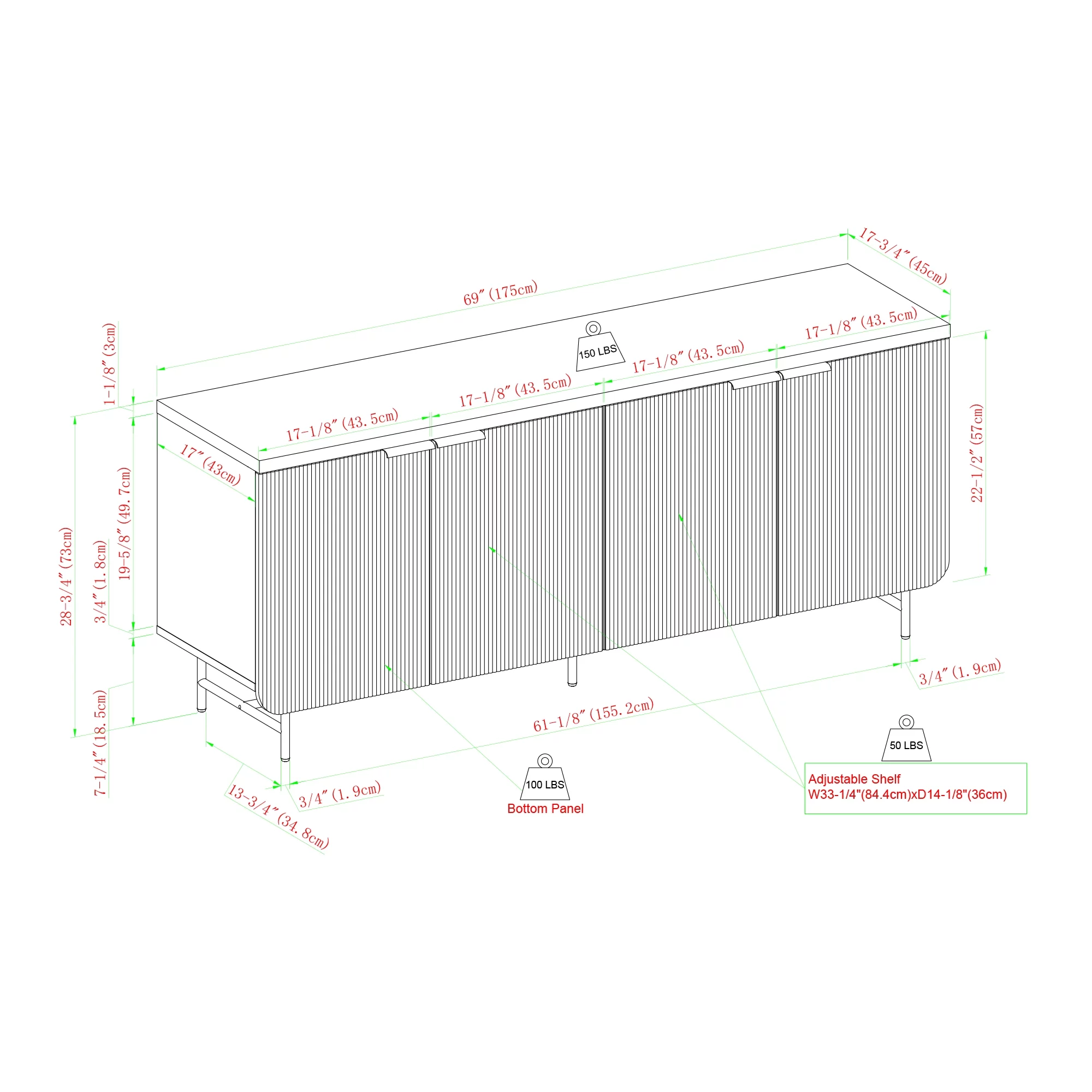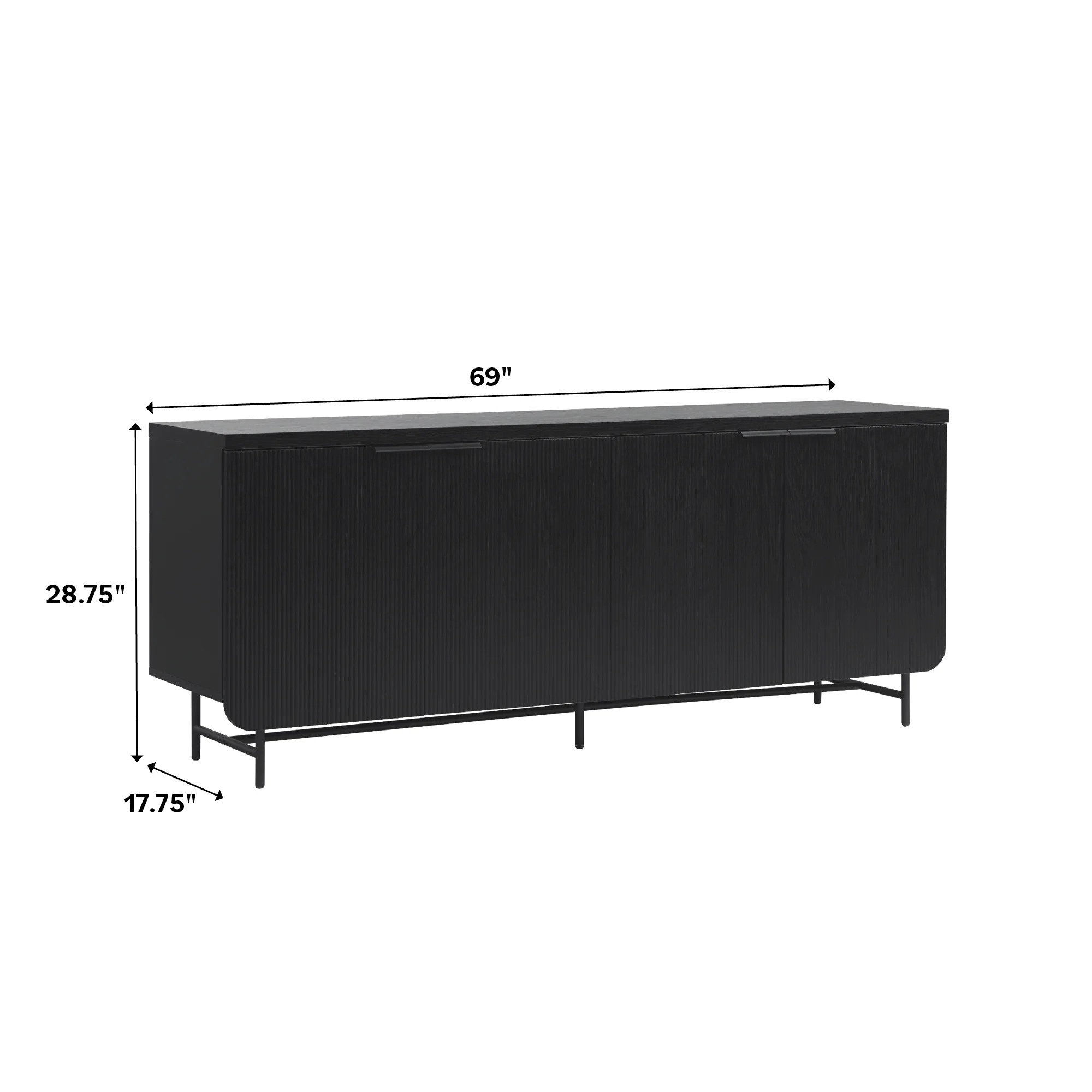 Walker Edison 69" Scandinavian 4-Door Reeded-Front TV Stand for TVs up to 75", Black - Curated Treasures Market