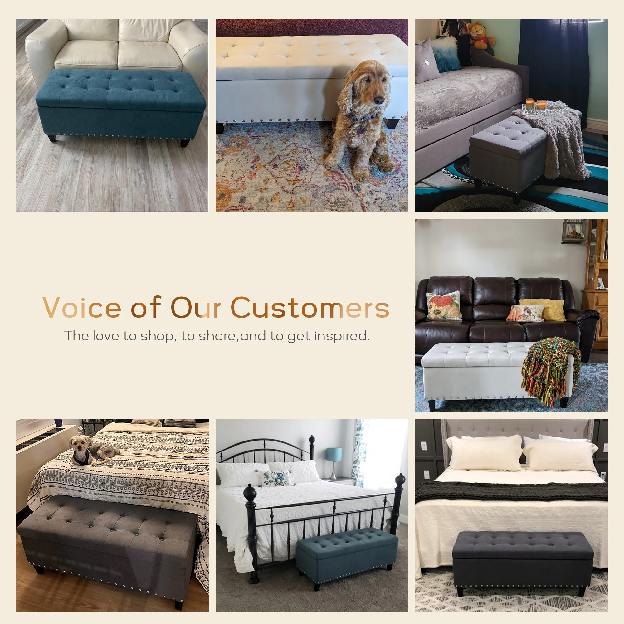 HUIMO Large Storage Ottoman, 41-inch Button-Tufted Upholstered Ottoman with Safety Hinge, End of Bed Storage Bench for Entryway, Living Room (Grey) - Curated Treasures Market