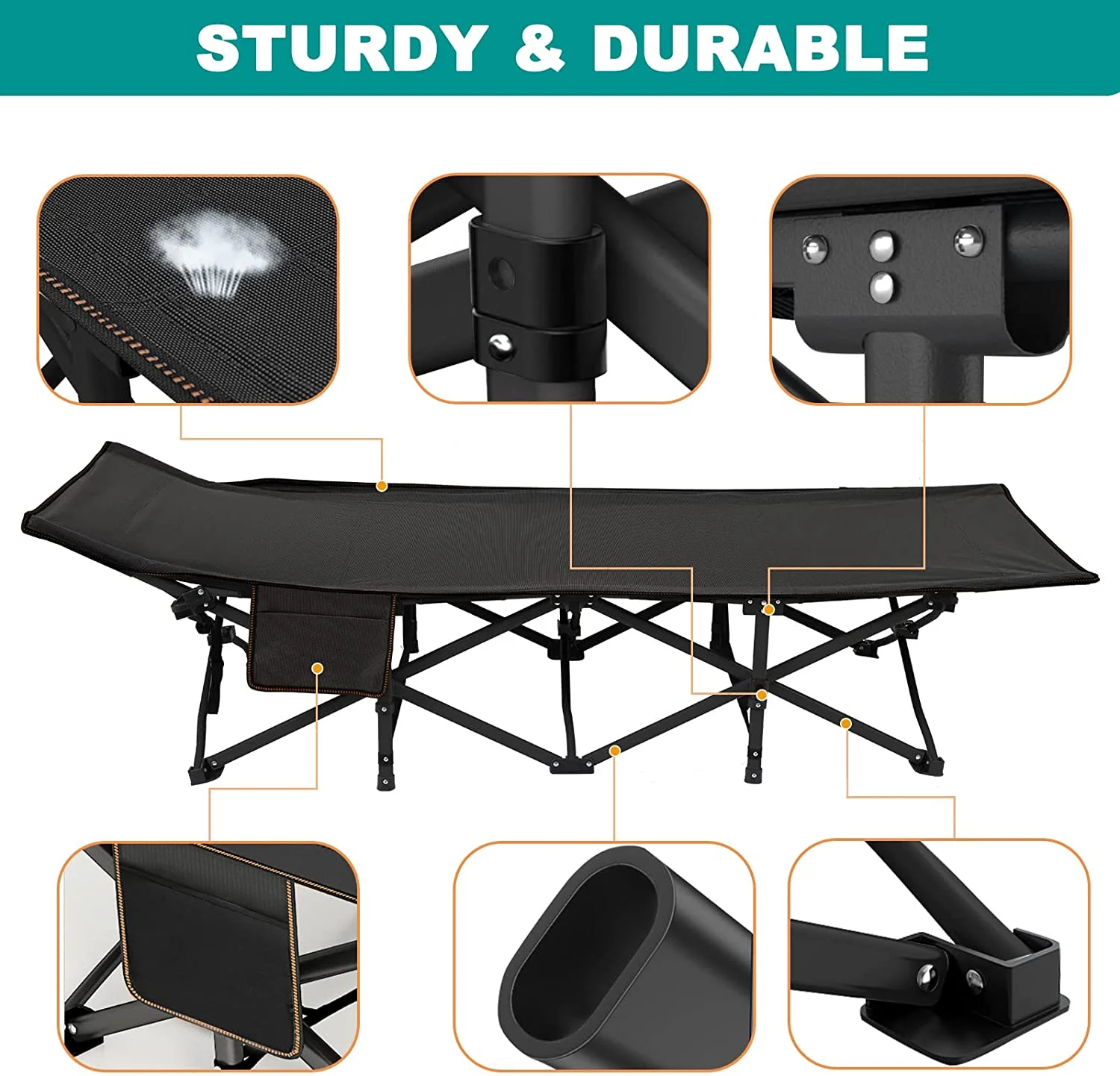 ABORON Oversized XL Folding Sleeping Cots for Adults, 900lb Loading Double-Layer 1200D, Heavy Duty Guest Bed W/Mattress & Carrying Bag - Curated Treasures Market
