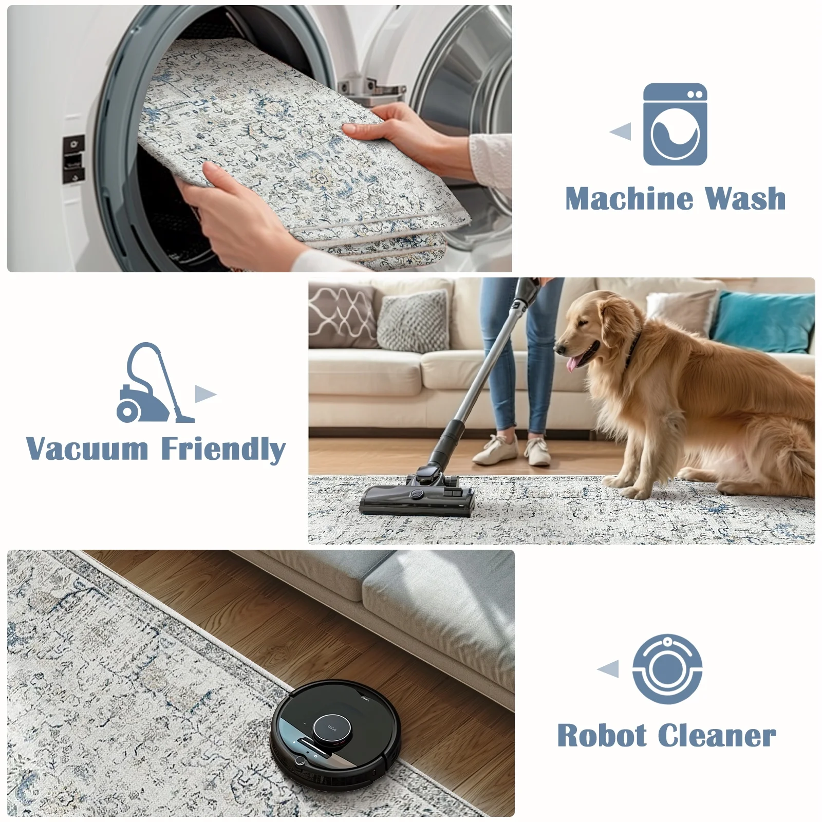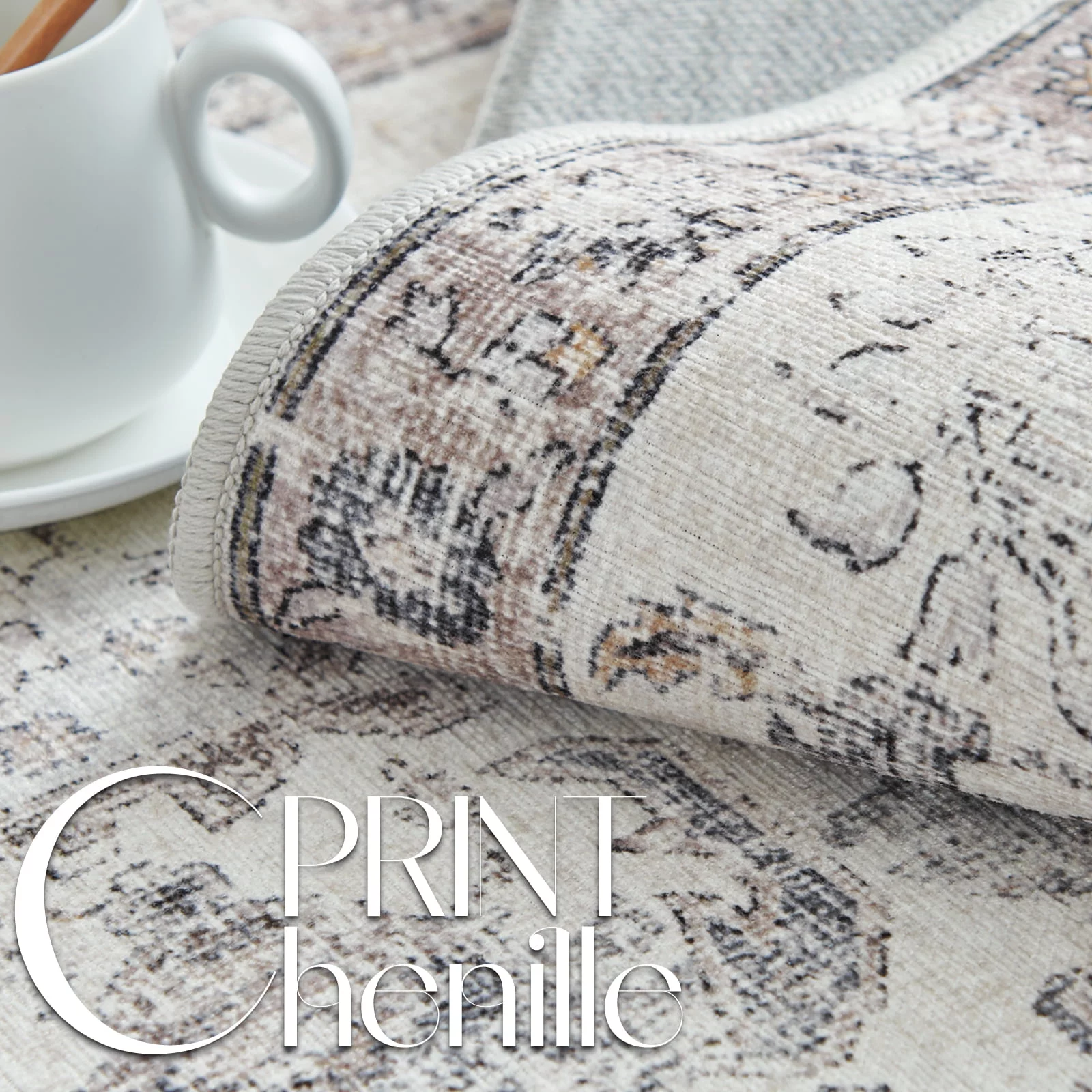 RUGKING Area Rug 8x10 Gray Multi Vintage Rug Flodable Thin Rug Retro Distressed Carpet Floral Print Boho Rug for Kitchen Bedroom Living Room Dining Room - Curated Treasures Market