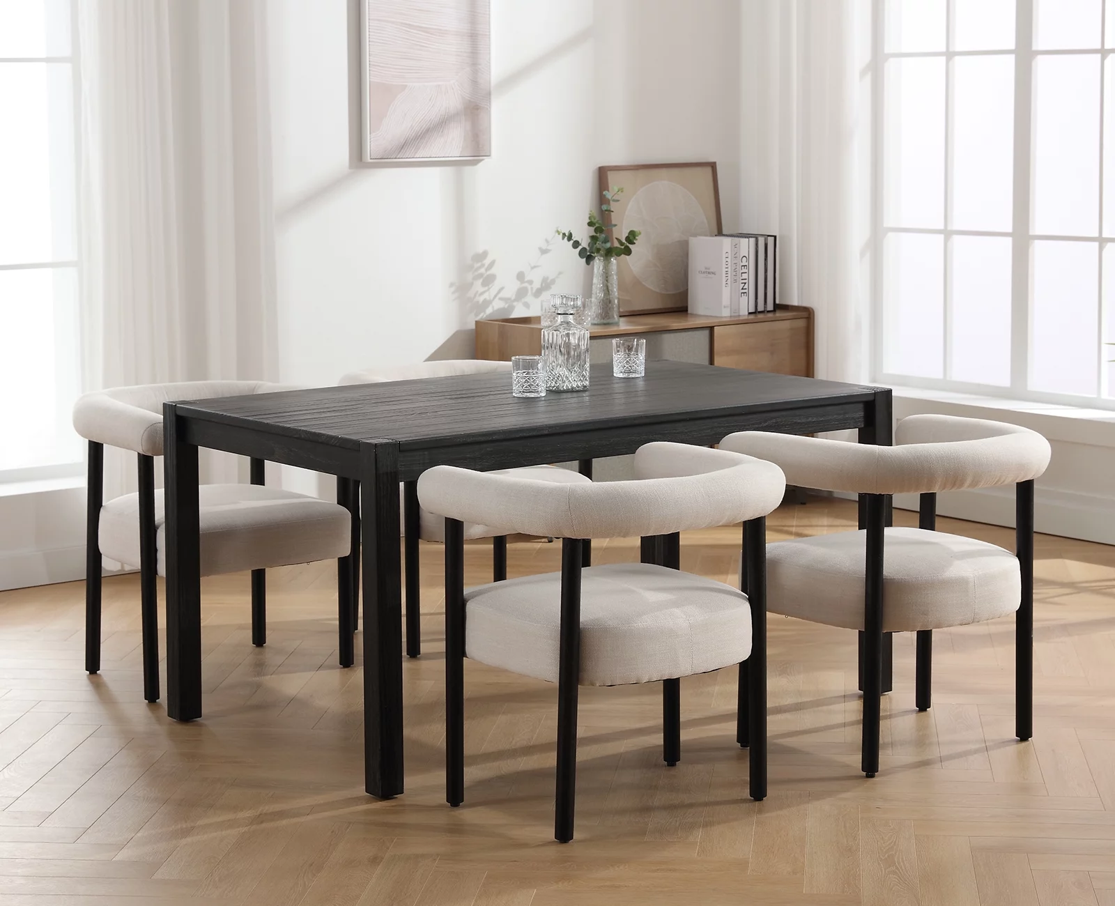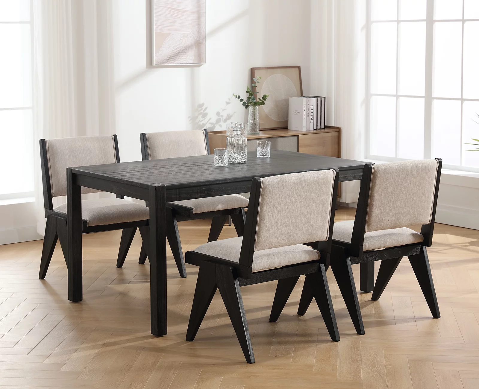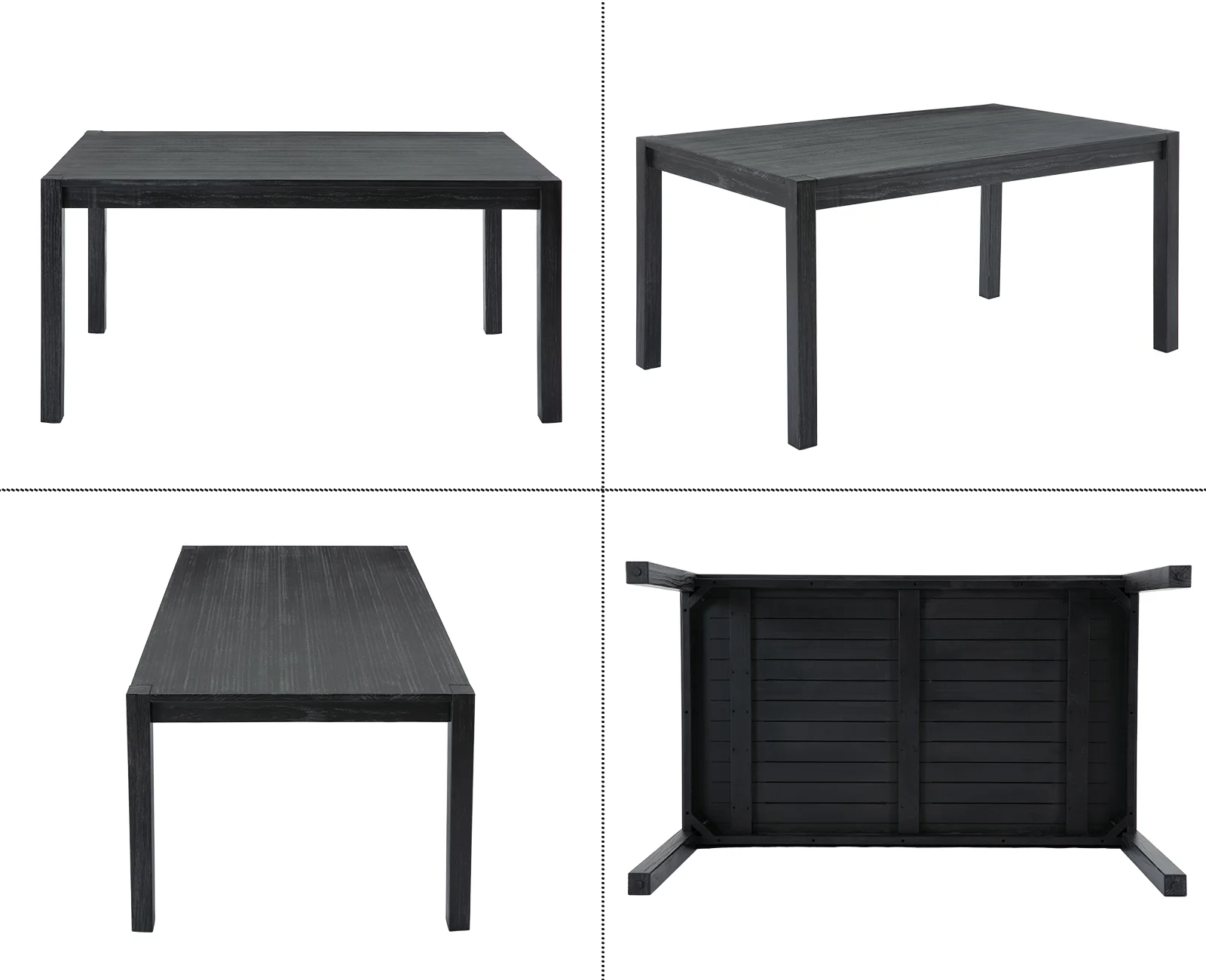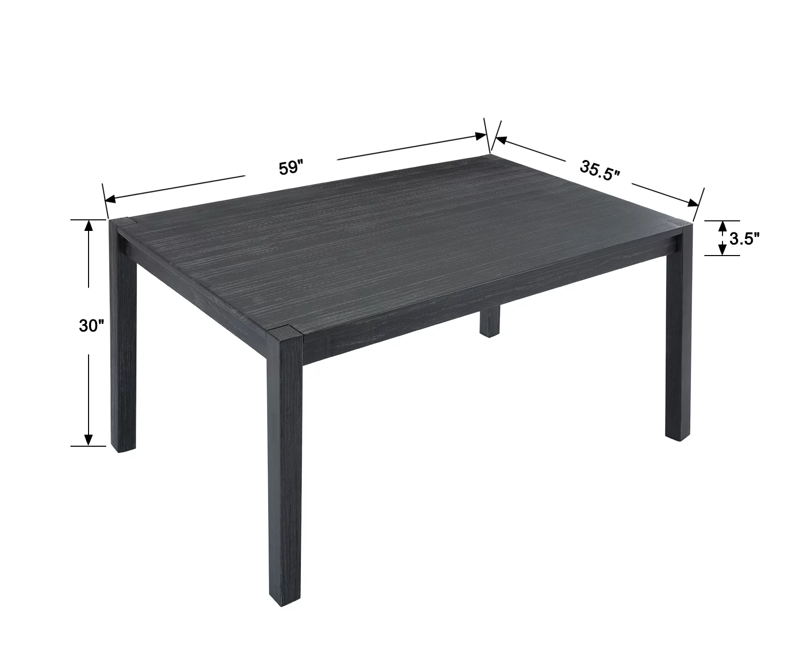 Guyou Solid Wood Dining Table, 59" Farmhouse Large Size Rectangular Dining Table for 4-6 People, Modern Kitchen Table for Living Room Dining Room Kitchen, Black Brush - Curated Treasures Market