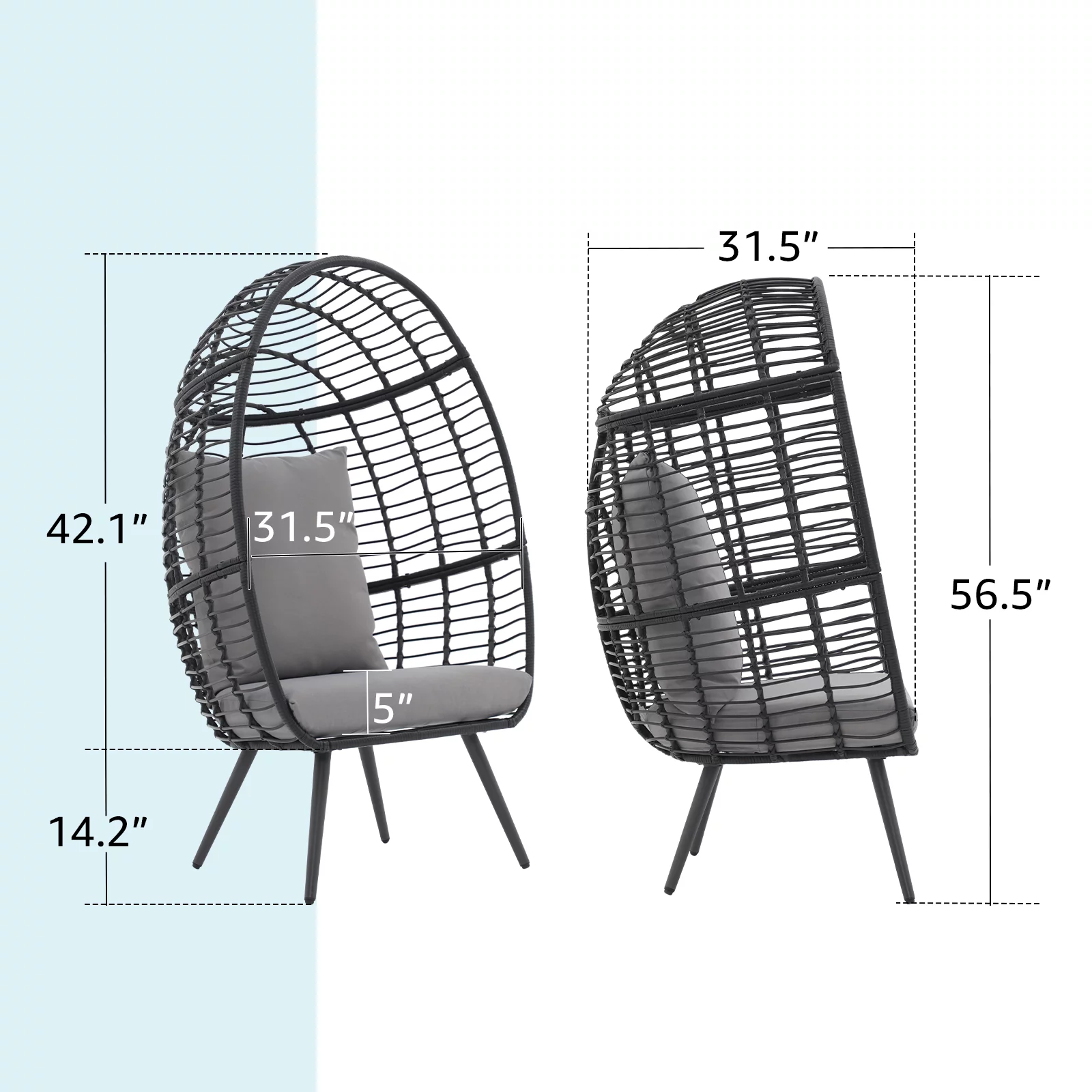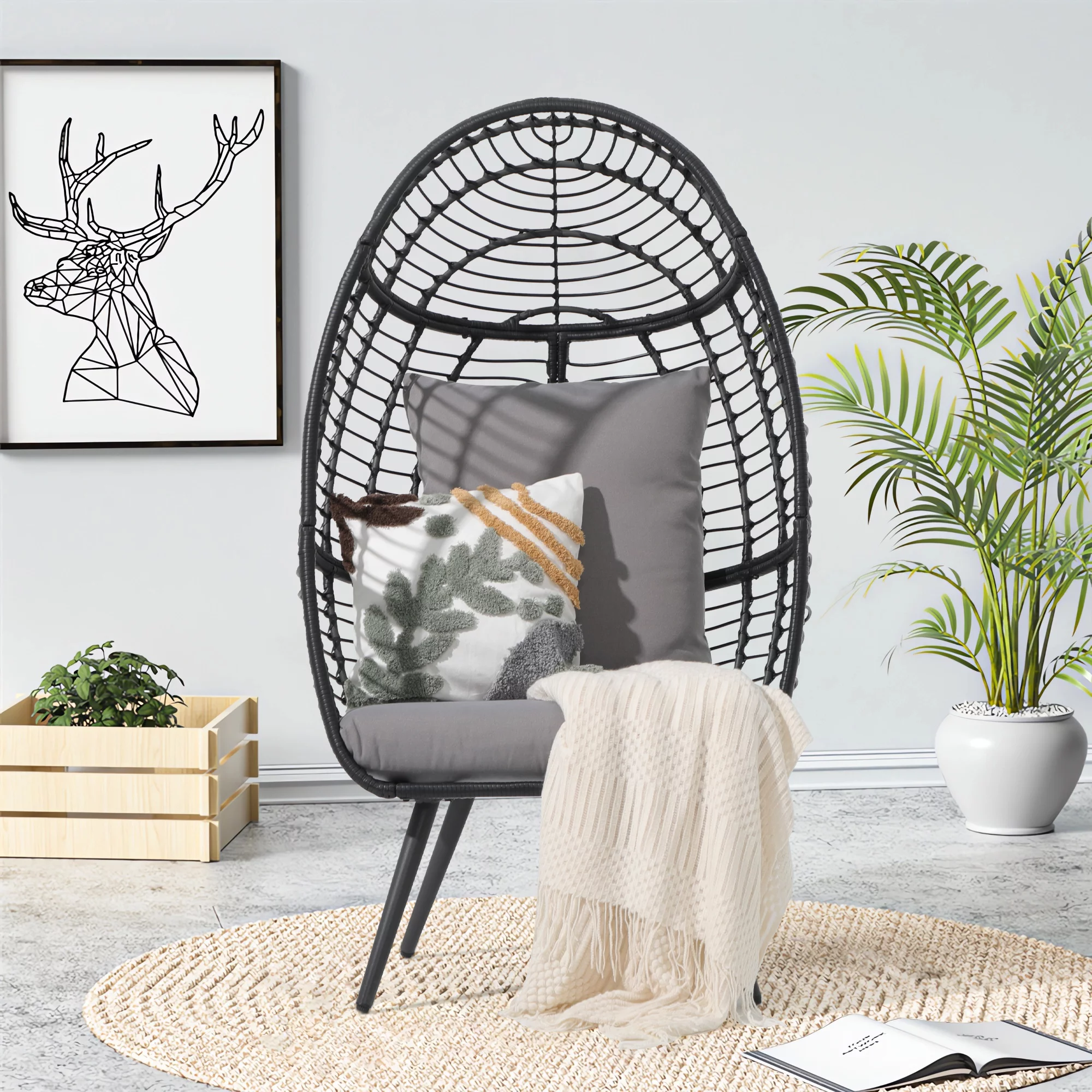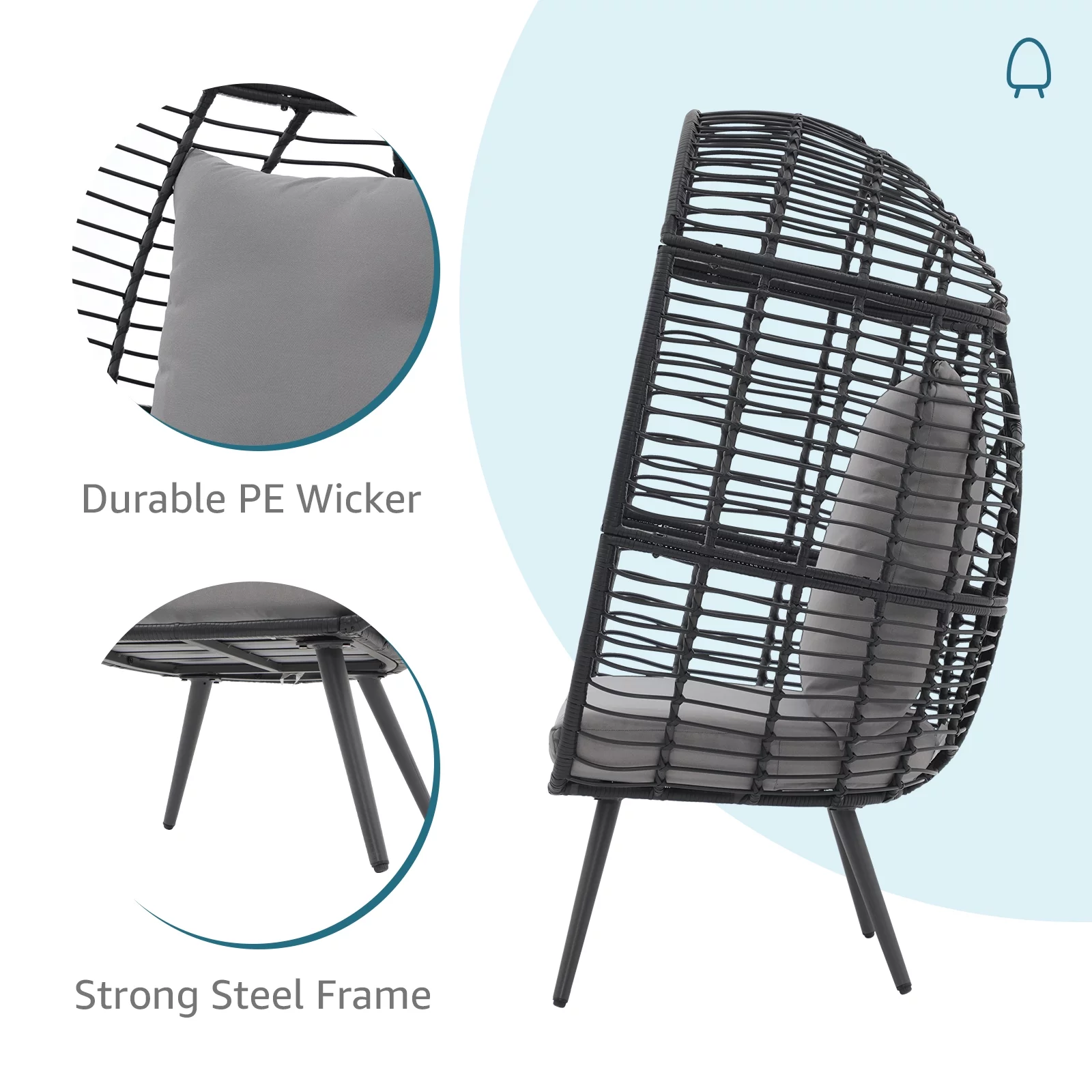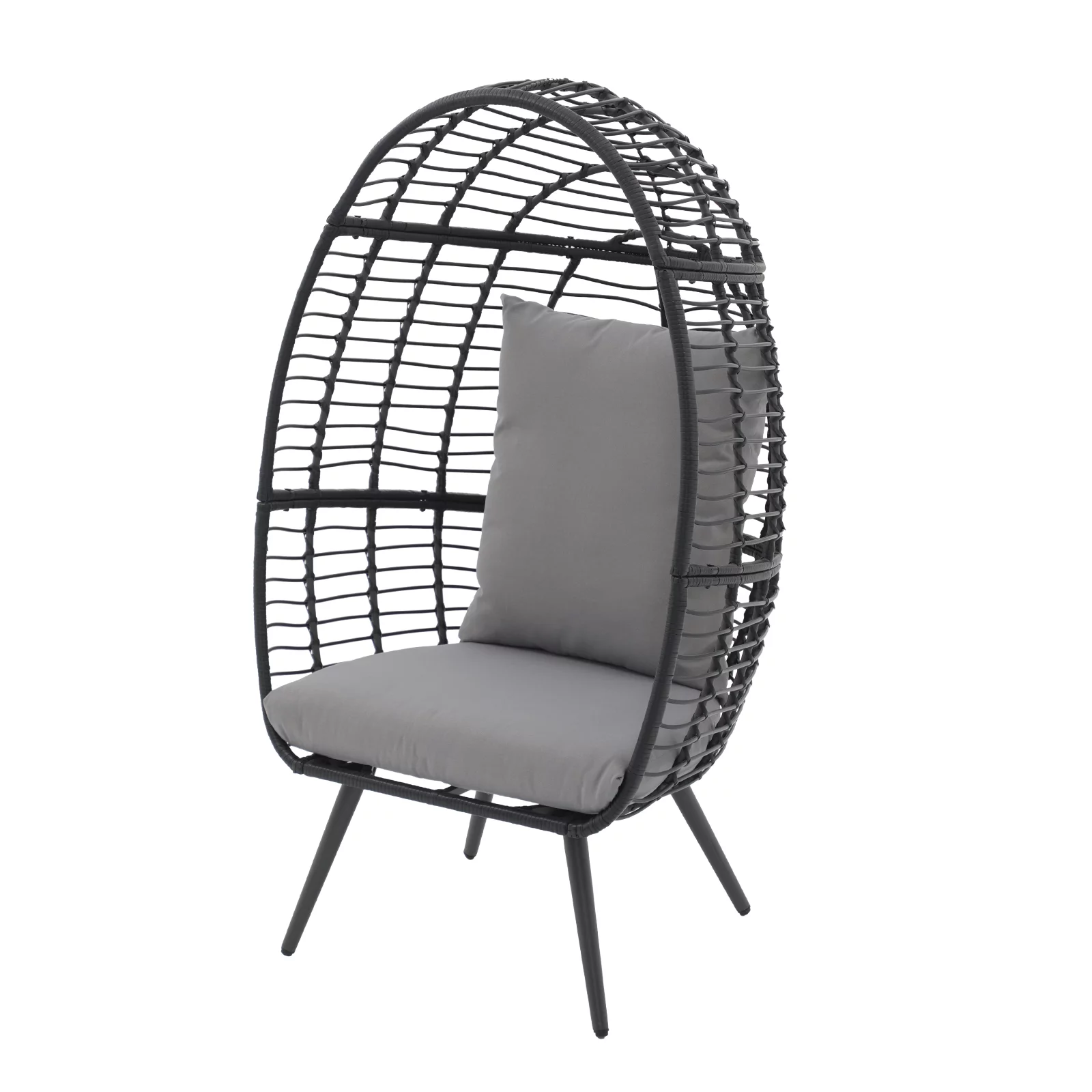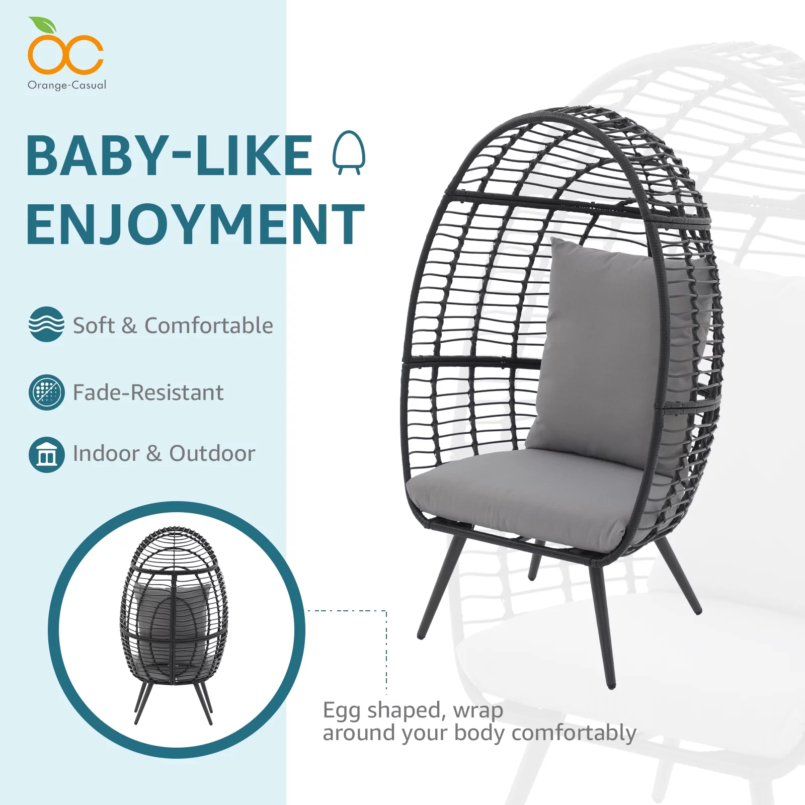 OC Orange-Casual Wicker Egg Chair, Rattan Lounge Chair, for Outside w/Legs Cushion, Outdoor Indoor, for Front Porch, Patio, Living Room, Bedroom, Backyard, Grey Cushion - Curated Treasures Market