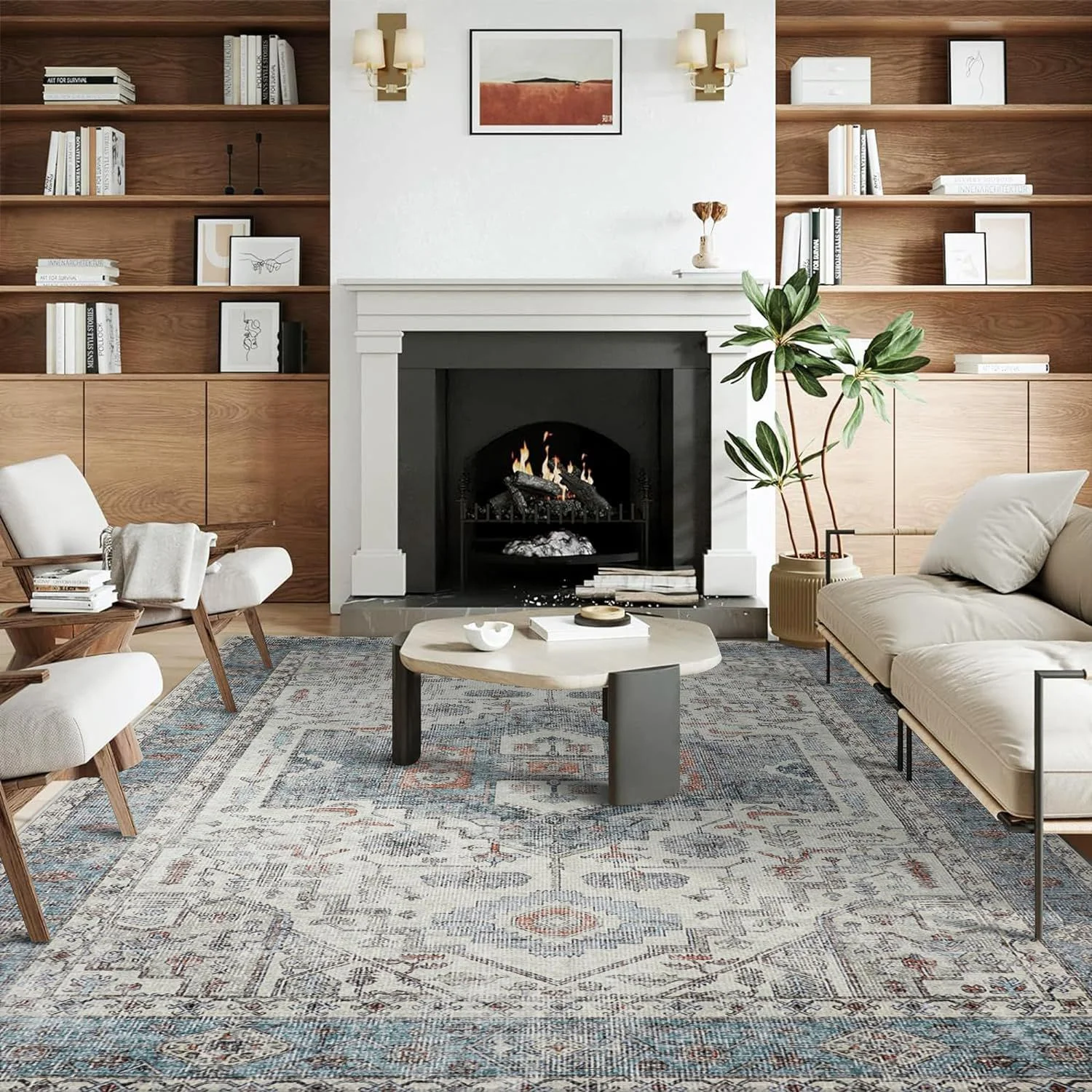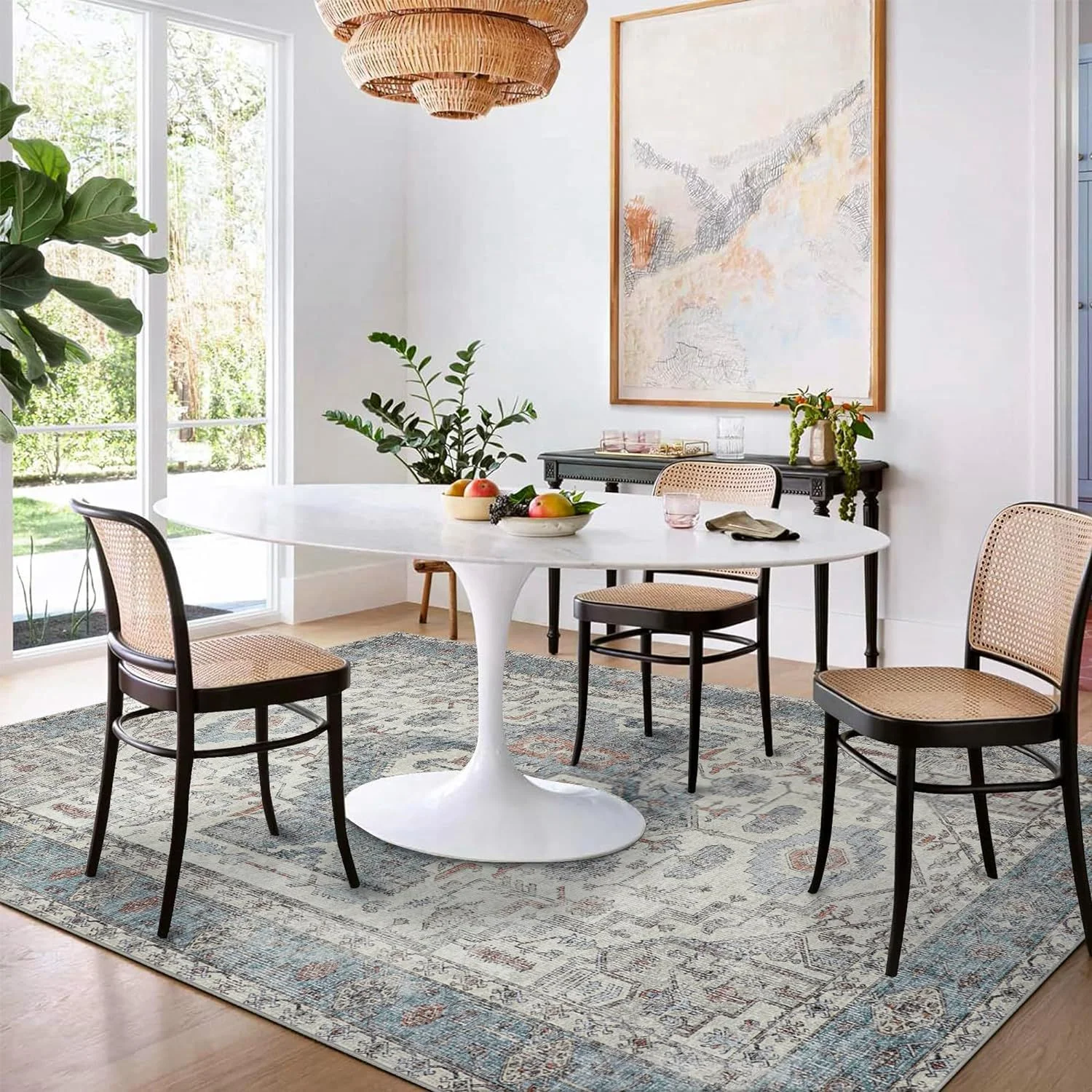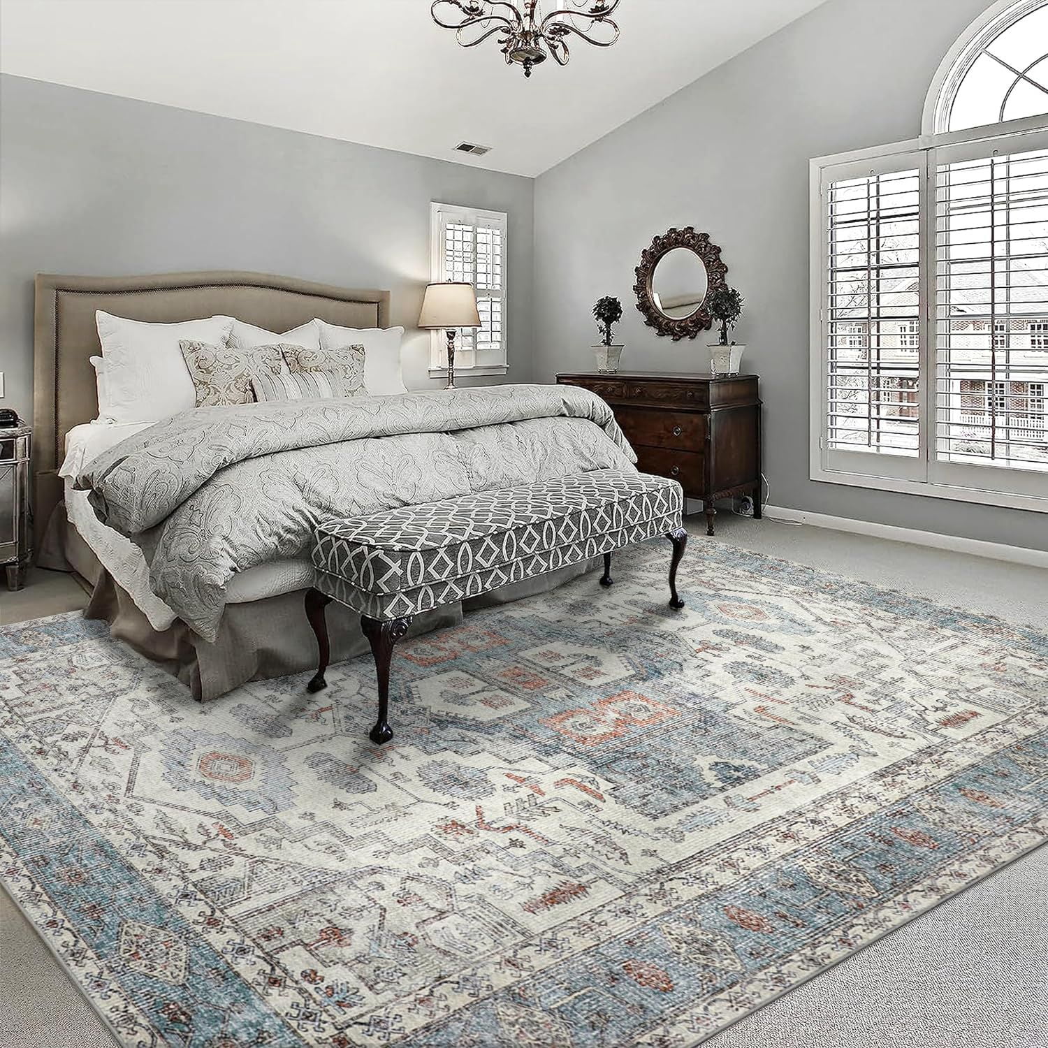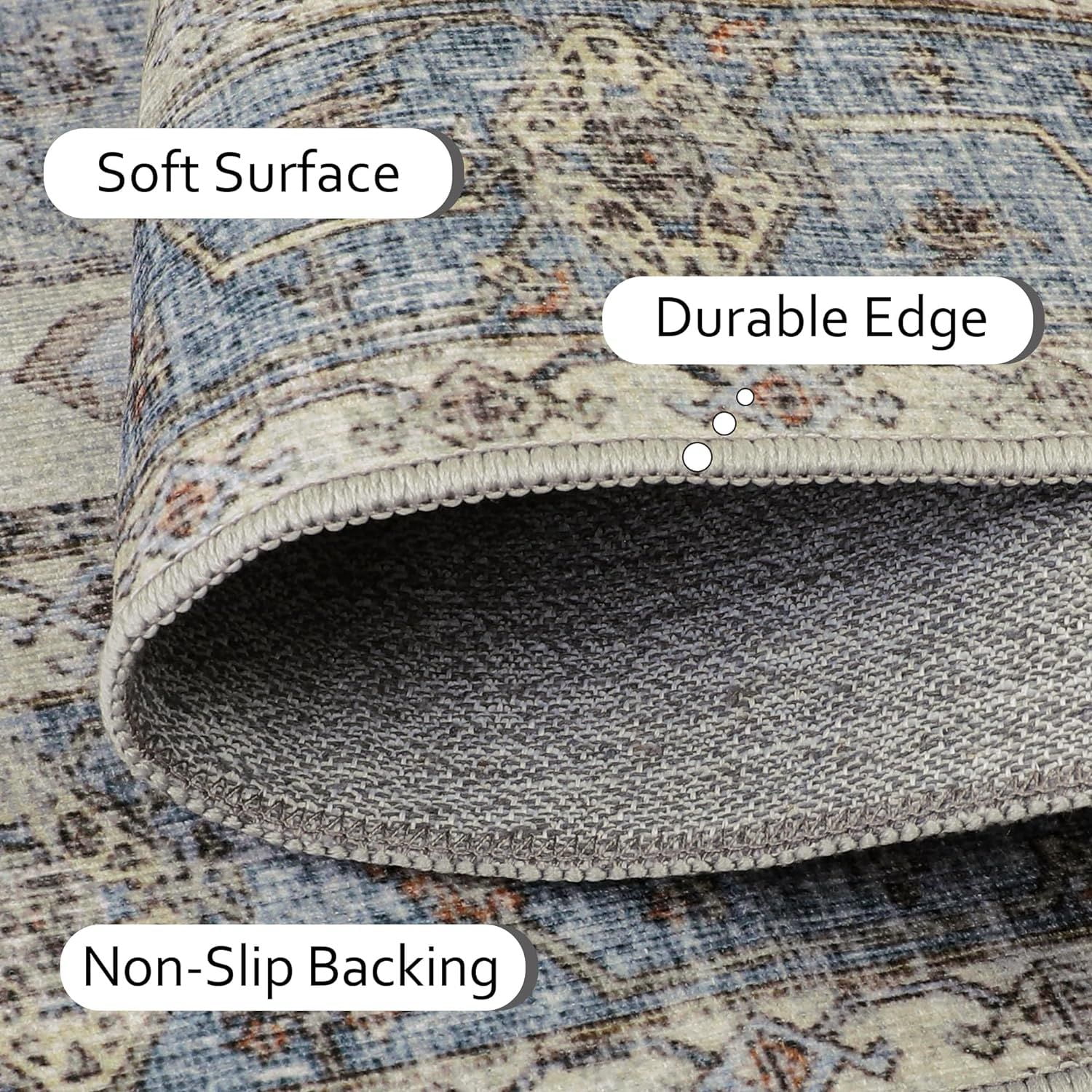 KUETH Tribal Machine Washable Area Rug 8x10, Vintage Distressed Print Thin Chenille Bedroom Living Room Accent Rug, Low Pile Lightweight Non Slip with Gripper - Curated Treasures Market